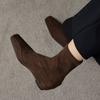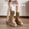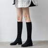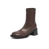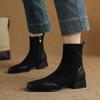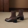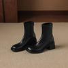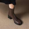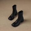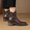 Botas de caballero de cuero para mujer de otoño e invierno, cómodas, con cremallera trasera, tacón alto, punta redonda, tacón cuadrado, estilo coreano, nuevas, talla grande, botas de media caña