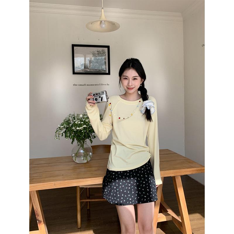 2025 Nueva Camiseta Base Holgada Interior Suave Cera para Mujer Primavera Camiseta de Manga Larga Top Sencillo para Combinar con Todo