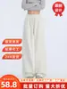 Pantalones de Pierna Ancha Nuevos de Primavera 2024 Pantalones Casuales de Mujer Cintura Alta Drapeado Pantalones de Pierna Grande Drapeado Suelto Más Fácil de Combinar Pantalones