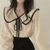 Camisa Retro de Estilo Sal Coreano con Pliegues y Manga Larga para Mujer Temperamento Francés Solapa Versátil Nicho Camisa Top Mujer Blanco
