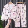 Pijama para niños primavera y otoño para niñas solapa manga larga para niños traje para estar en casa holgado moda ropa de aire acondicionado para niños medianos y grandes