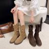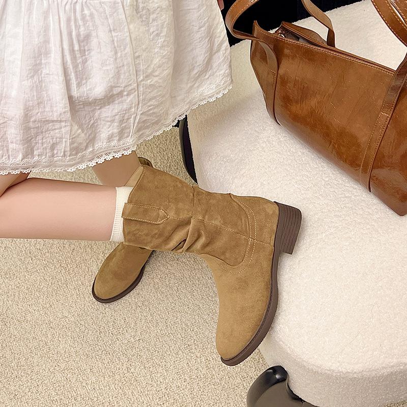 Botas de Gamuza Western Tacón Apilado Mujer 2025 Nueva Moda Otoño Estilo Myllard Tacón Grueso Petite Media Pantorrilla Botas Martin