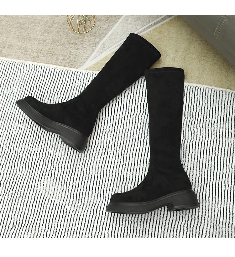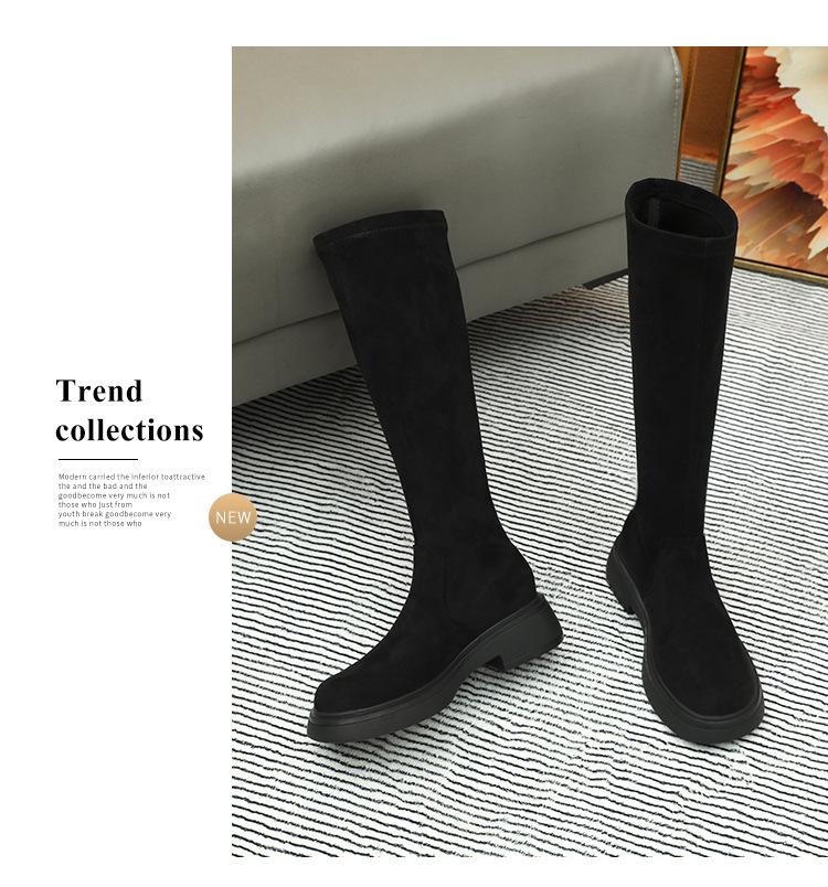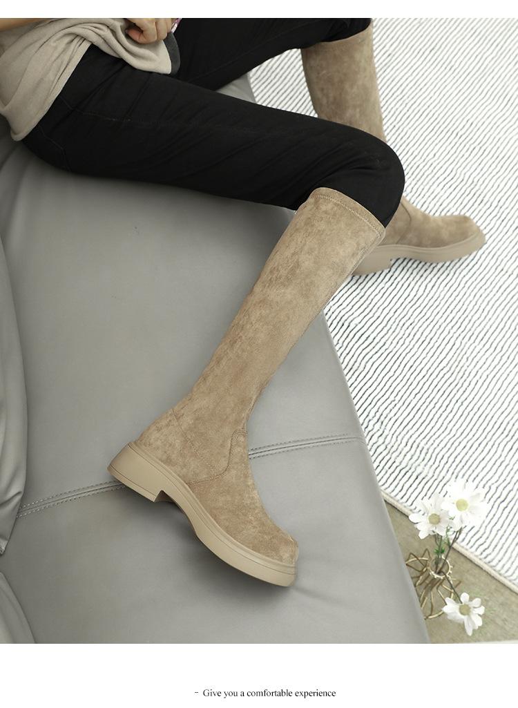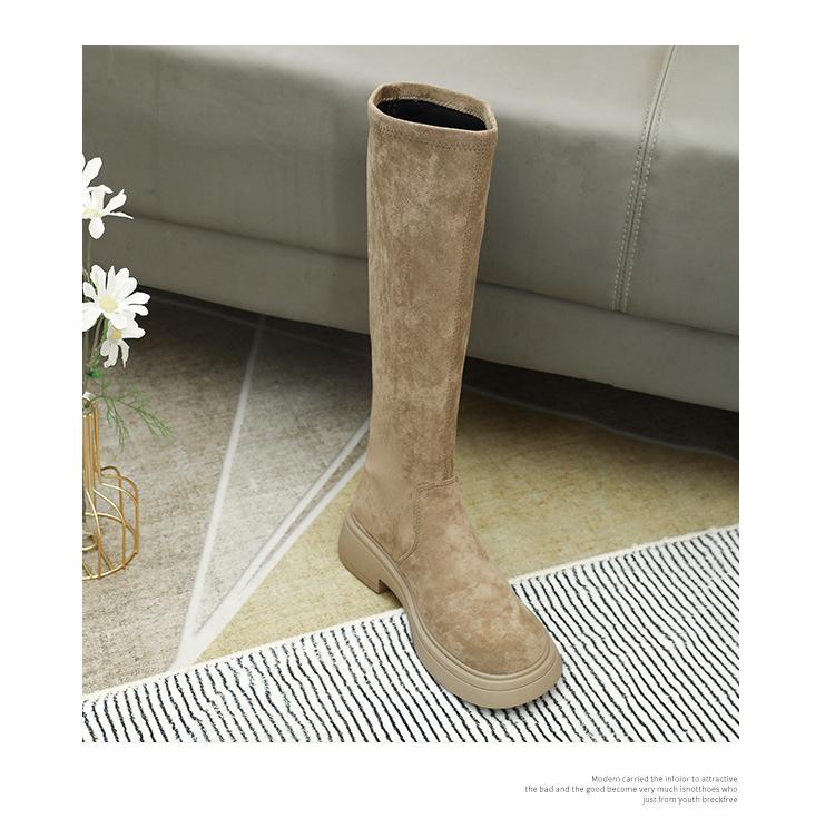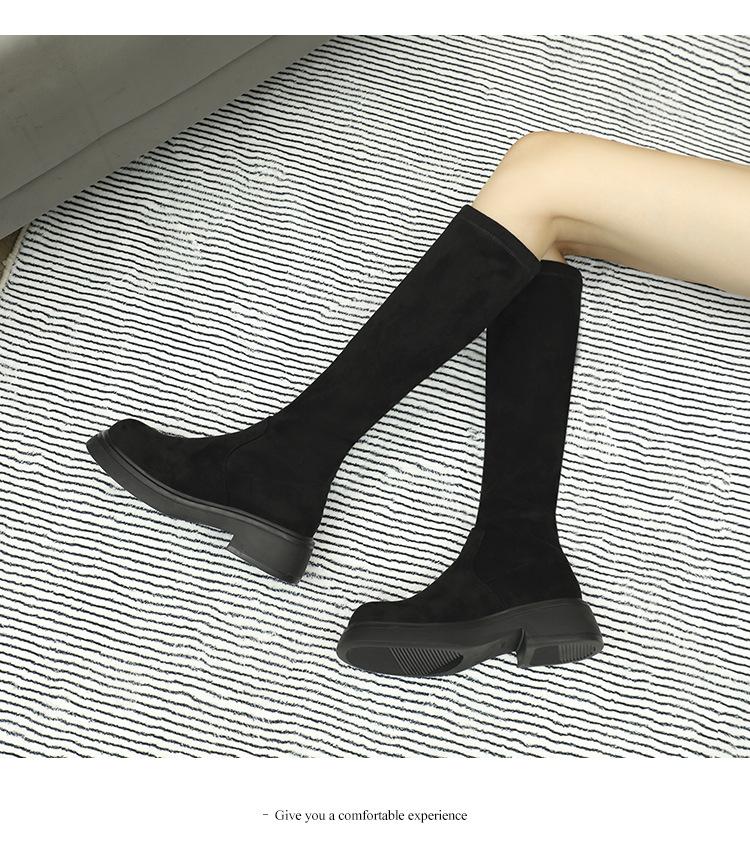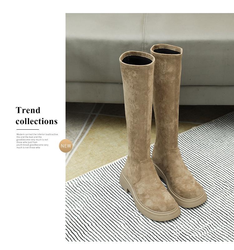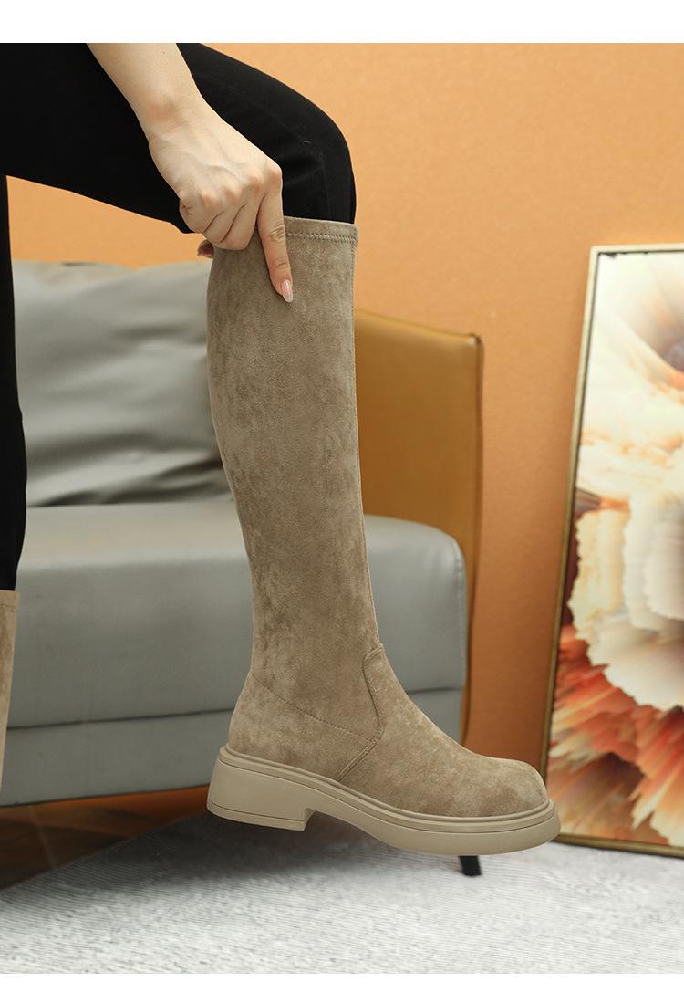 Botas de gamuza por encima de la rodilla para mujer otoño e invierno nuevo estilo más terciopelo más botas de tubo alto gruesas tacón chunky suela gruesa adelgazantes elásticas botas de caballero