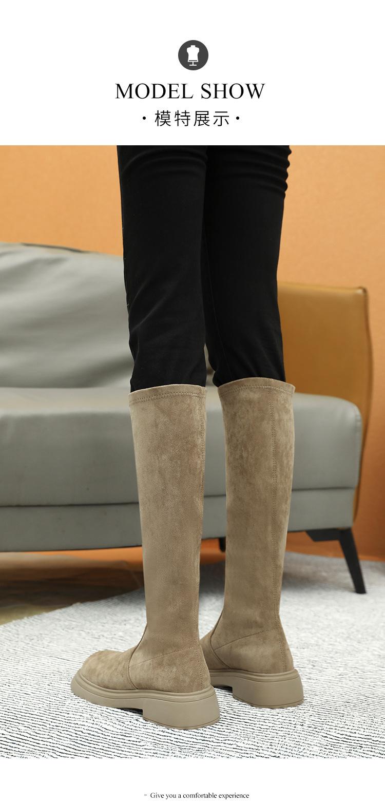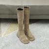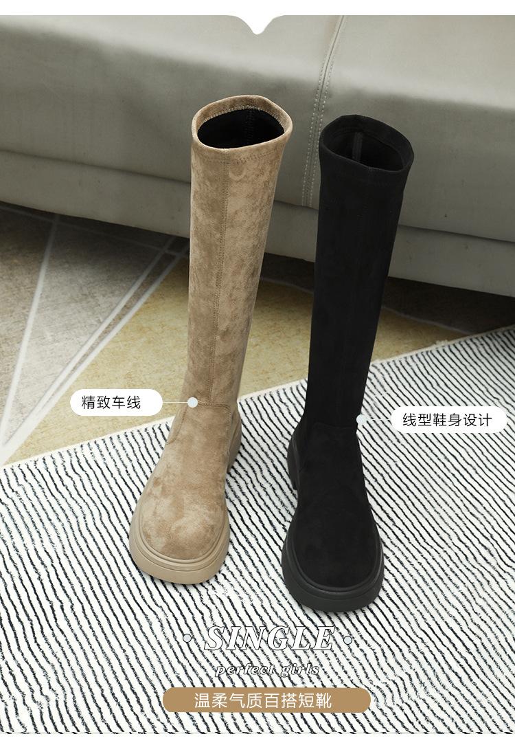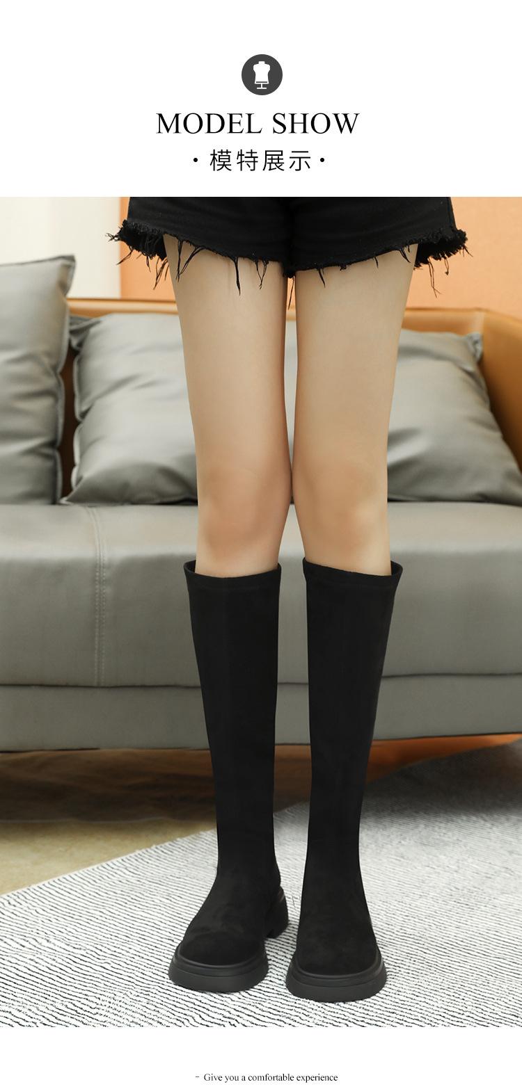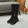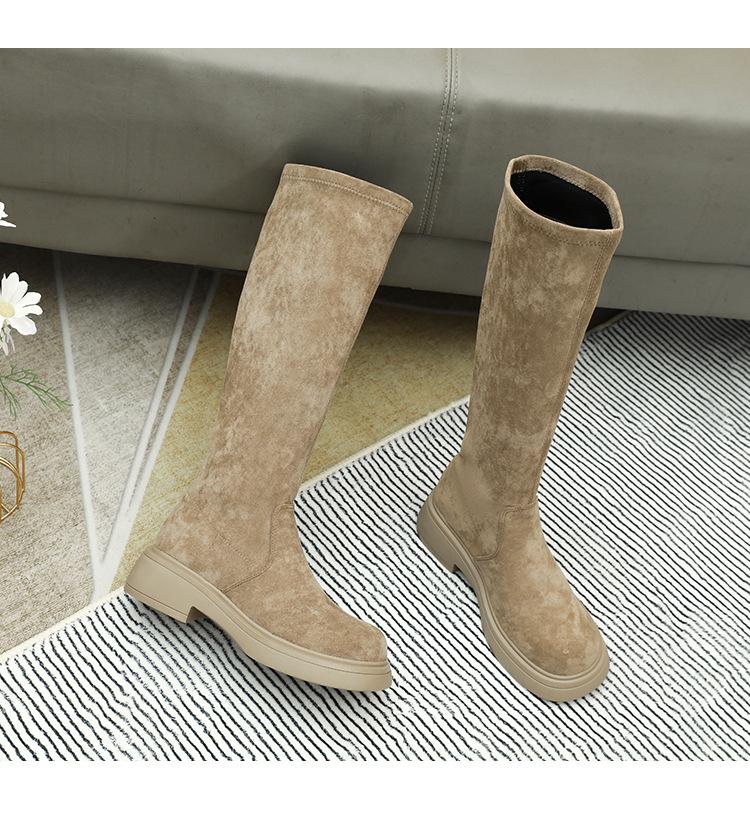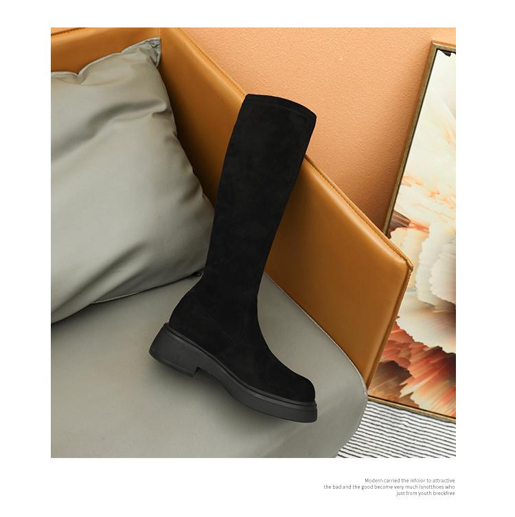Botas de gamuza por encima de la rodilla para mujer otoño e invierno nuevo estilo más terciopelo más botas de tubo alto gruesas tacón chunky suela gruesa adelgazantes elásticas botas de caballero