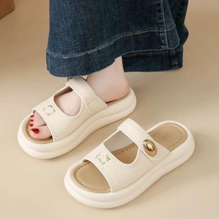 Pantuflas de Suela Gruesa Antideslizante para Mujer 2025 Verano Nuevo Falda Casual Versátil Playa Ligeras Suela Suave Sandalias de Una Tira
