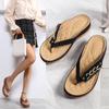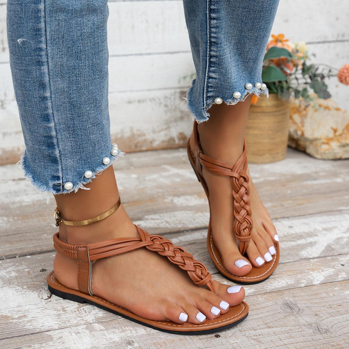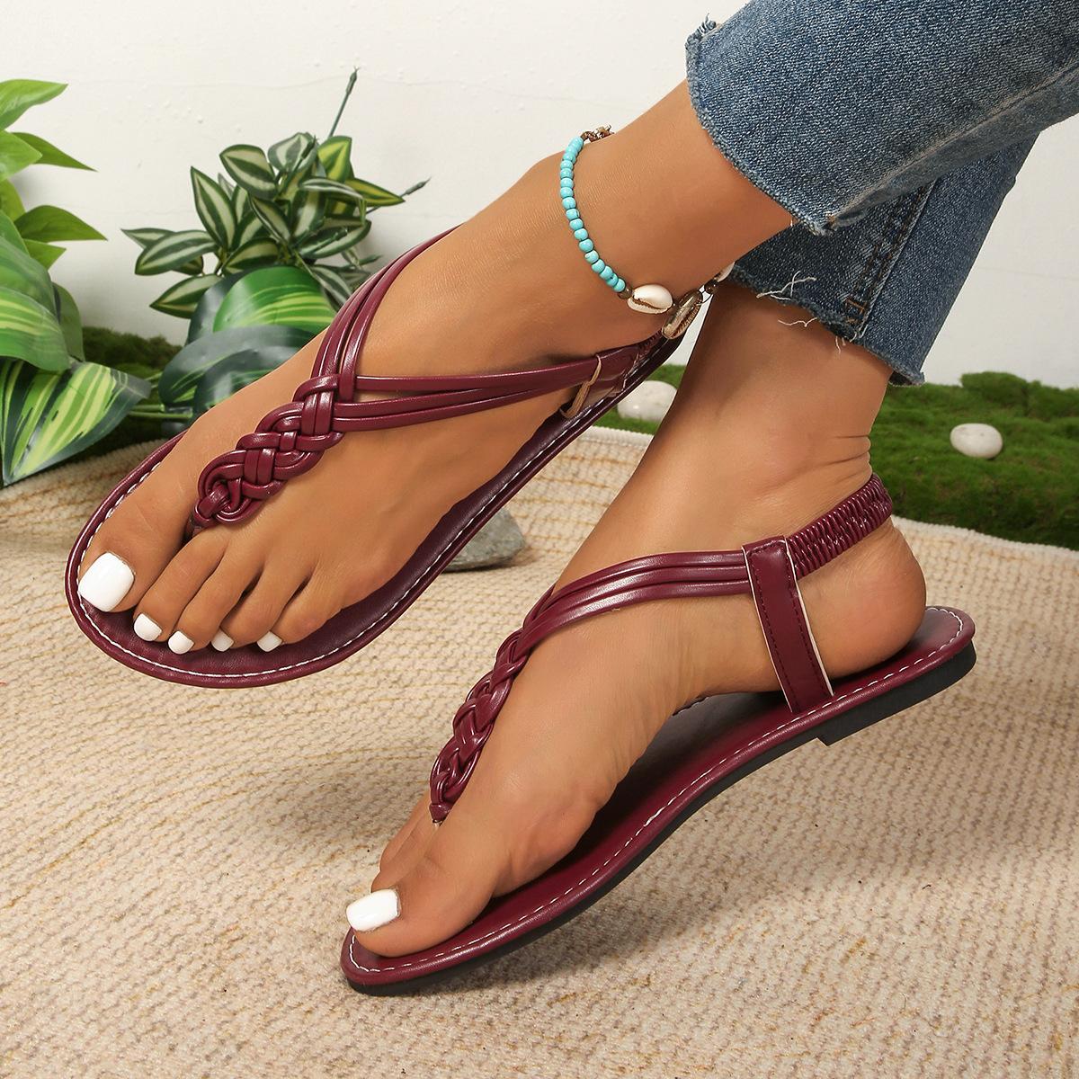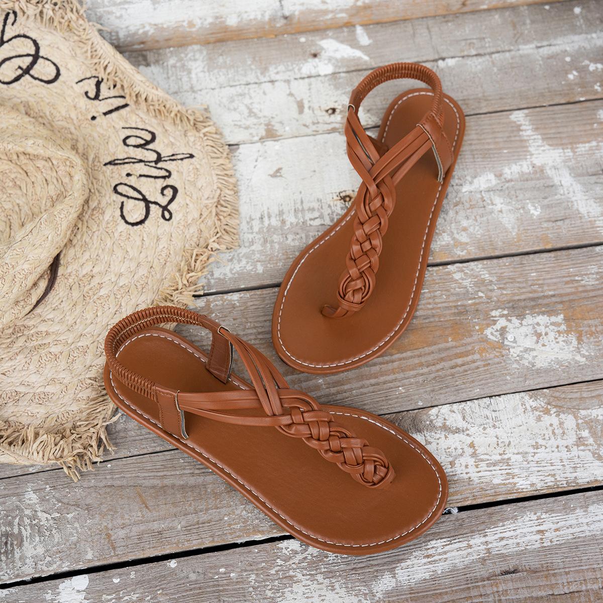 Nuevas zapatillas casuales de talla grande con suela plana para comercio exterior, con tira tejida, zapatos de mujer, moda estilo romano, sandalias de playa con clip para el dedo, wish