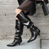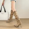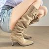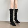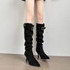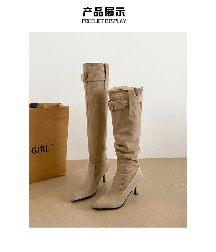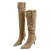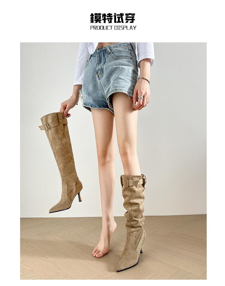 Botas Altas por Encima de la Rodilla de Punta Nueva Estilo Coreano Otoño/Invierno 2025 Tacón Alto de Aguja Botas Largas Hebilla Gamuza Botas de Caña Alta Mujer