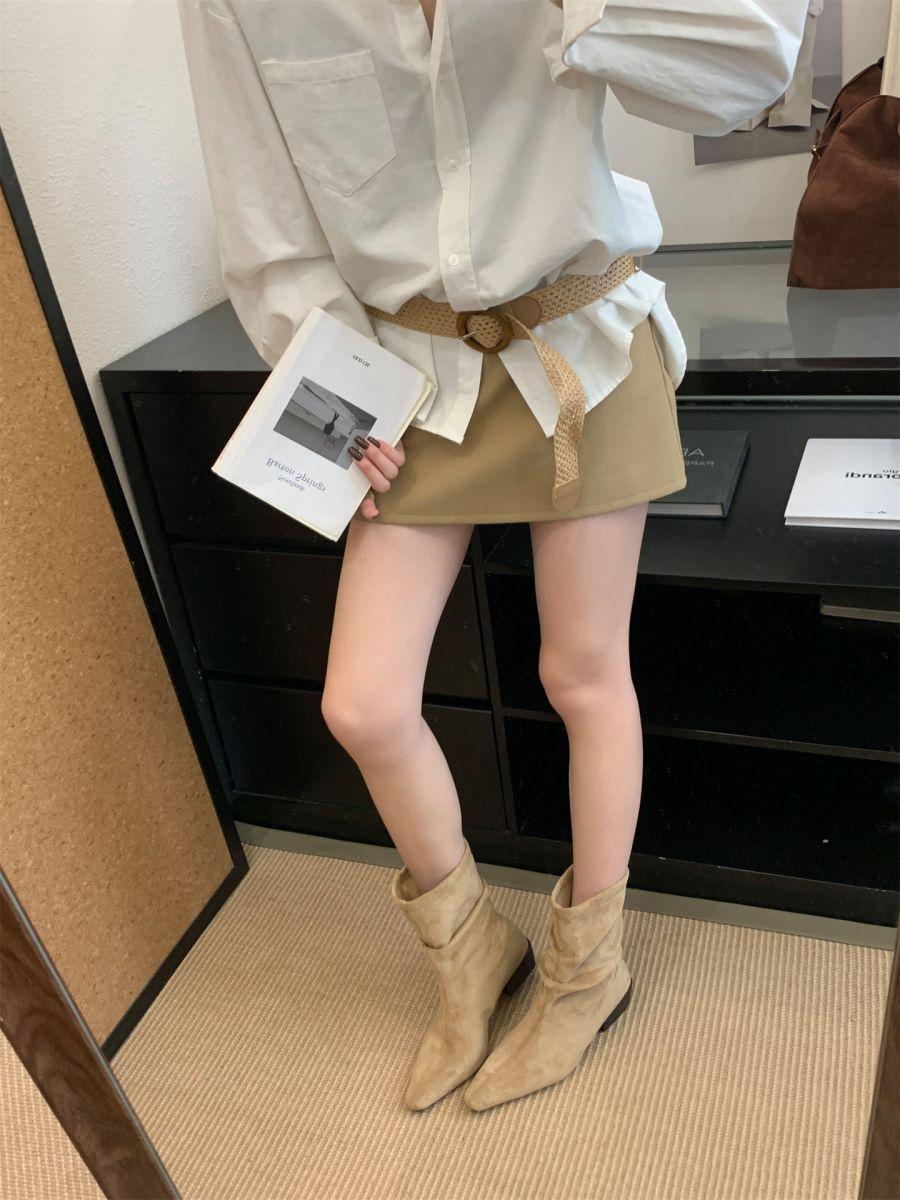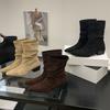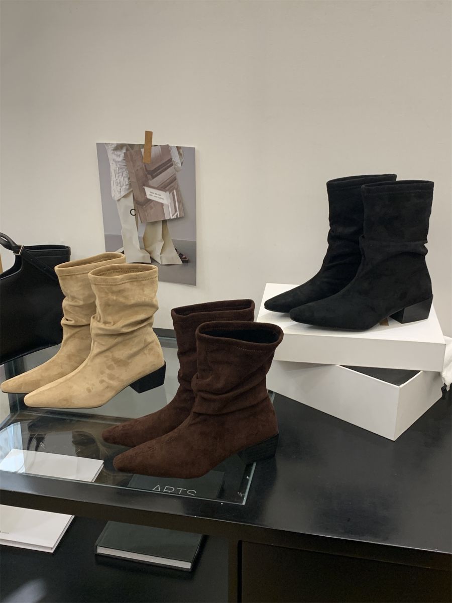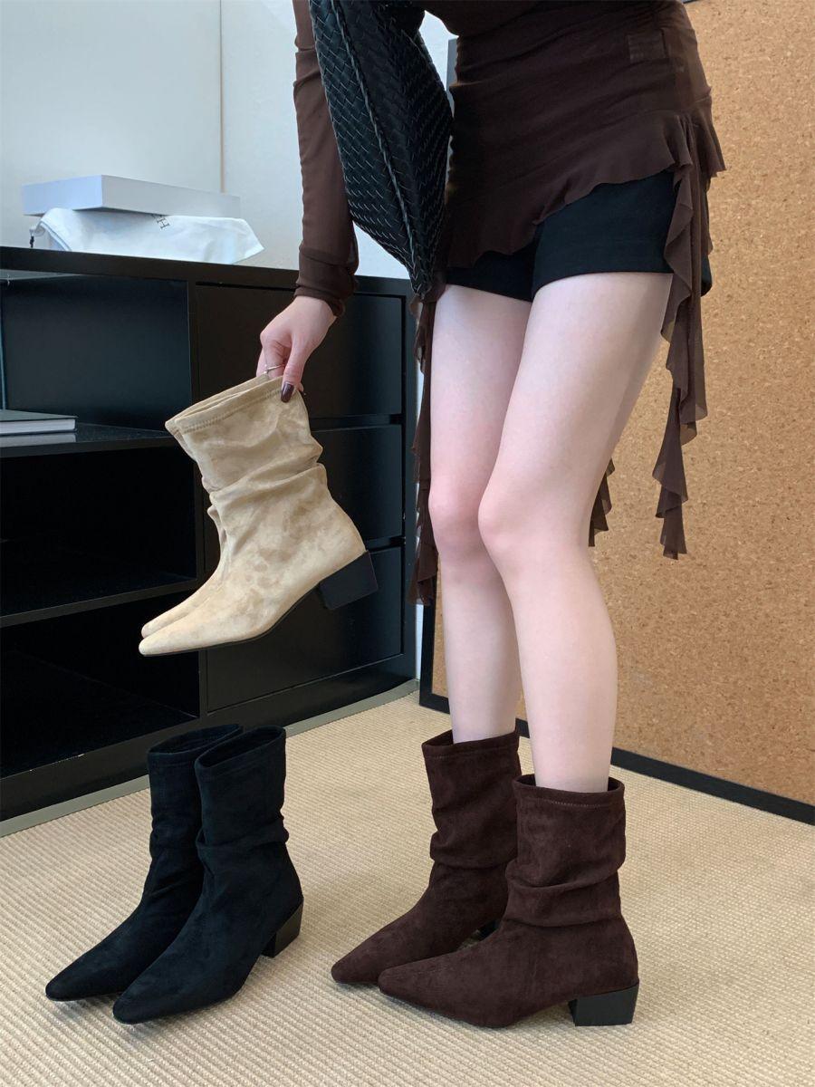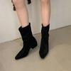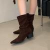 Verano 2025 Nuevas Botas Largas de Media Caña de Gamuza de Punta con Tacón Grueso para Mujer Botas Vaqueras Botas Slouch Botas de Caballero para Mujer