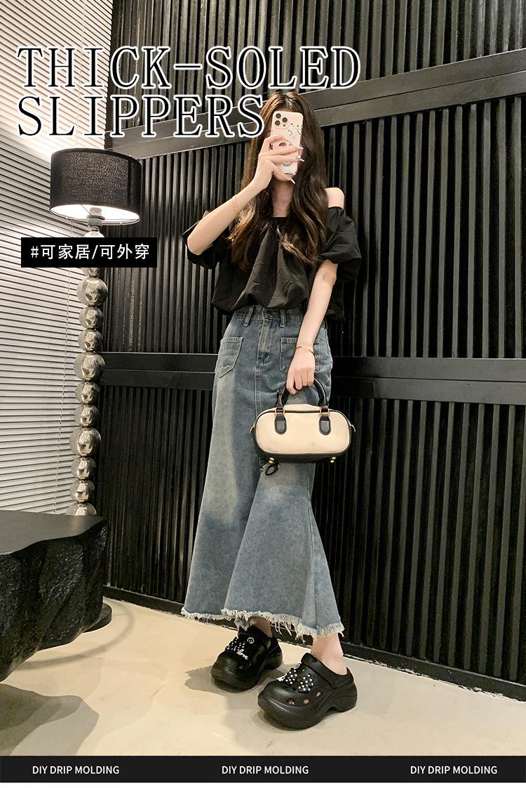 2025 Nuevos Zapatos Croc para Mujer Verano Ropa Exterior Sandalias de Suela Gruesa Antideslizantes Transpirables Casuales Baotou Sandalias de Playa y Pantuflas