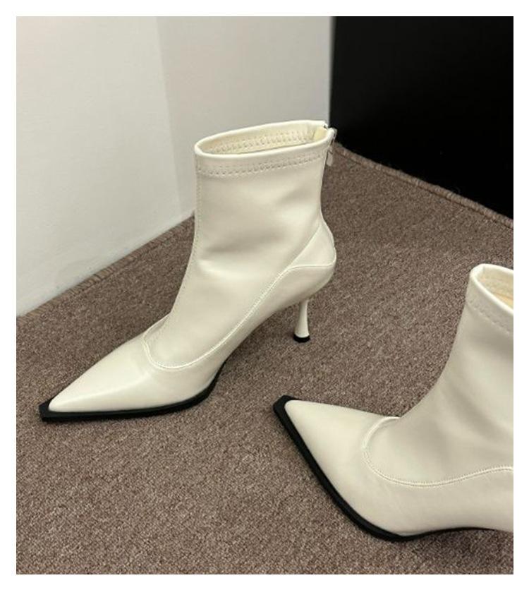 Punta afilada Tacón de aguja Temperamento Cuero suave Botines ajustados Mujer Cierre trasero Tacón alto Versátiles Populares Europeos y Americanos Botines
