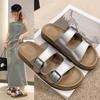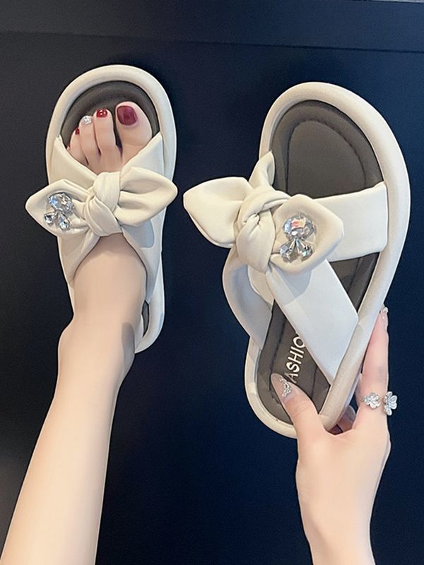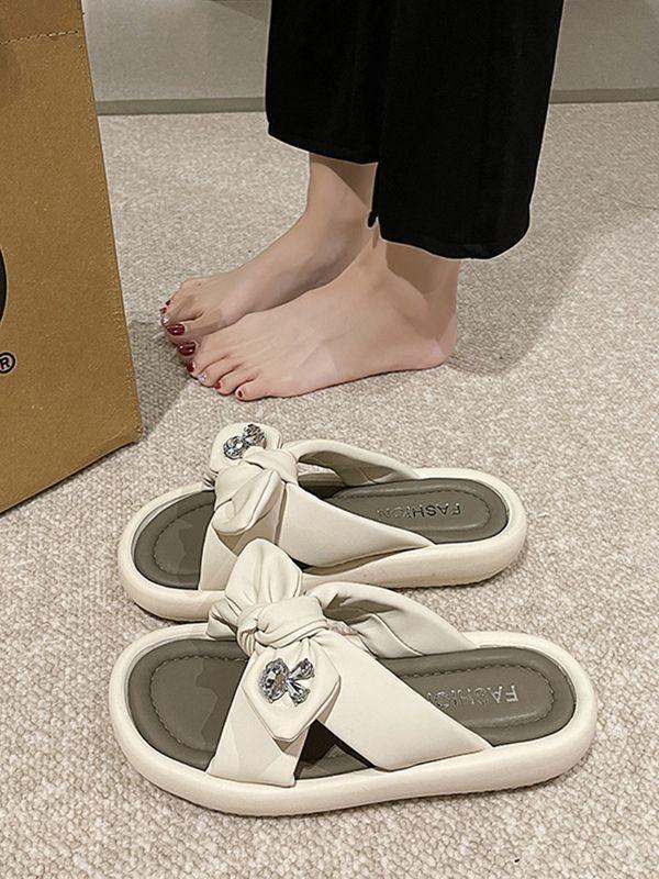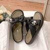 Pantuflas zapatos de playa nuevo metal adelgazante realzante viento hada moda verano lazo cruzado suela gruesa francés