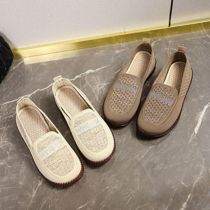 Zapatos de Tela de Pekín Antiguos para Mujer Transpirables Calados Nuevo Estilo Chino Zapatos de Frijol Verano 2025 Nuevos Suela Suave Antideslizantes Corte Bajo Zapatos de Mamá