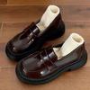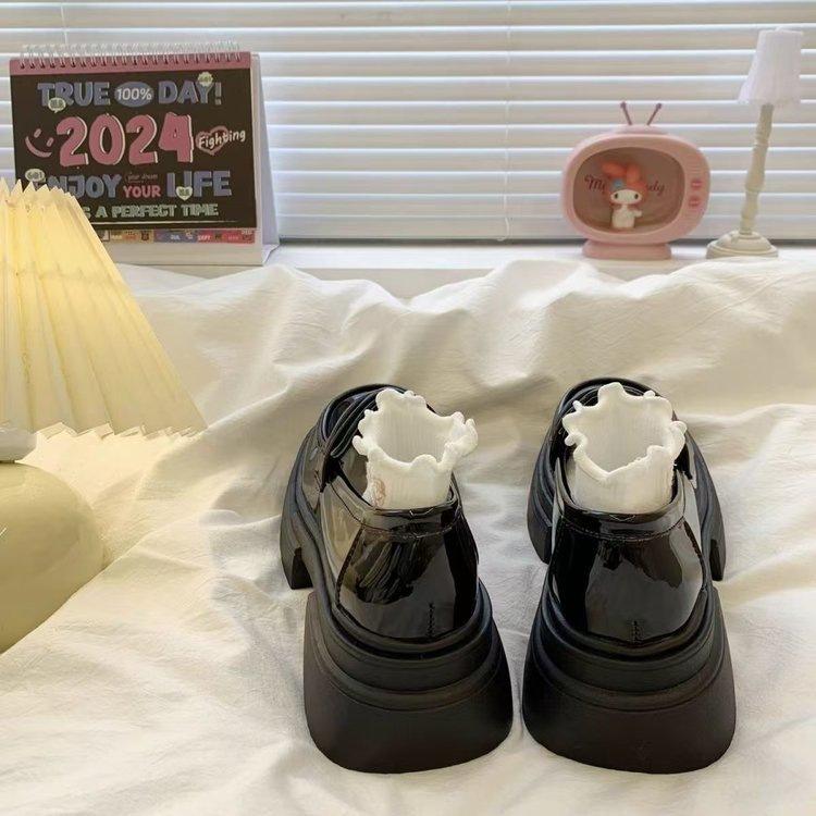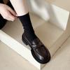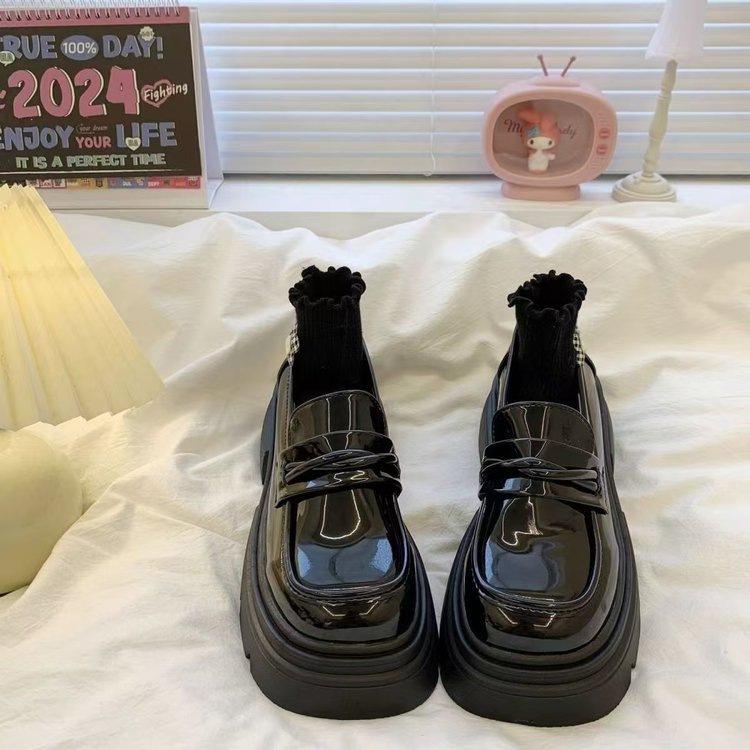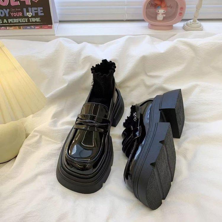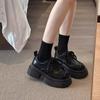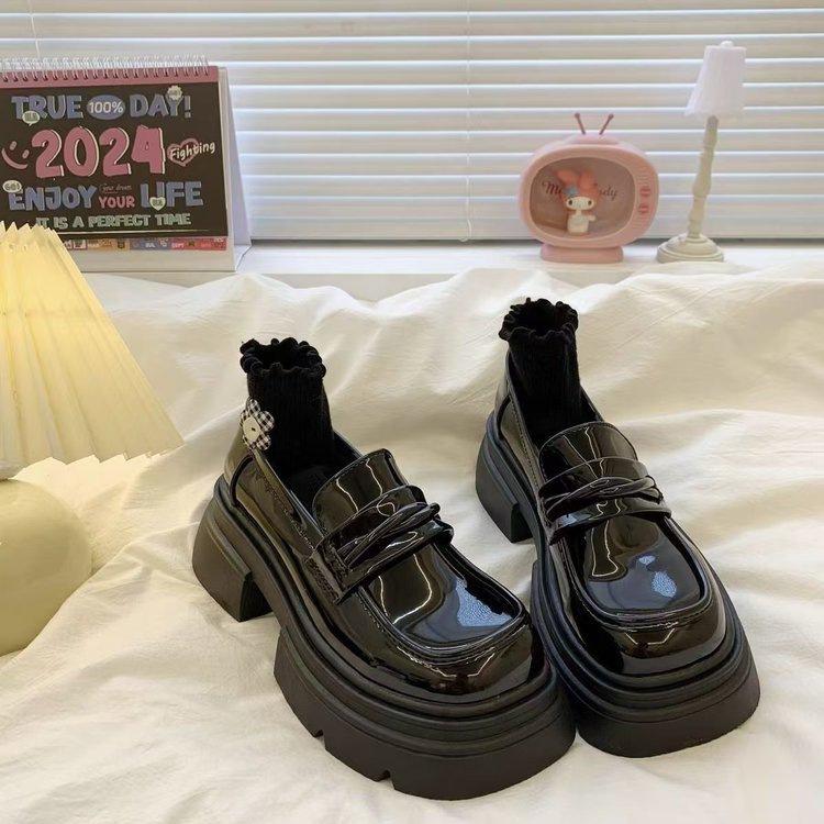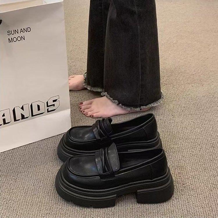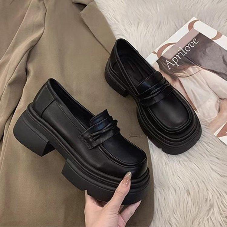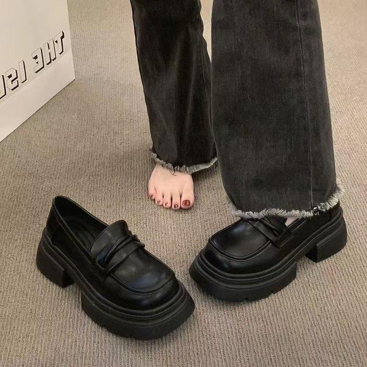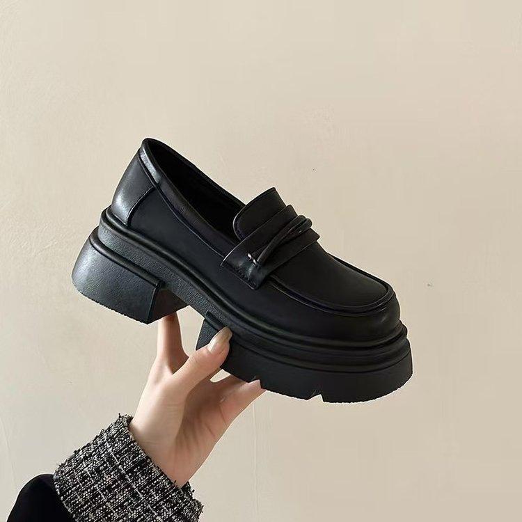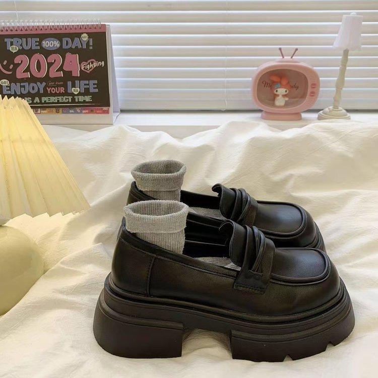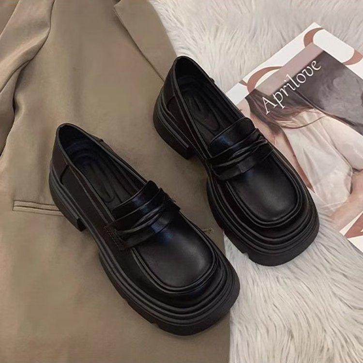 Zapatos Negros de Cuero Pequeños de Suela Gruesa para Mujer Otoño 2025 Nuevos Retro Japoneses Versátiles Estilo Británico Tacón Ancho Mocasines Franceses