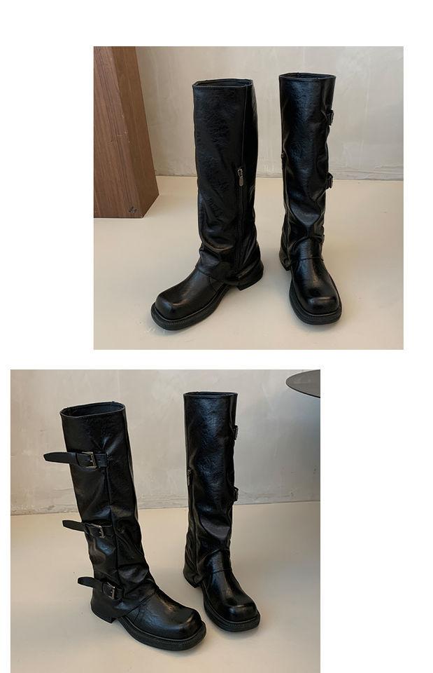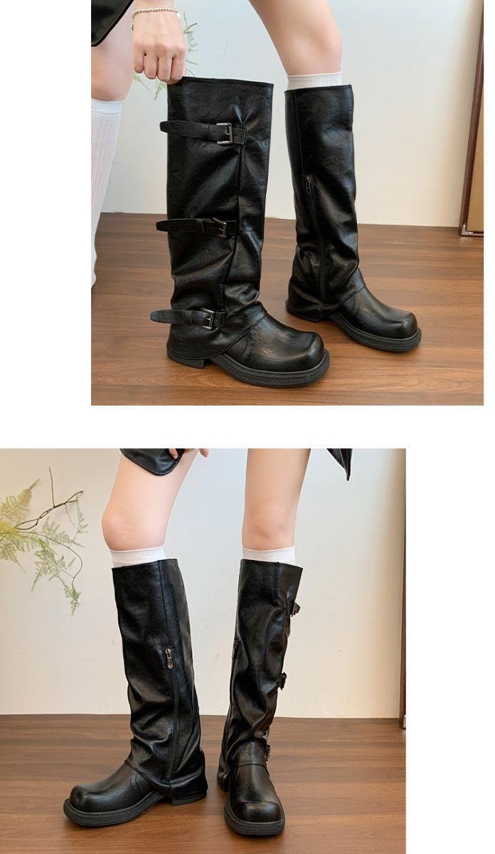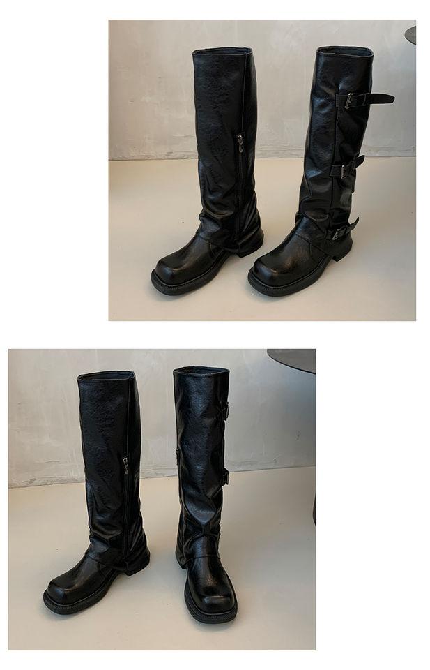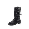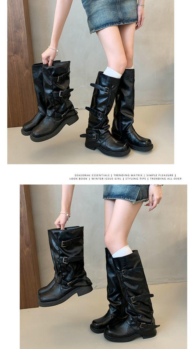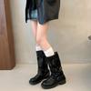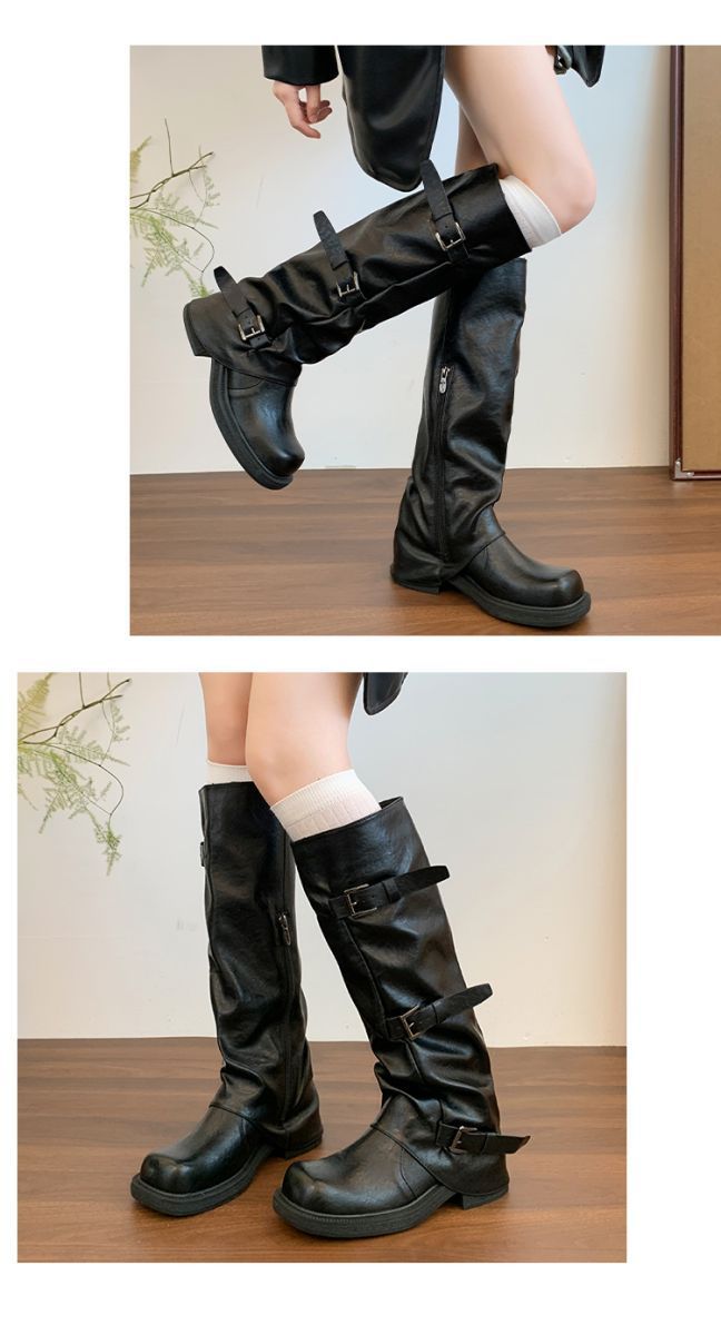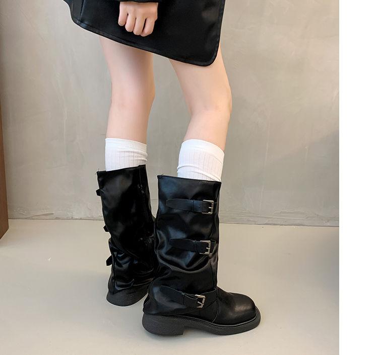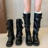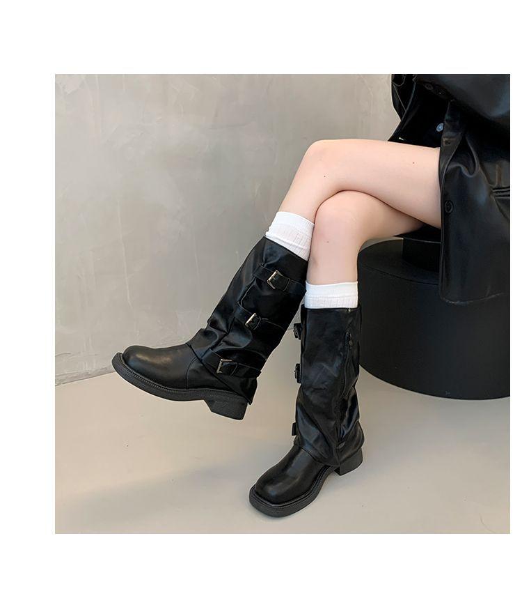 Botas hasta la rodilla de suela gruesa para mujer verano estilo delgado 2025 nuevas botas western de media pantorrilla botas con hebilla para pierna de pantalón botas altas tipo caballero