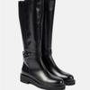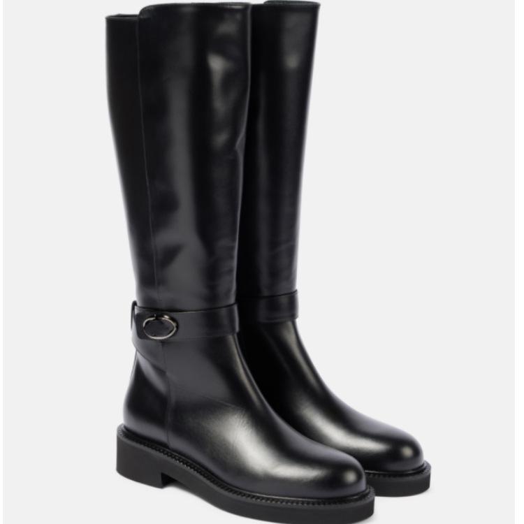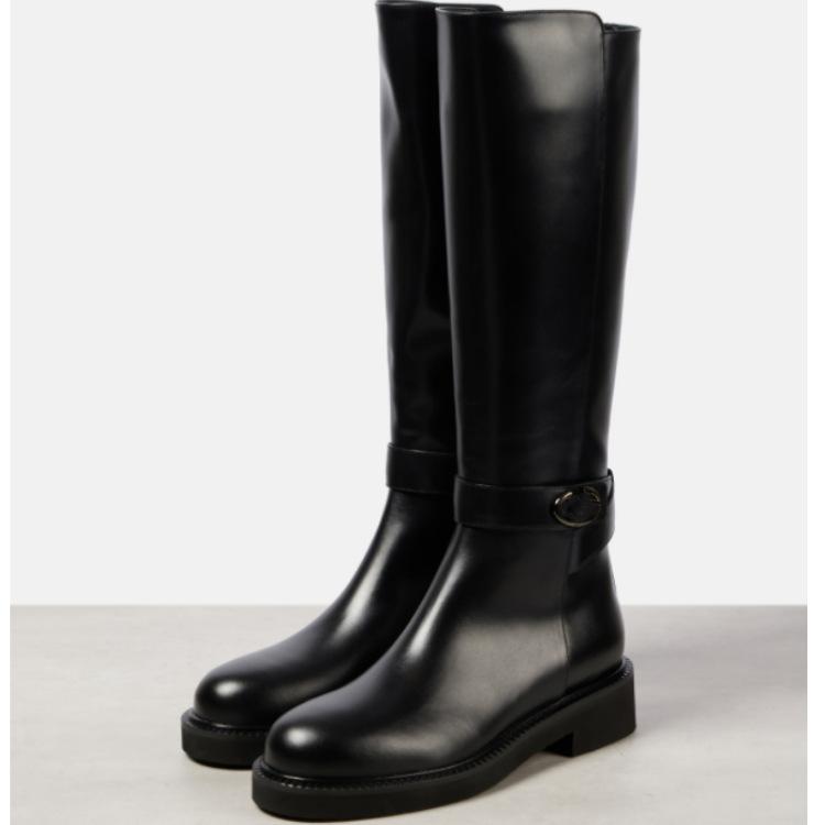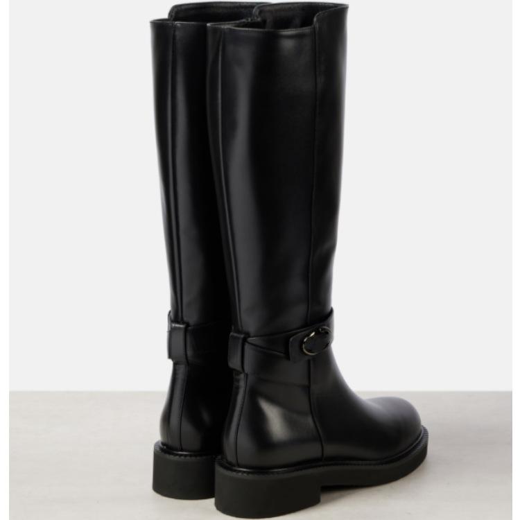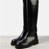 Botas altas de piel de vaca nuevas de otoño e invierno de comercio exterior transfronterizo 2024, botas planas de punta redonda para mujer de talla grande Joker de moda europea y americana