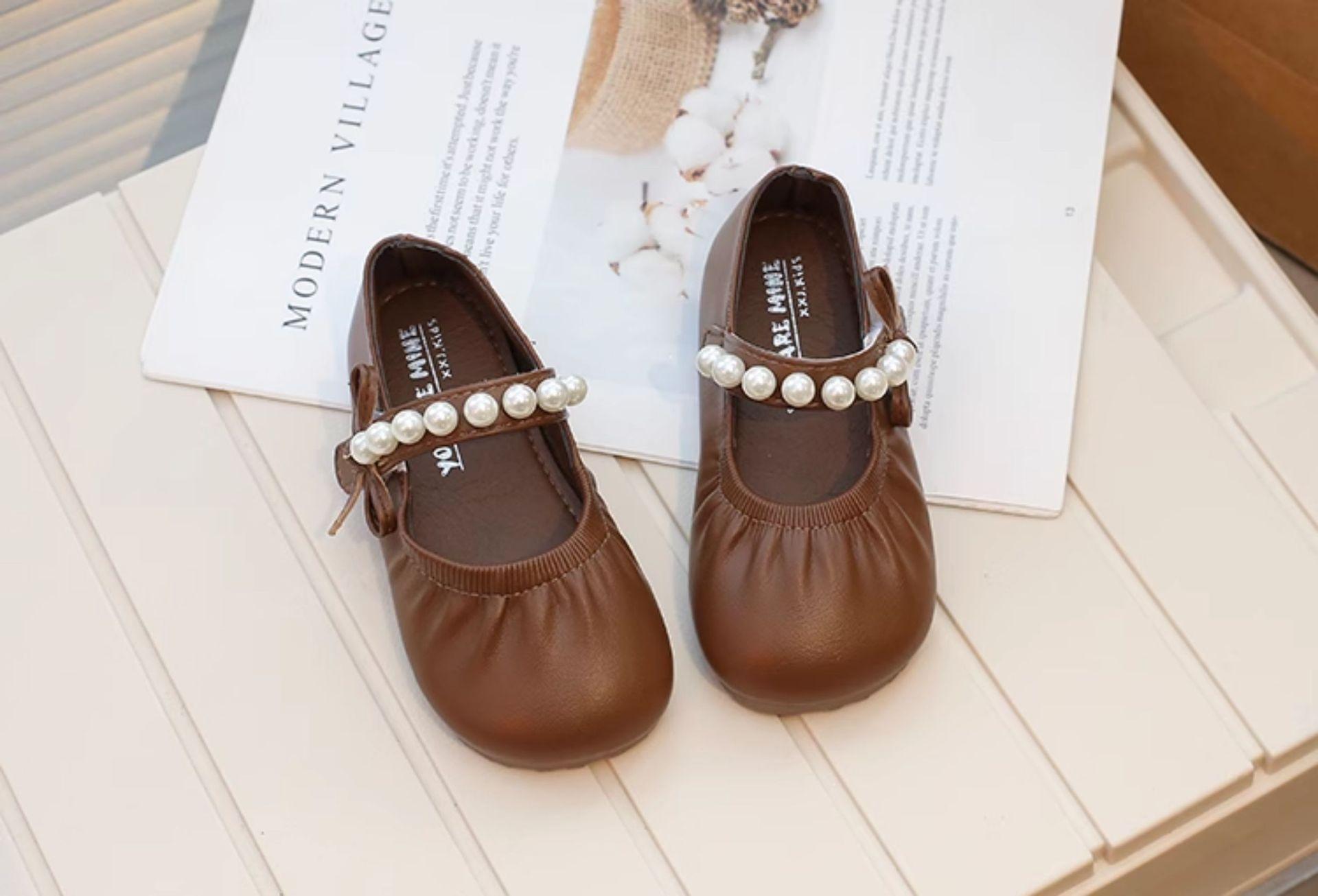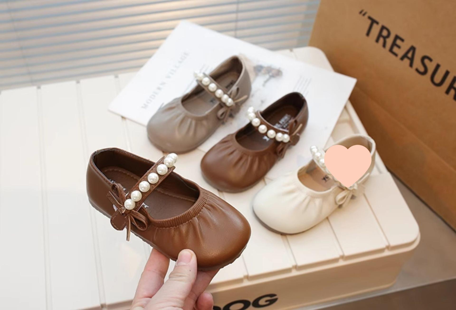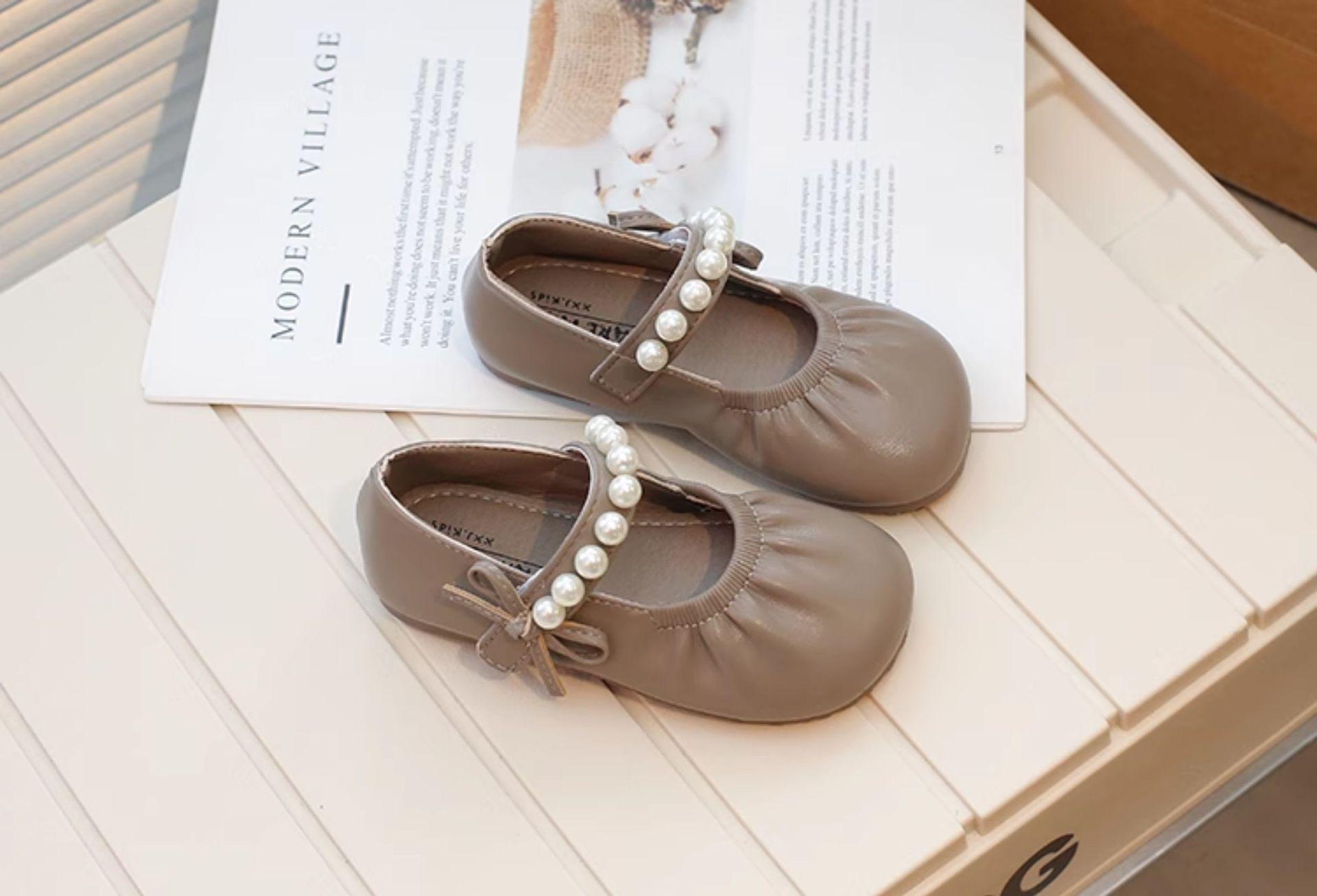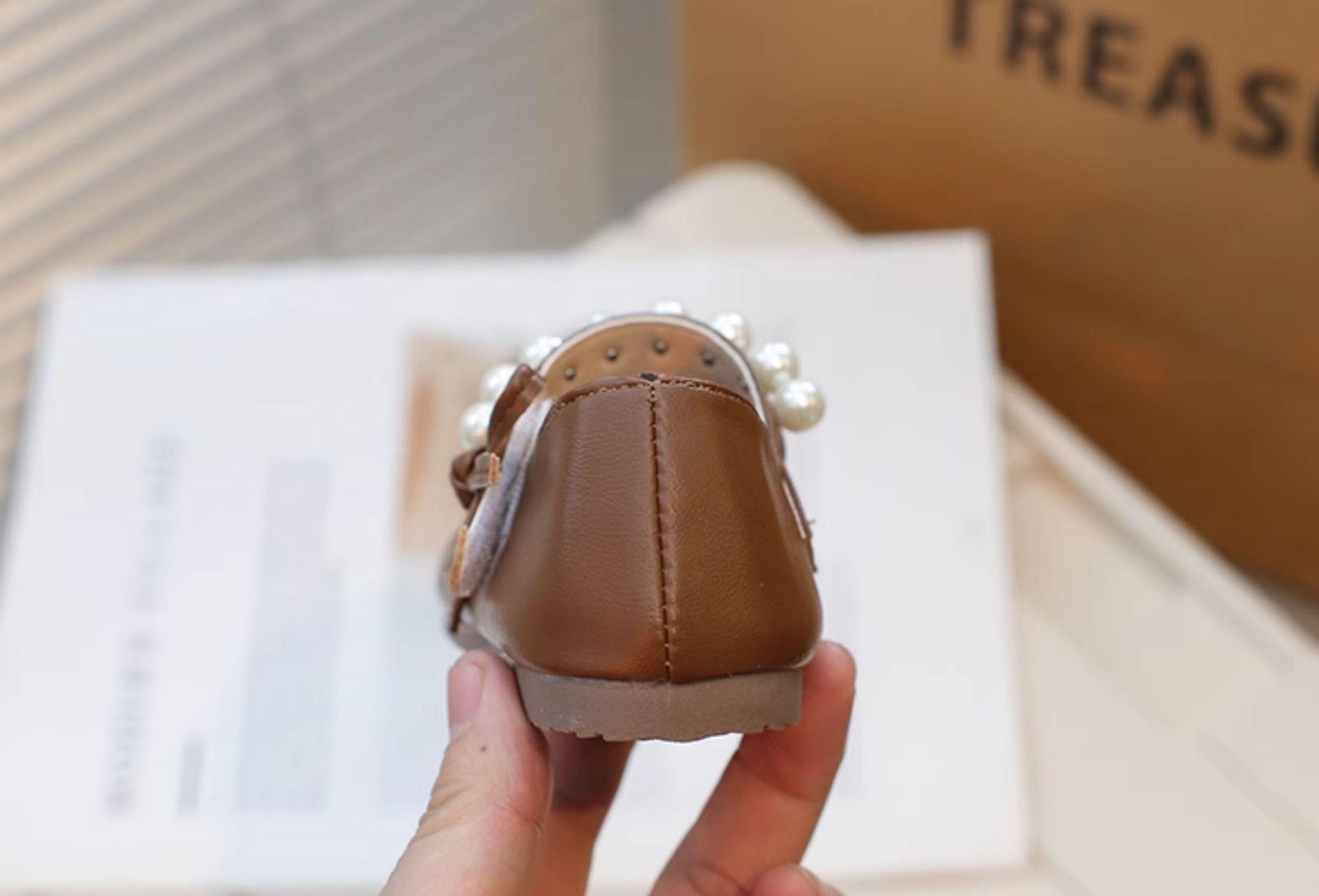 Zapatos de Cuero para Niñas 2025 Nuevo Estilo Niña a la Moda Zapatos de Princesa con Perlas Primavera y Otoño Suela Suave para Niños Zapatos Individuales de Moda para Bebé
