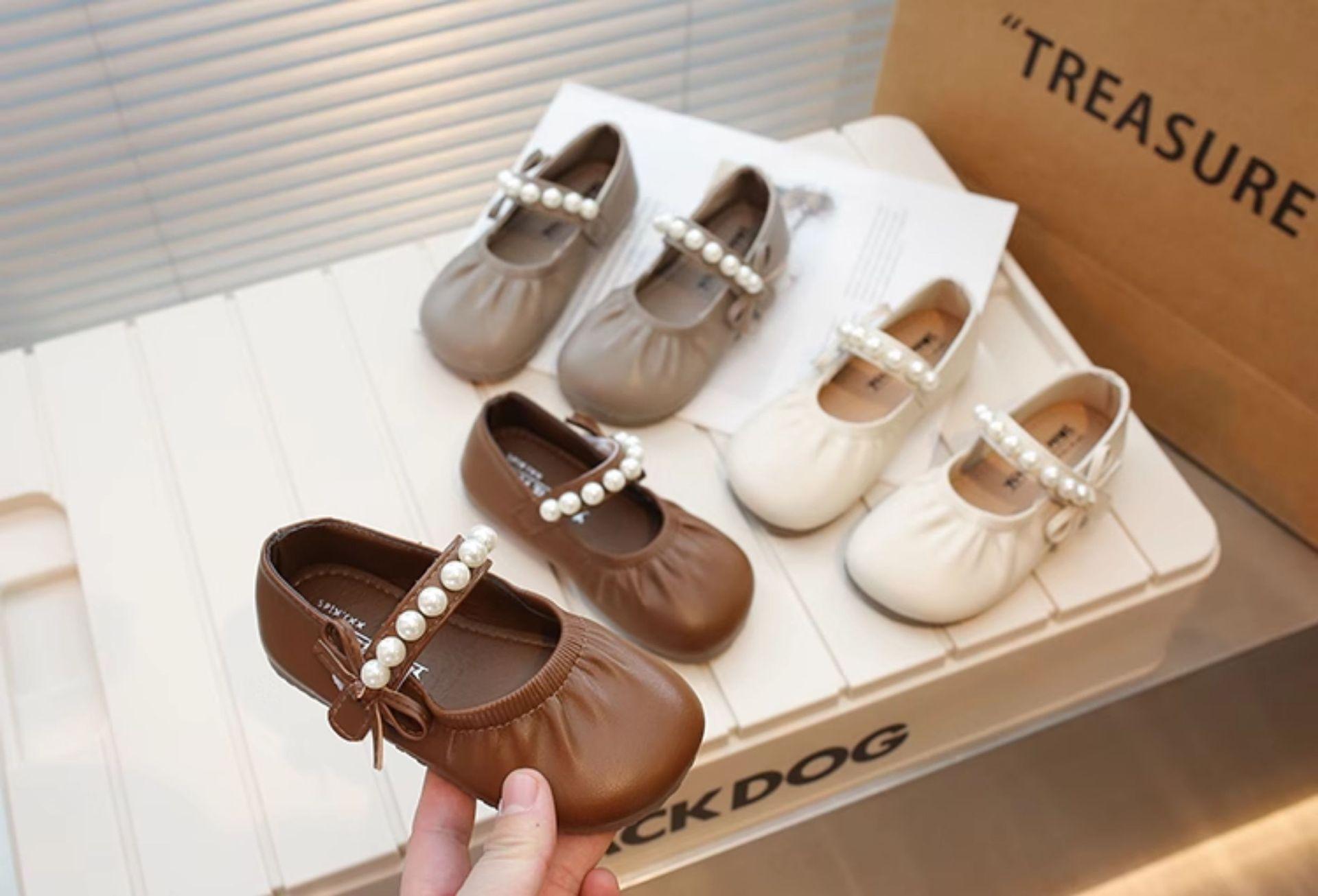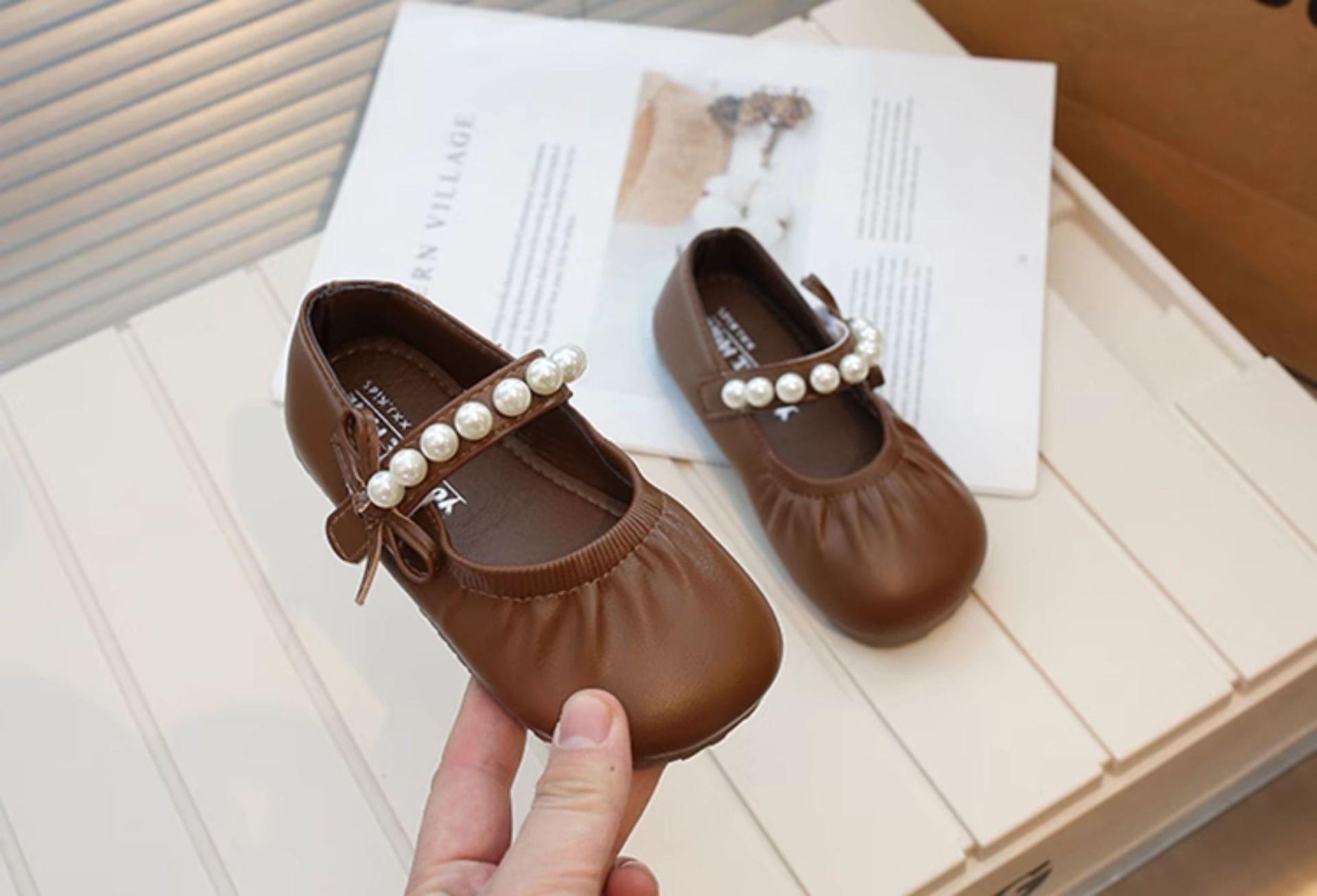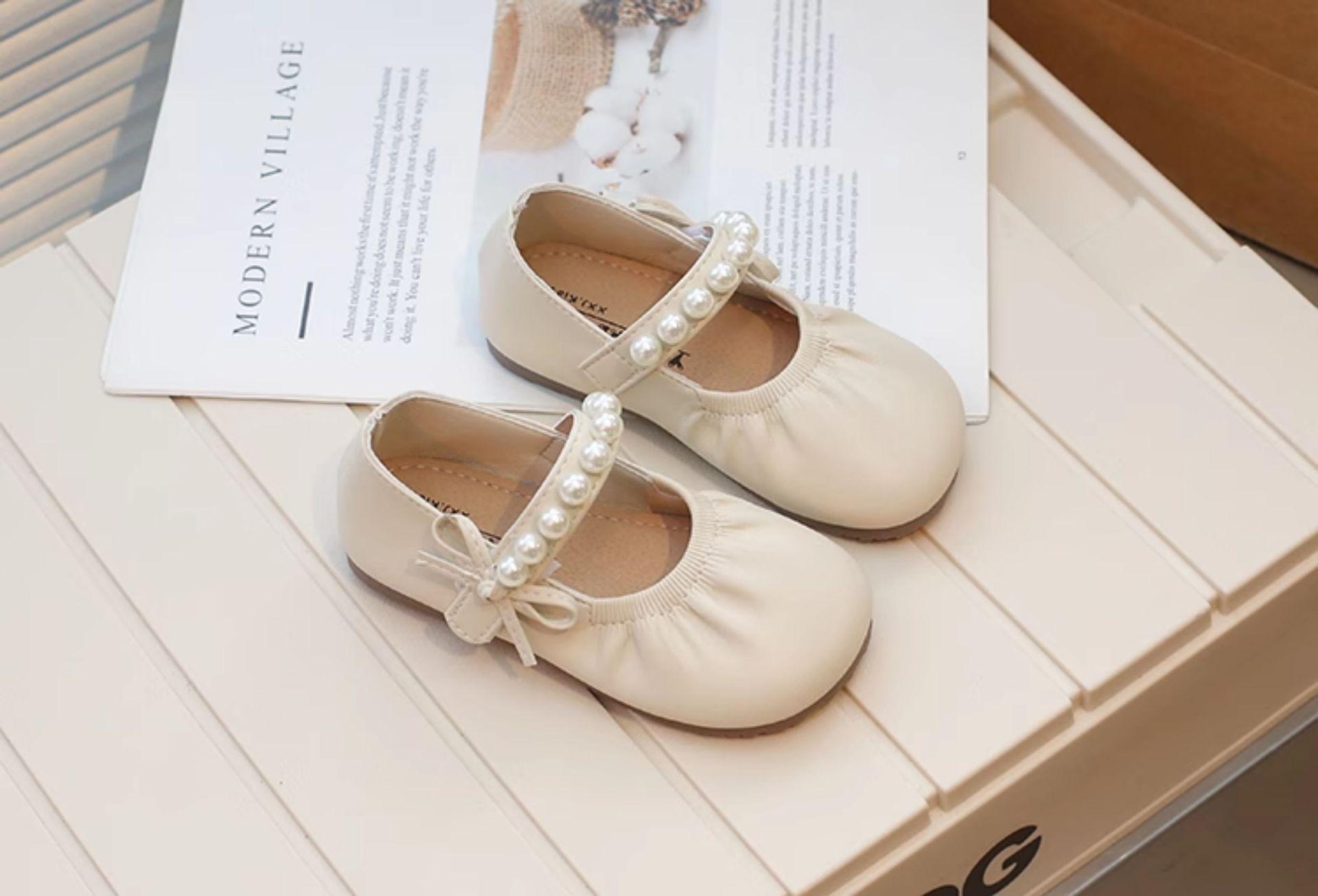 Zapatos de Cuero para Niñas 2025 Nuevo Estilo Niña a la Moda Zapatos de Princesa con Perlas Primavera y Otoño Suela Suave para Niños Zapatos Individuales de Moda para Bebé