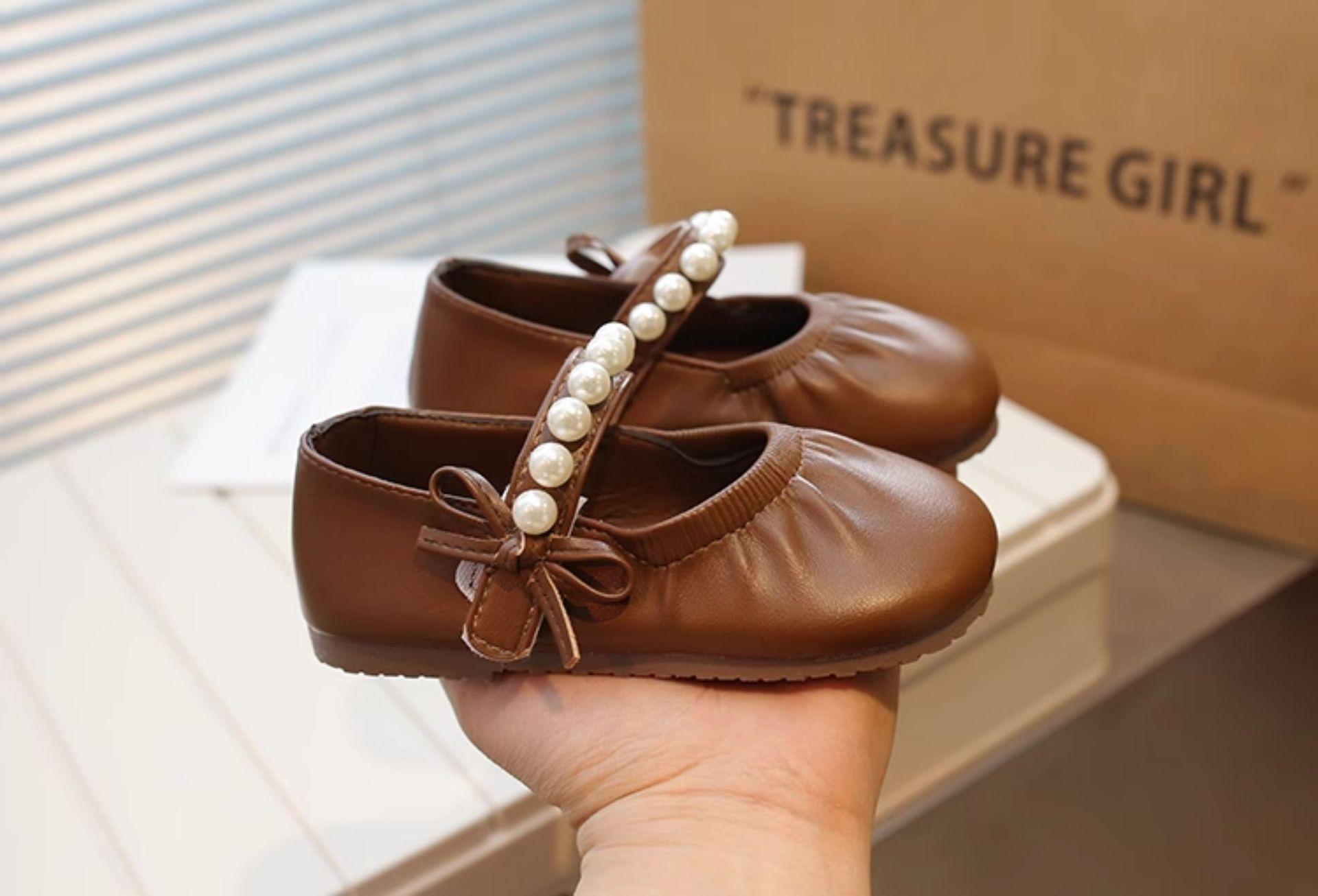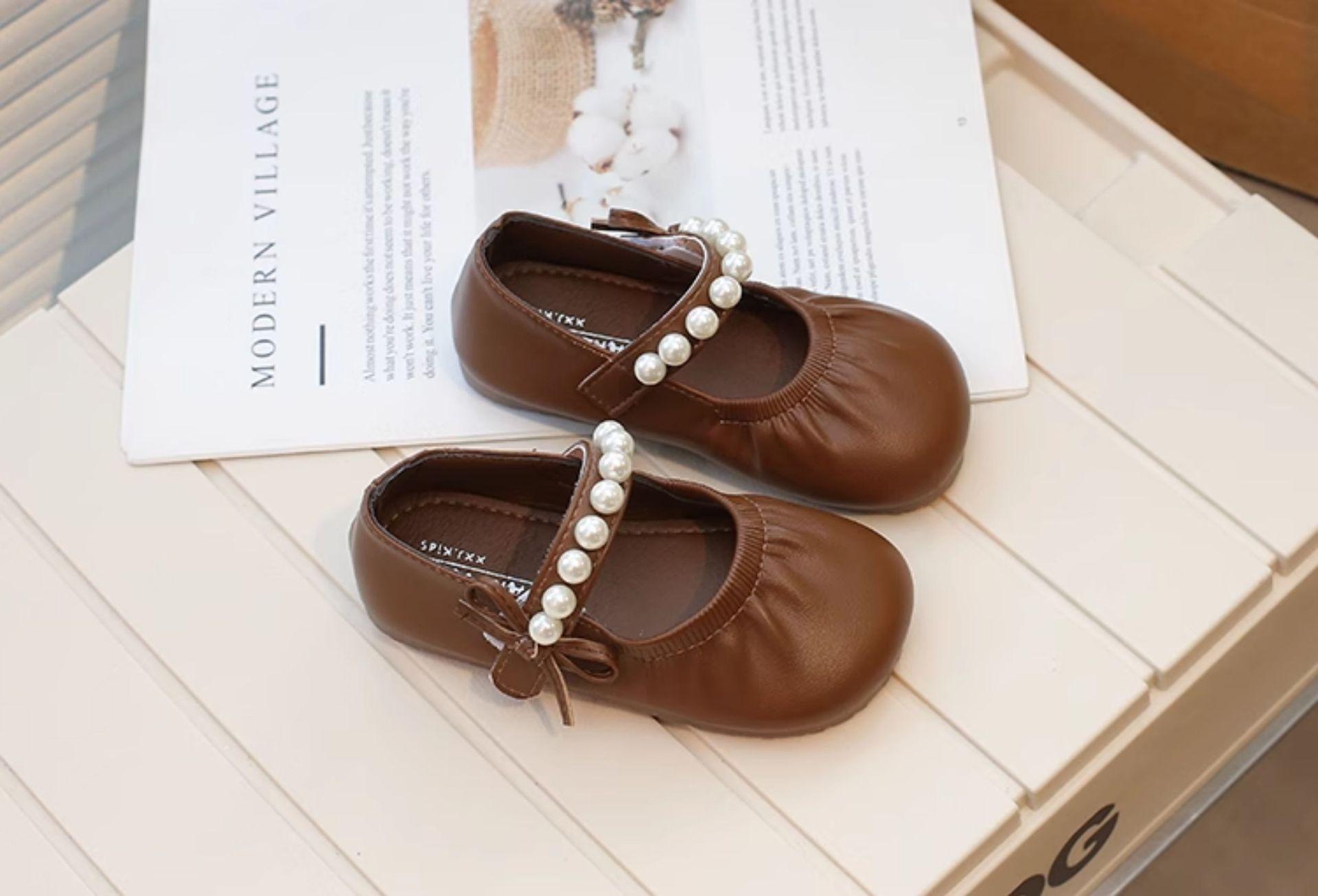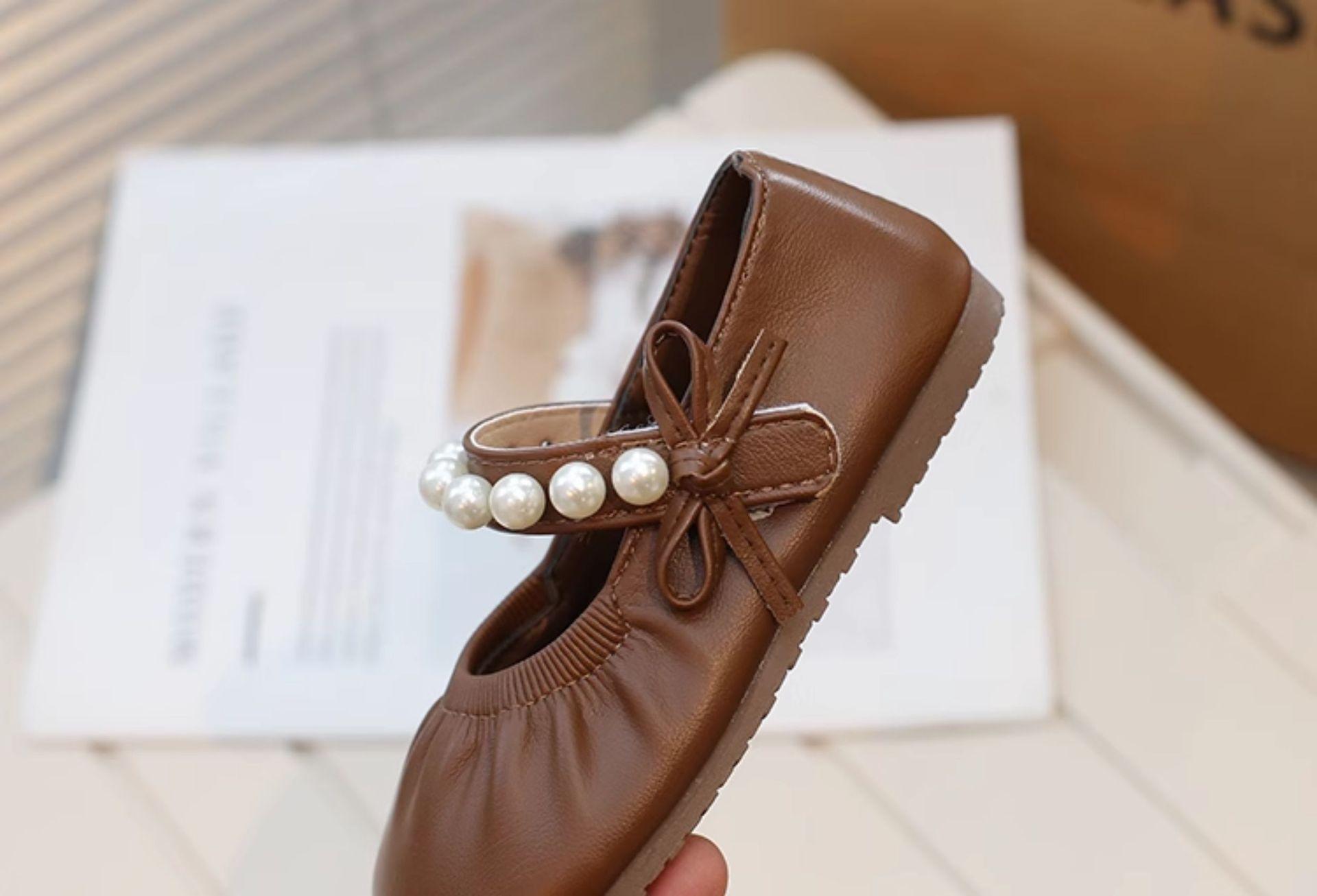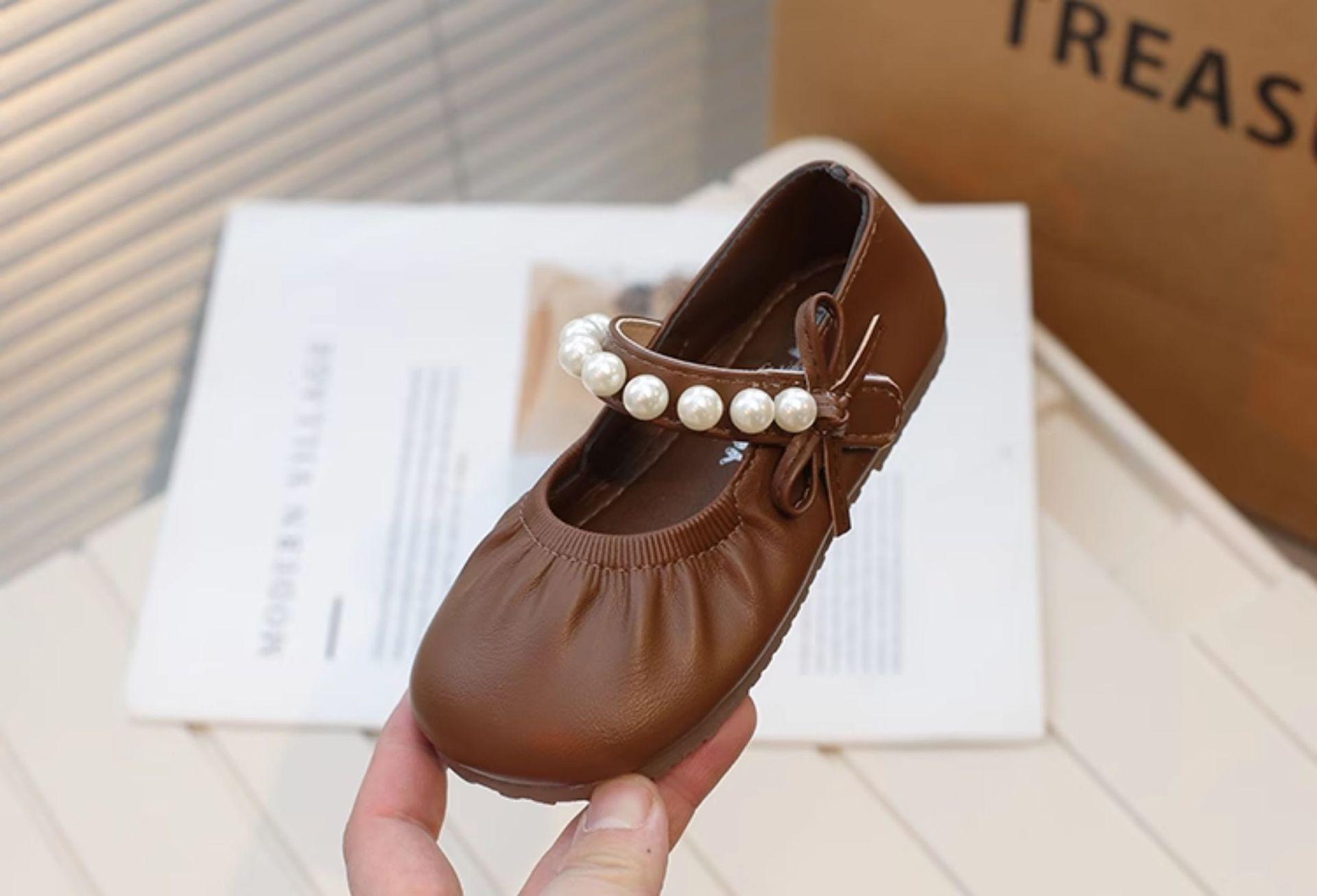 Zapatos de Cuero para Niñas 2025 Nuevo Estilo Niña a la Moda Zapatos de Princesa con Perlas Primavera y Otoño Suela Suave para Niños Zapatos Individuales de Moda para Bebé
