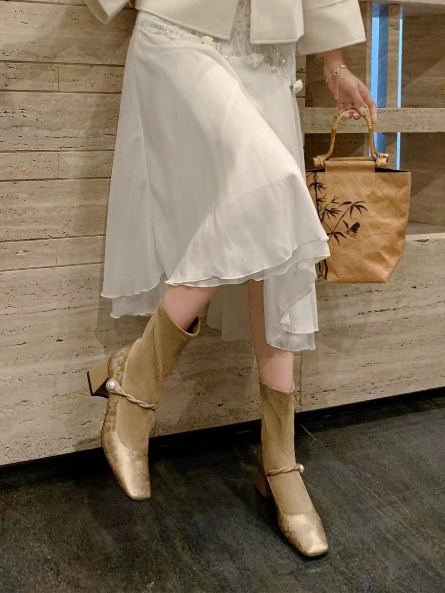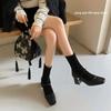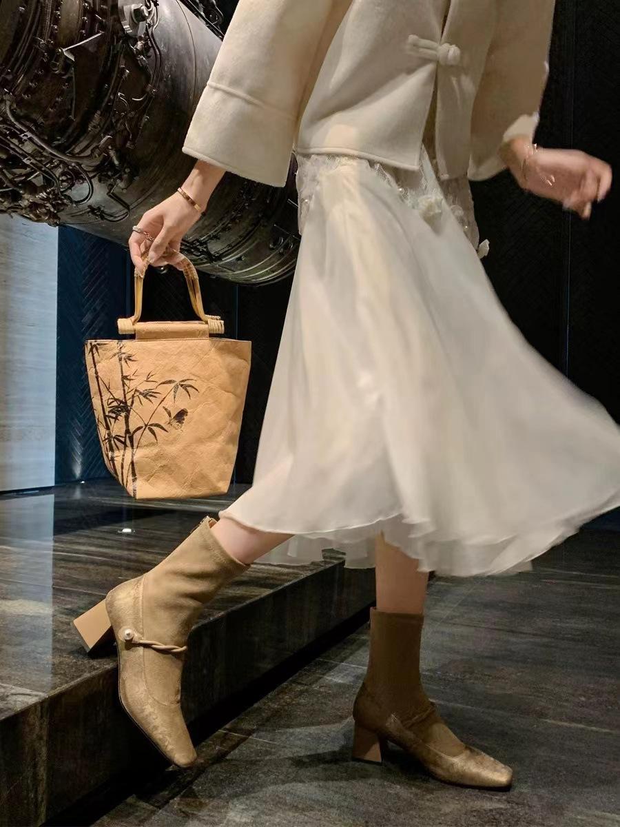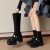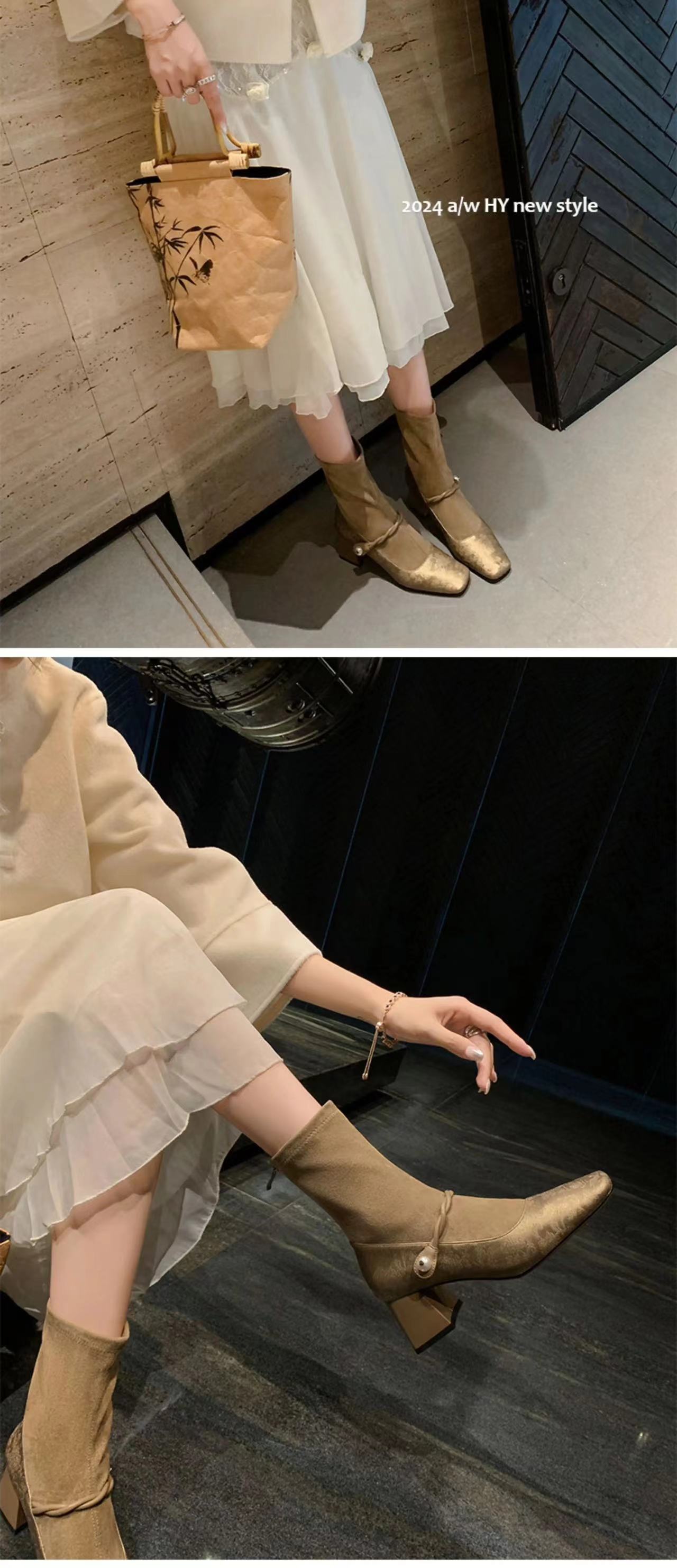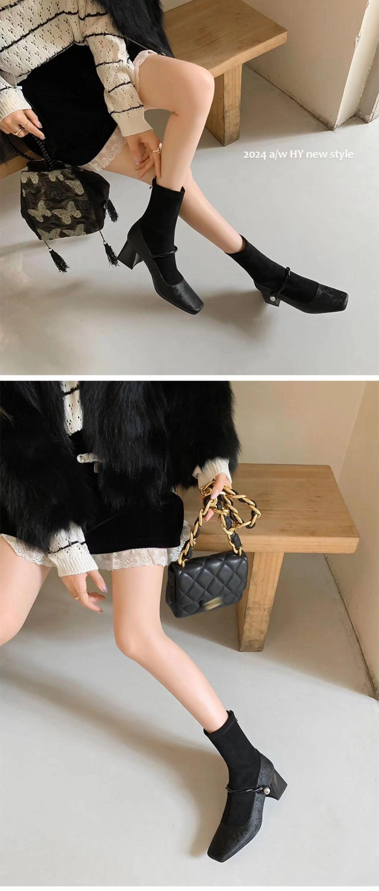 Botines cortos de estilo chino nuevo tacón alto grueso petite Mary Jane botines calcetín mujer 2025 nuevo otoño combinar falda botas elásticas ajustadas
