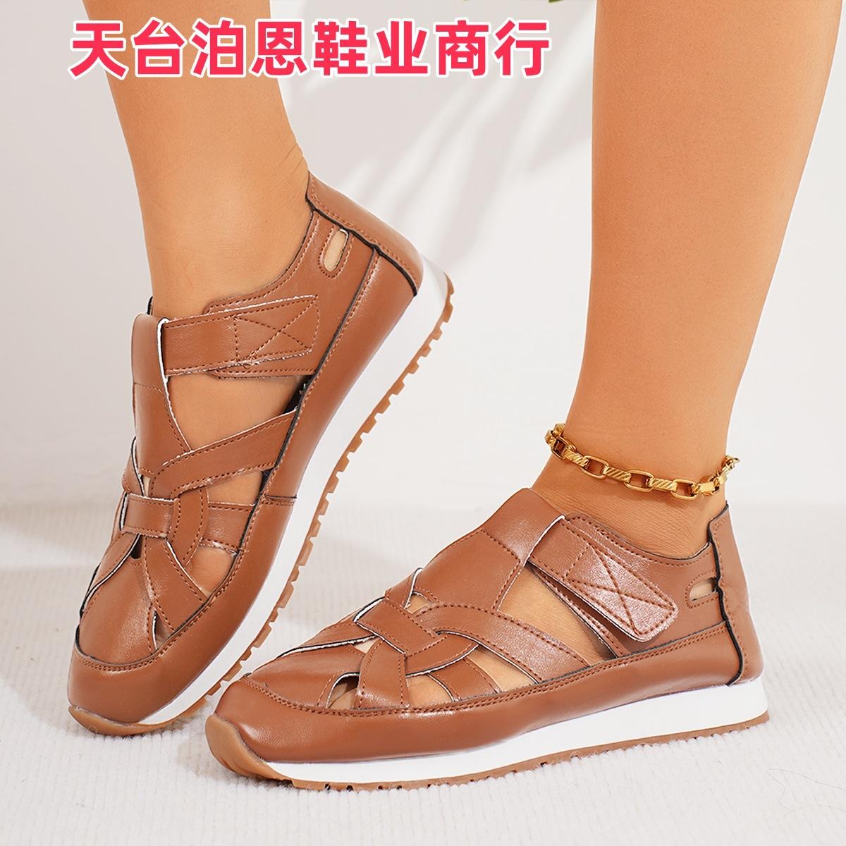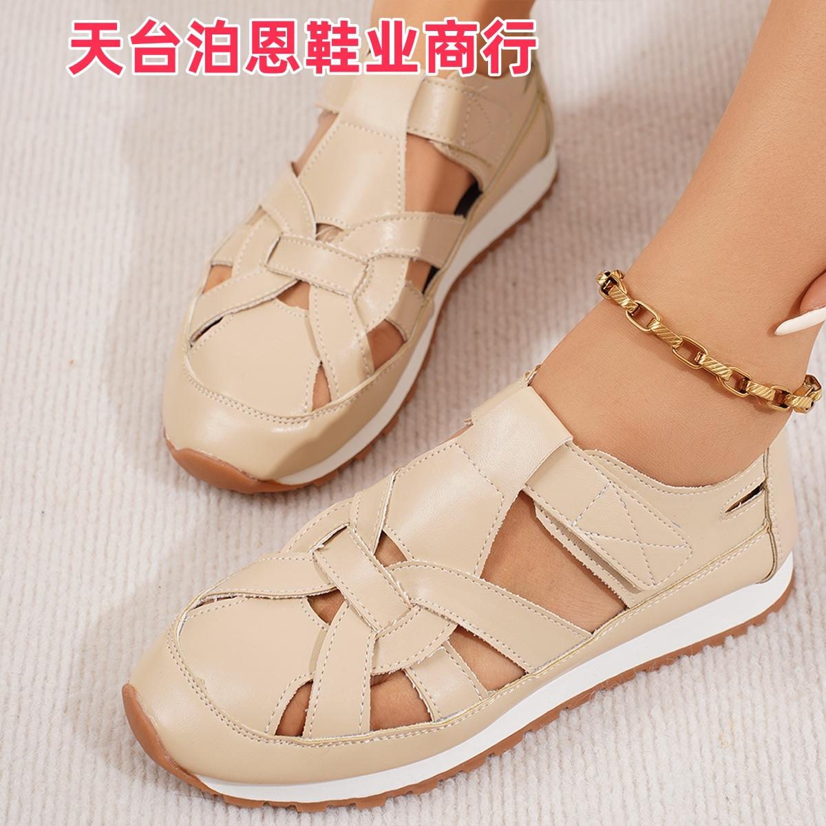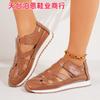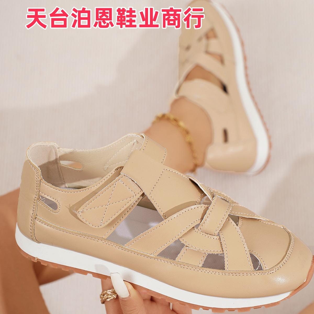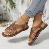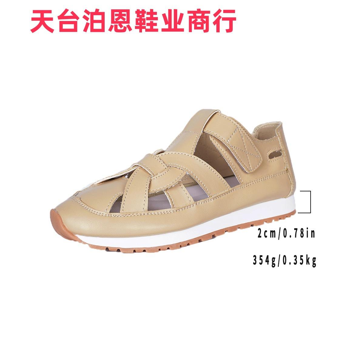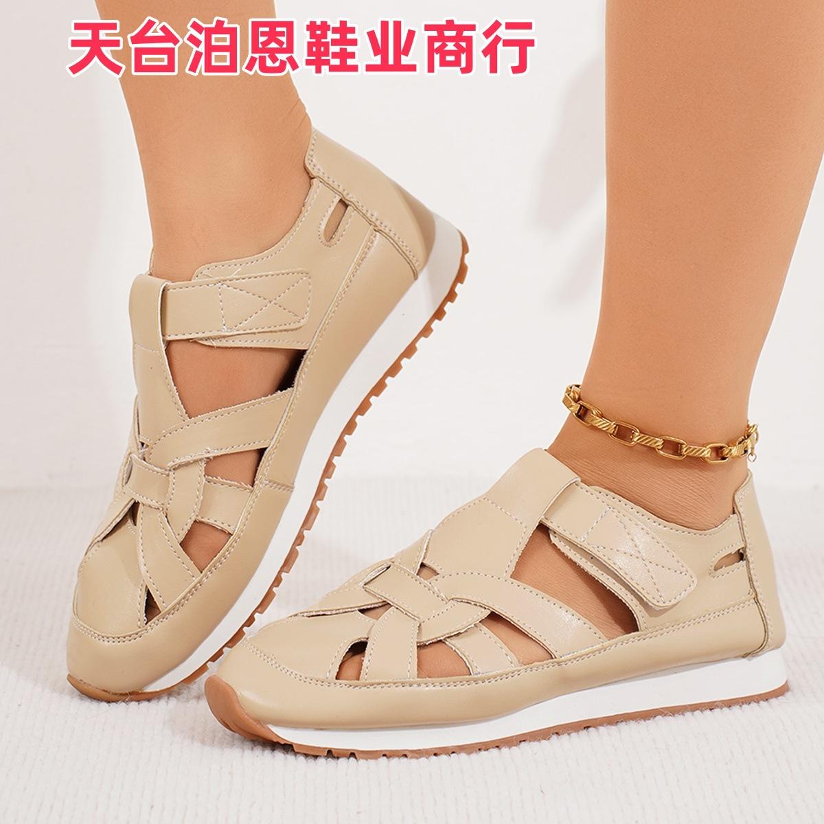 Moda Europea y Americana Verano Nuevo Velcro Punta Redonda Sandalias Planas de Mujer Comercio Exterior Transfronterizo Punto Sandalias Romanas de Mujer