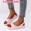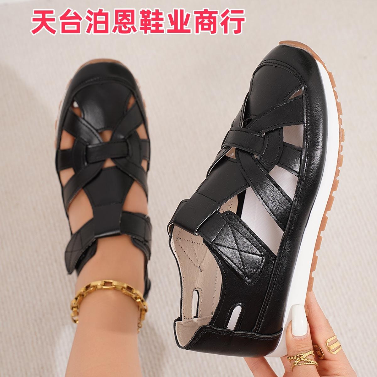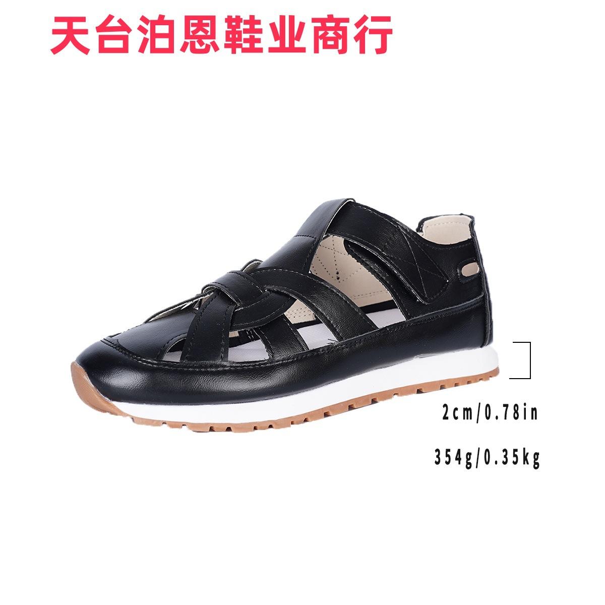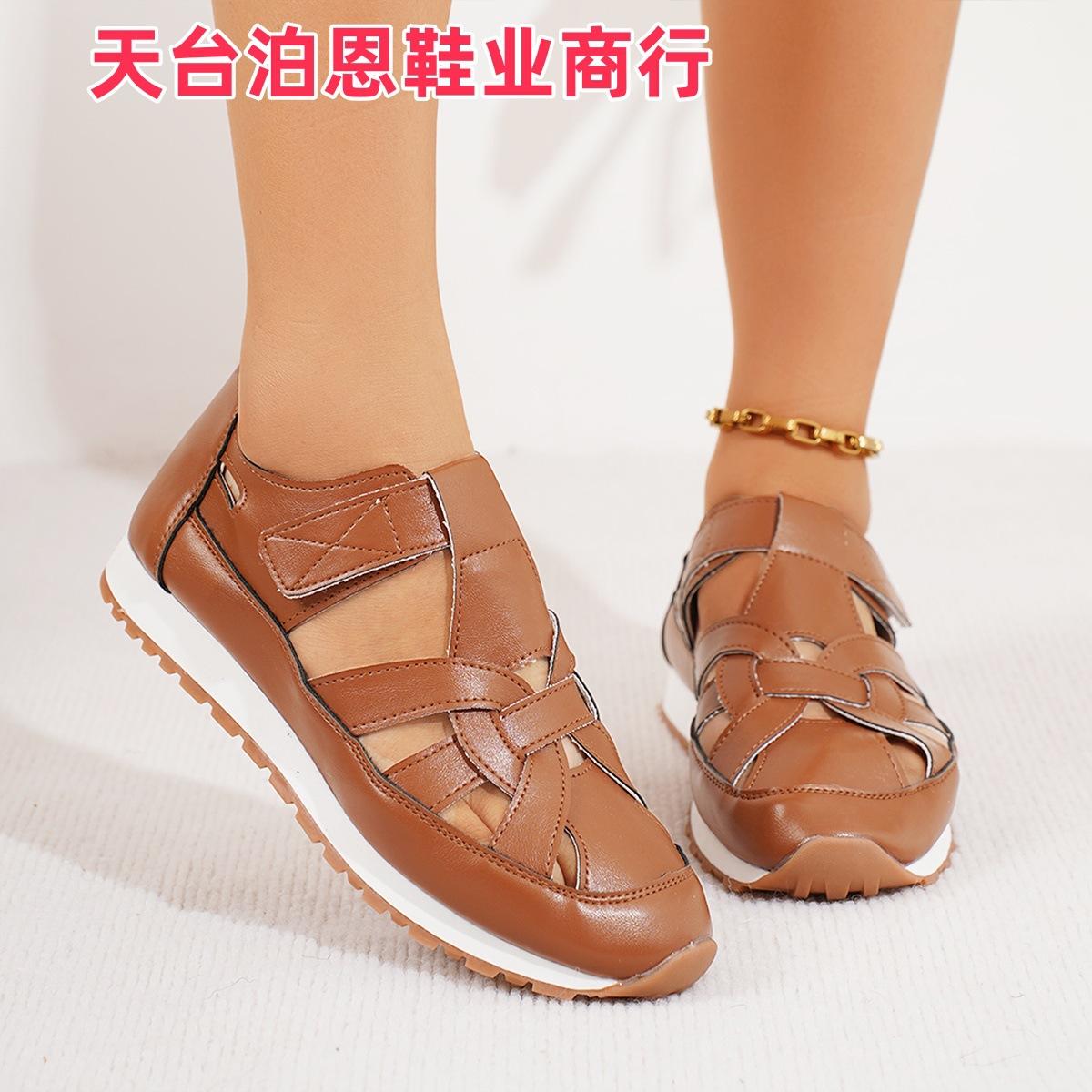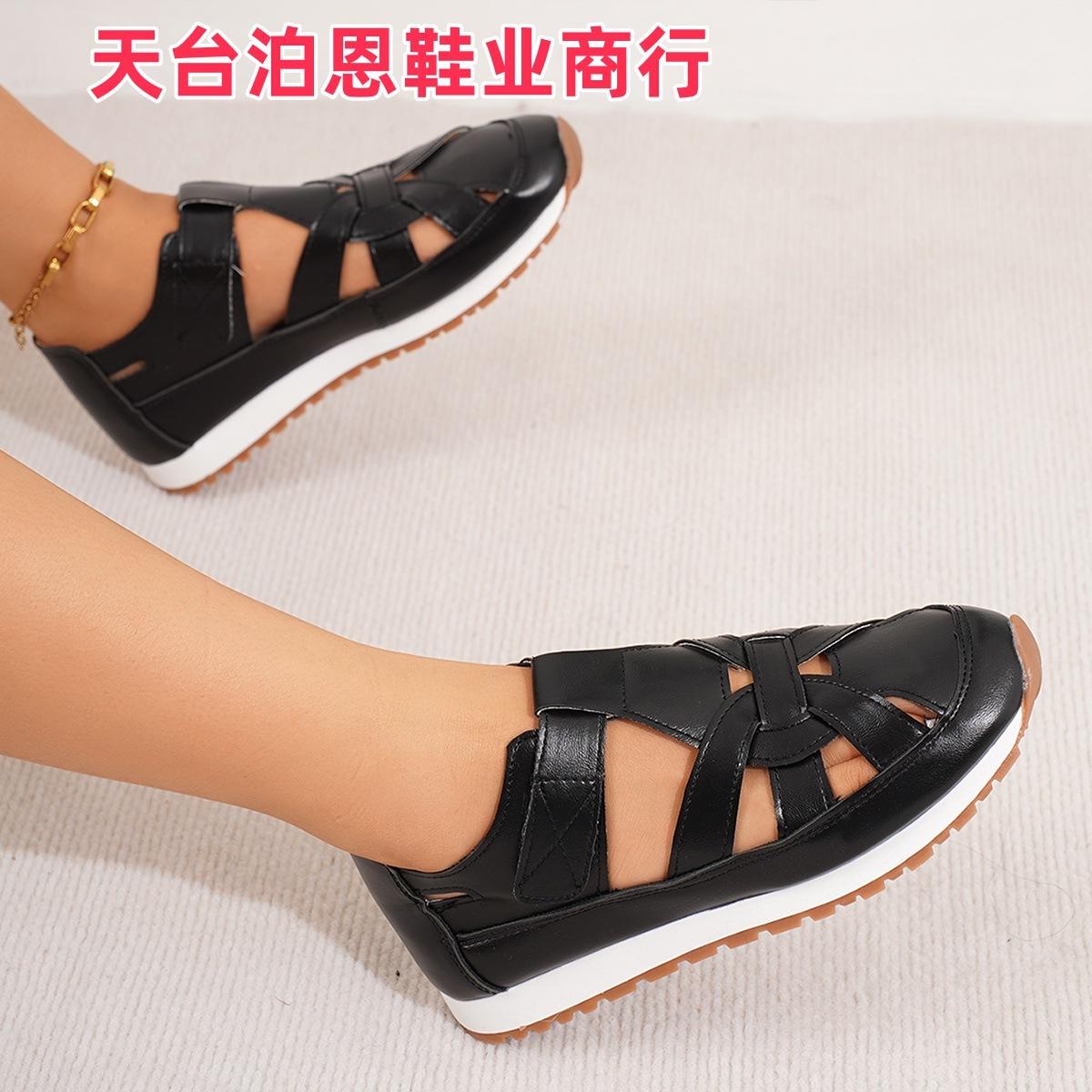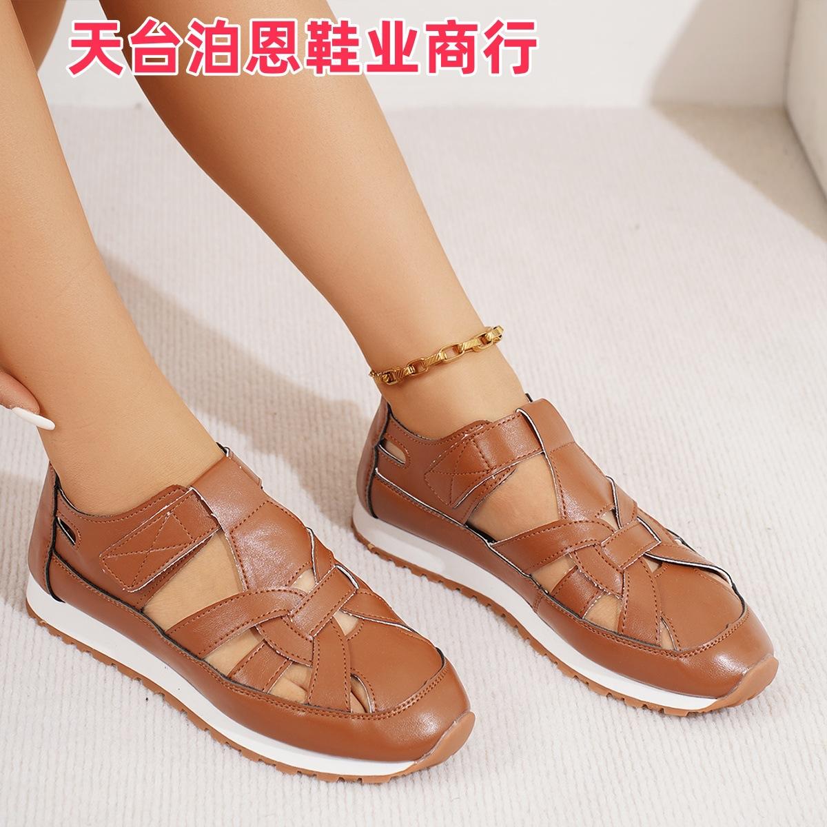 Moda Europea y Americana Verano Nuevo Velcro Punta Redonda Sandalias Planas de Mujer Comercio Exterior Transfronterizo Punto Sandalias Romanas de Mujer