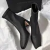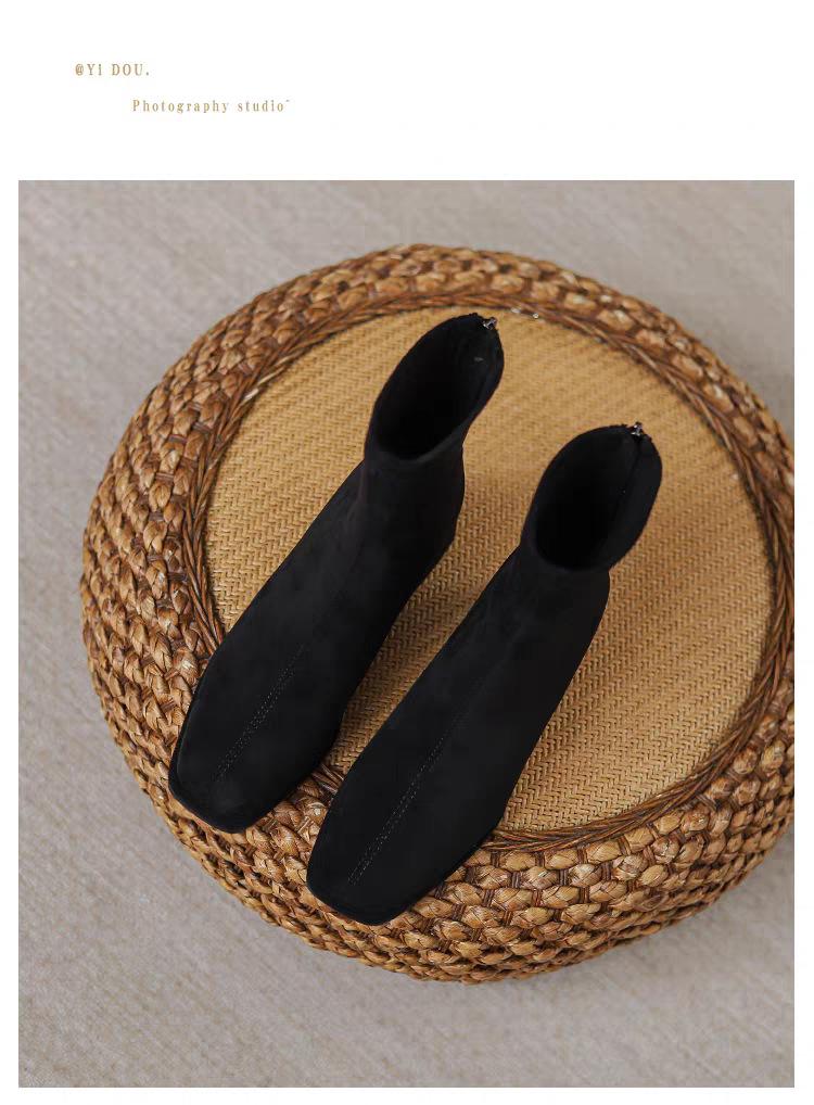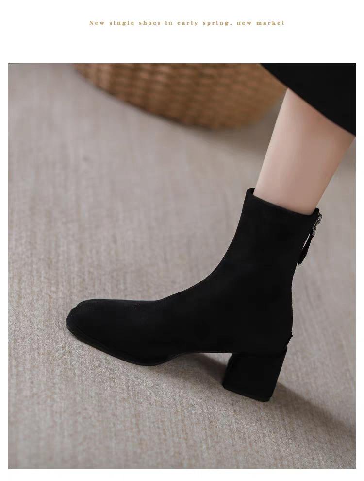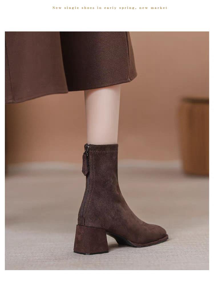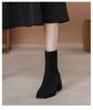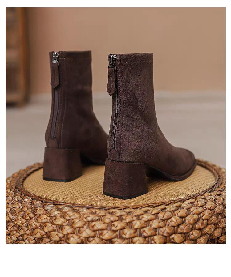 Temperamento Versátil Gamuza Francesa Tacón Alto Botines al Tobillo Mujer 2025 Otoño/Invierno Nuevos Tacón Chunky Punta Cuadrada Elásticos Adelgazantes