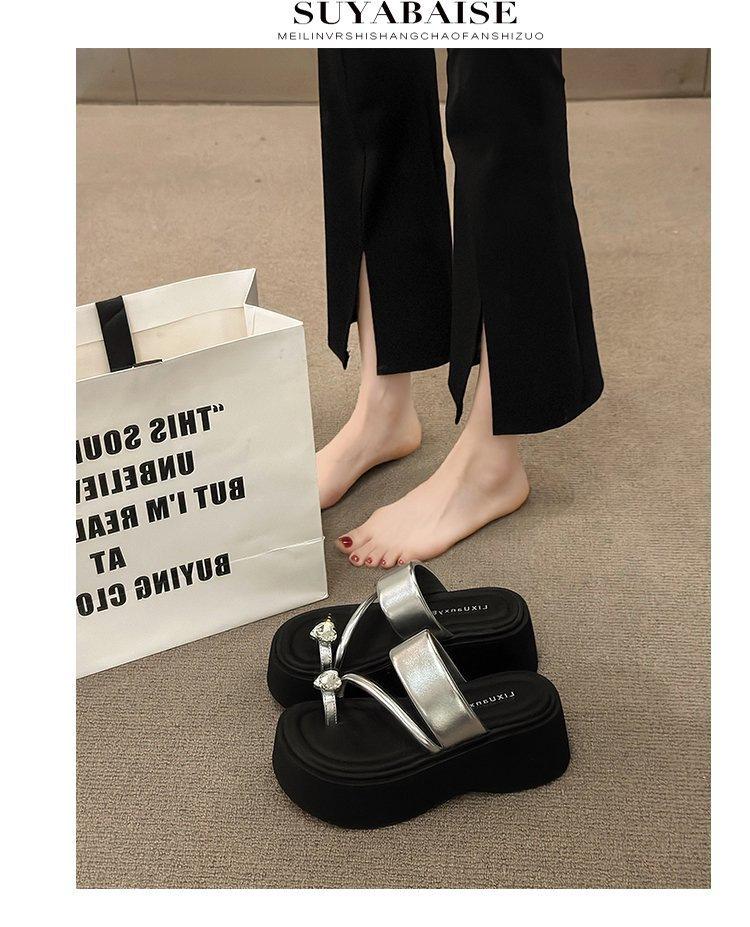 Sandalias de Diamantes de Verano 2025 para Mujer, Nuevas Sandalias Versátiles, Zapatos de Playa Impermeables de Plataforma y Suela Gruesa