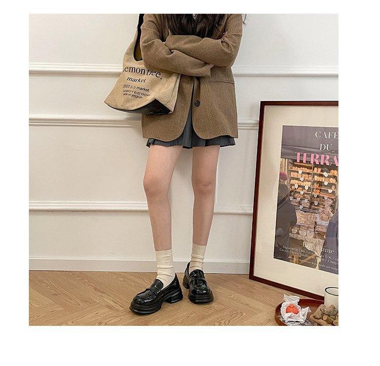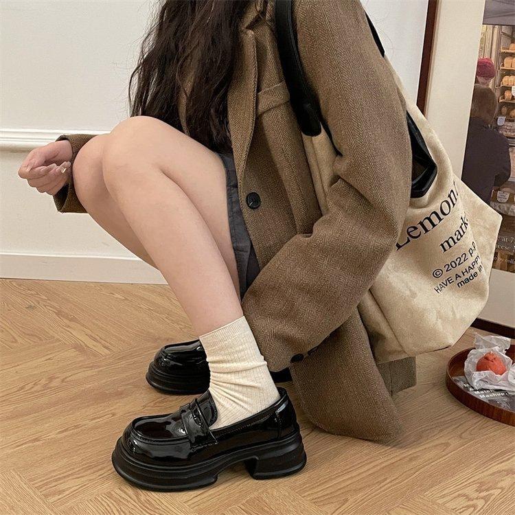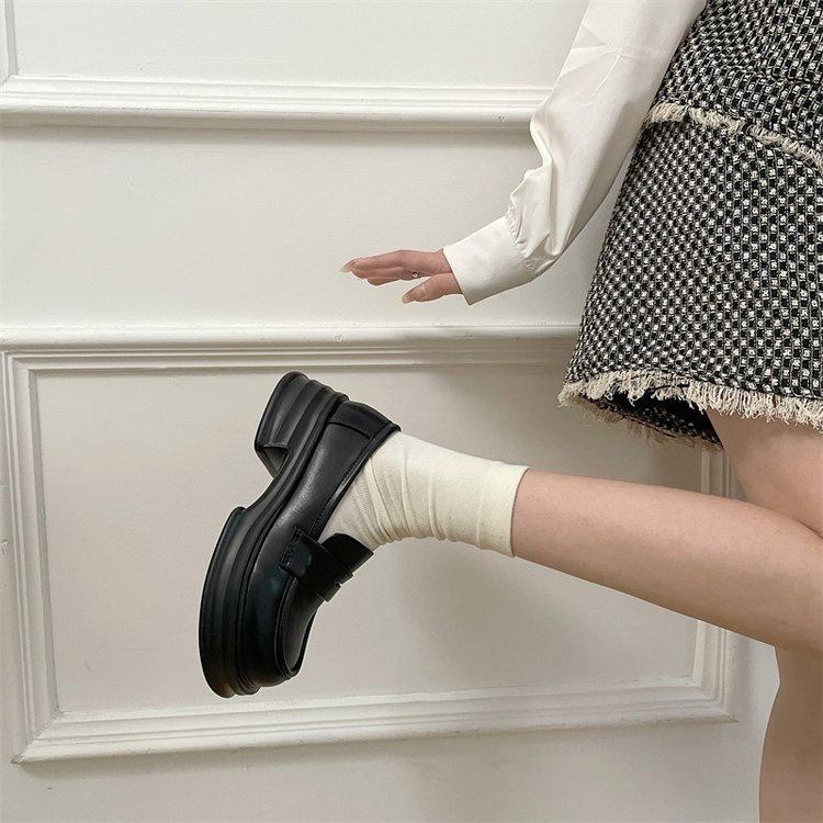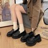 Mocasines de Plataforma Negros de Otoño 2025 para Mujer Nuevo Estilo Británico Aumento de Altura Versátiles Zapatos Pequeños de Cuero Slip-on Zapatos de Suela Blanda