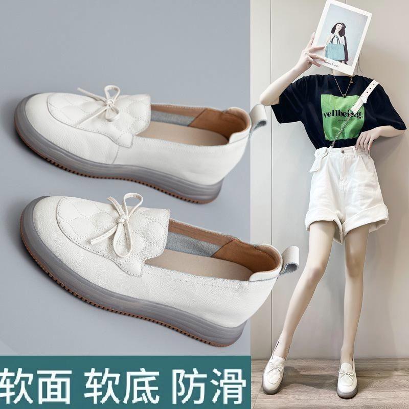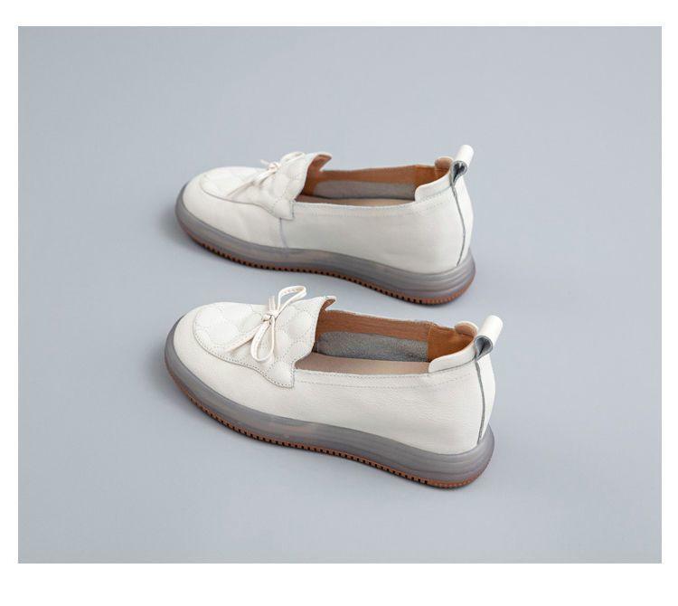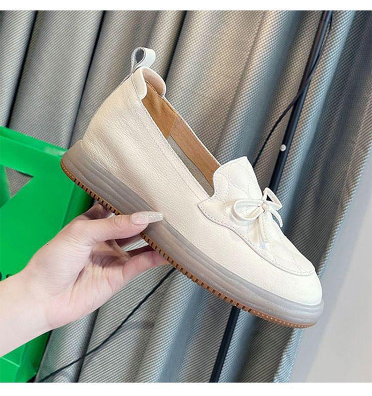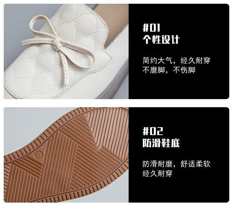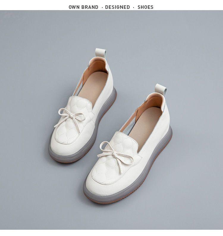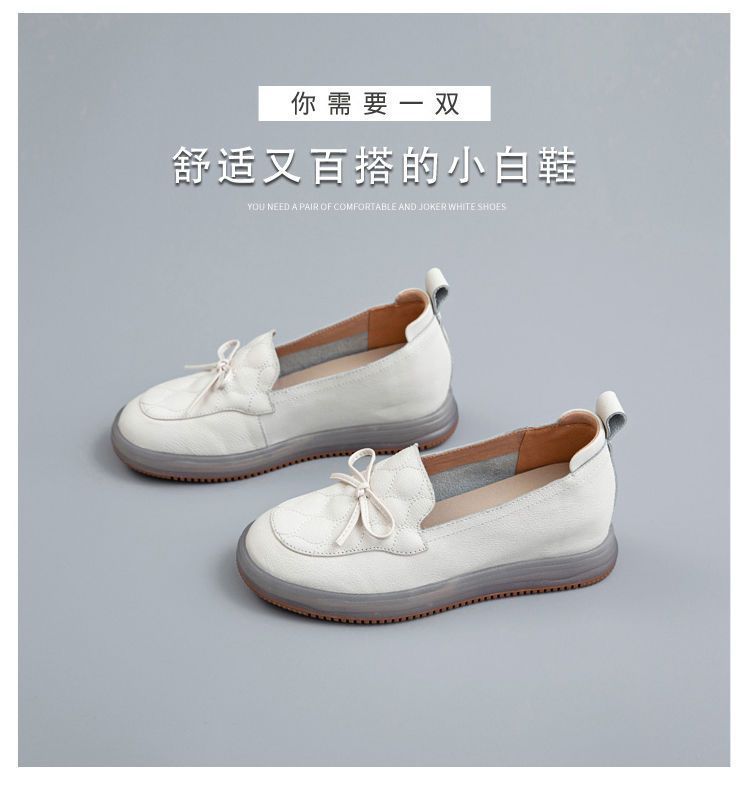 Zapatos de mujer Manbu de cuero suave con aumento de altura 2025 nuevos suela de tendón de vaca suela suave sin cordones versátiles casuales adelgazantes zapatos blancos pequeños
