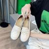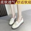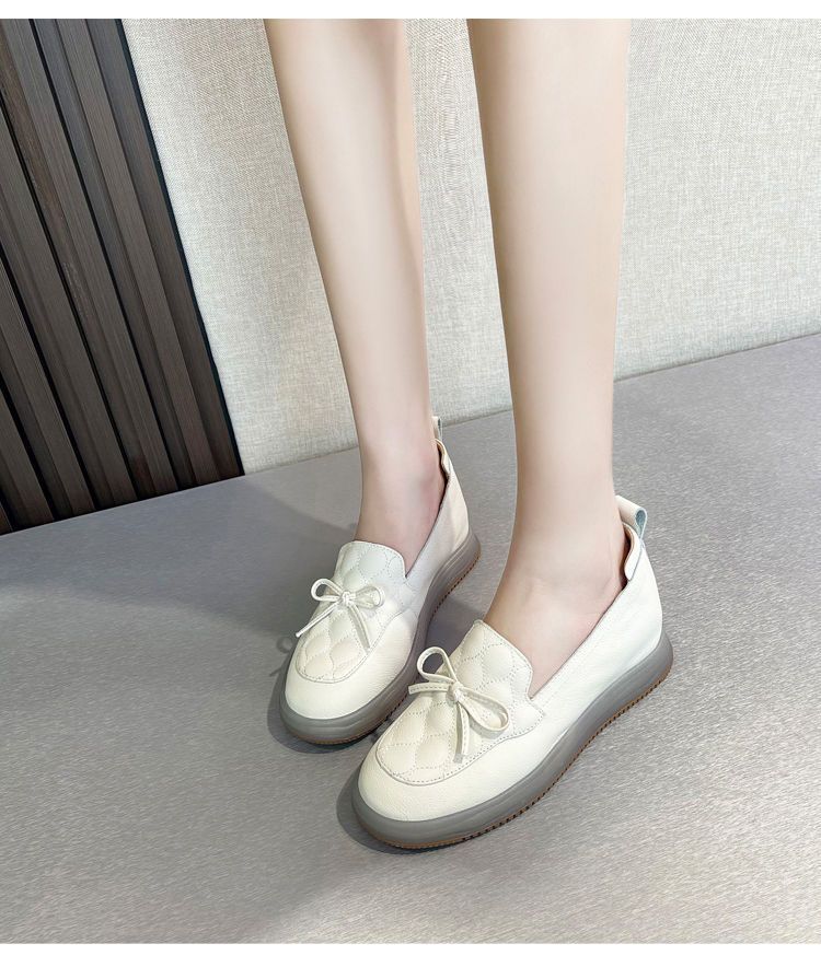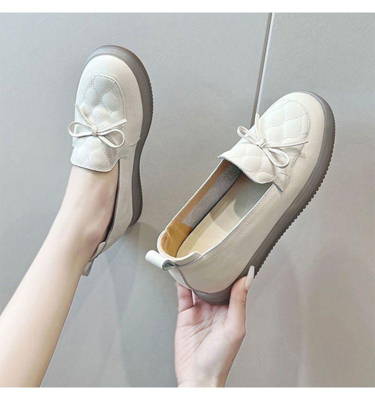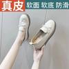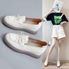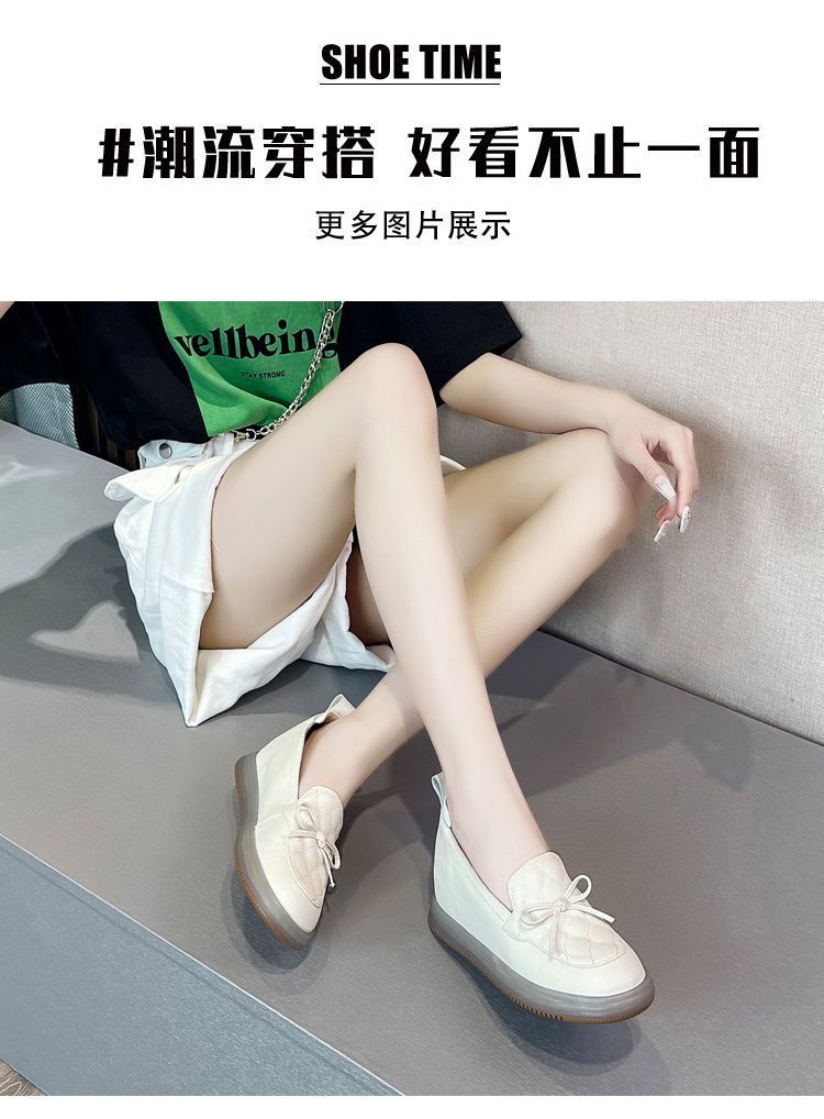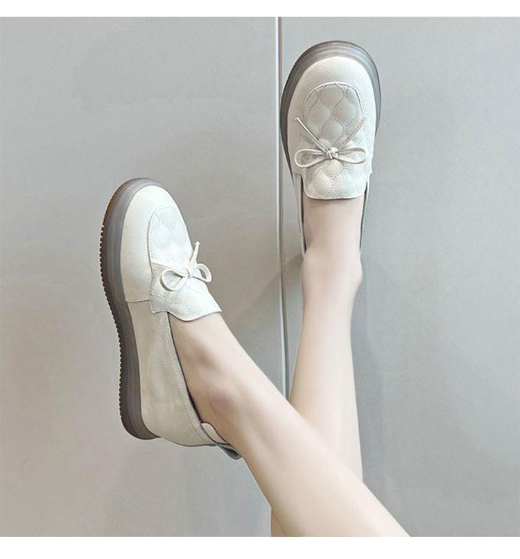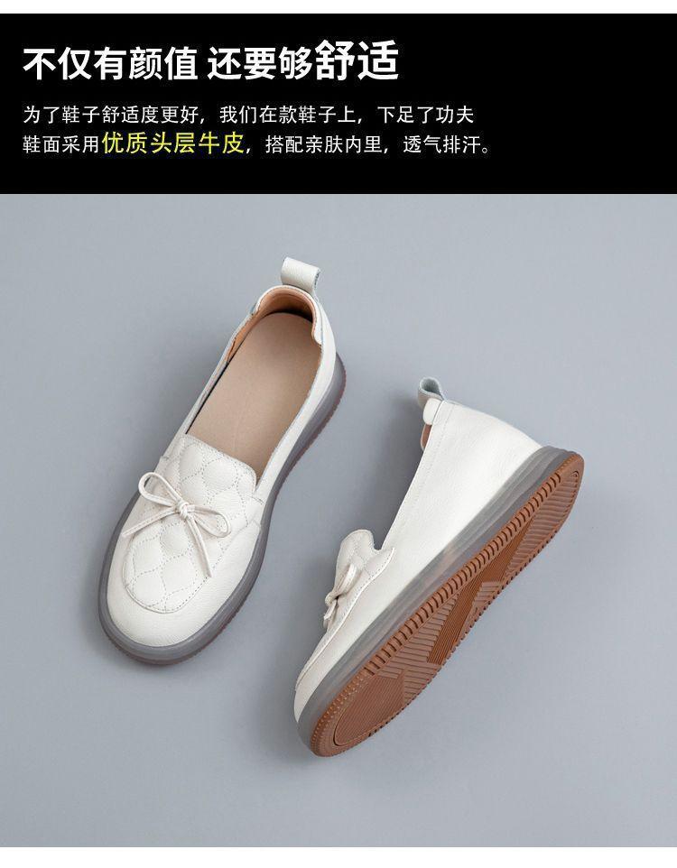 Zapatos de mujer Manbu de cuero suave con aumento de altura 2025 nuevos suela de tendón de vaca suela suave sin cordones versátiles casuales adelgazantes zapatos blancos pequeños