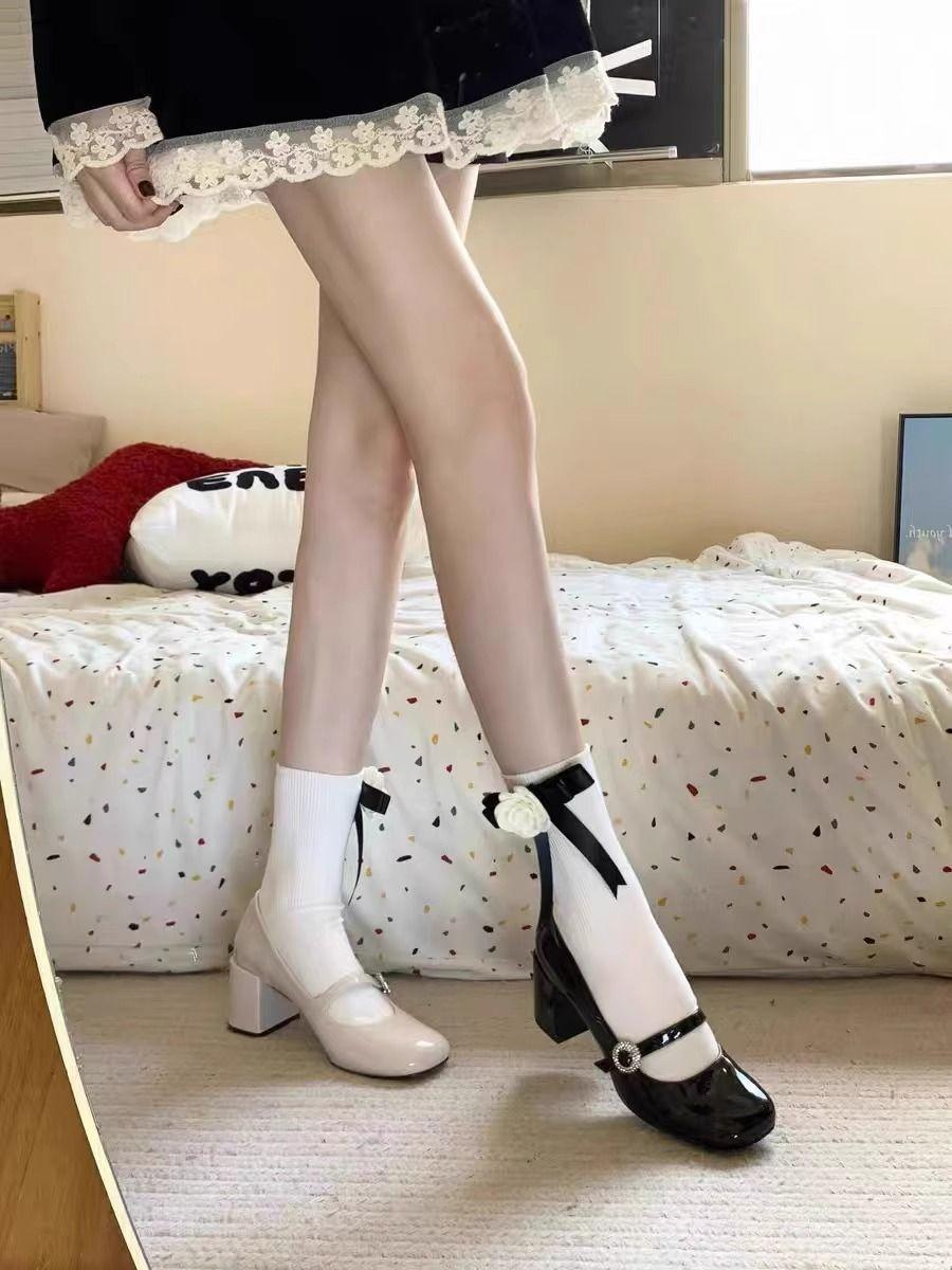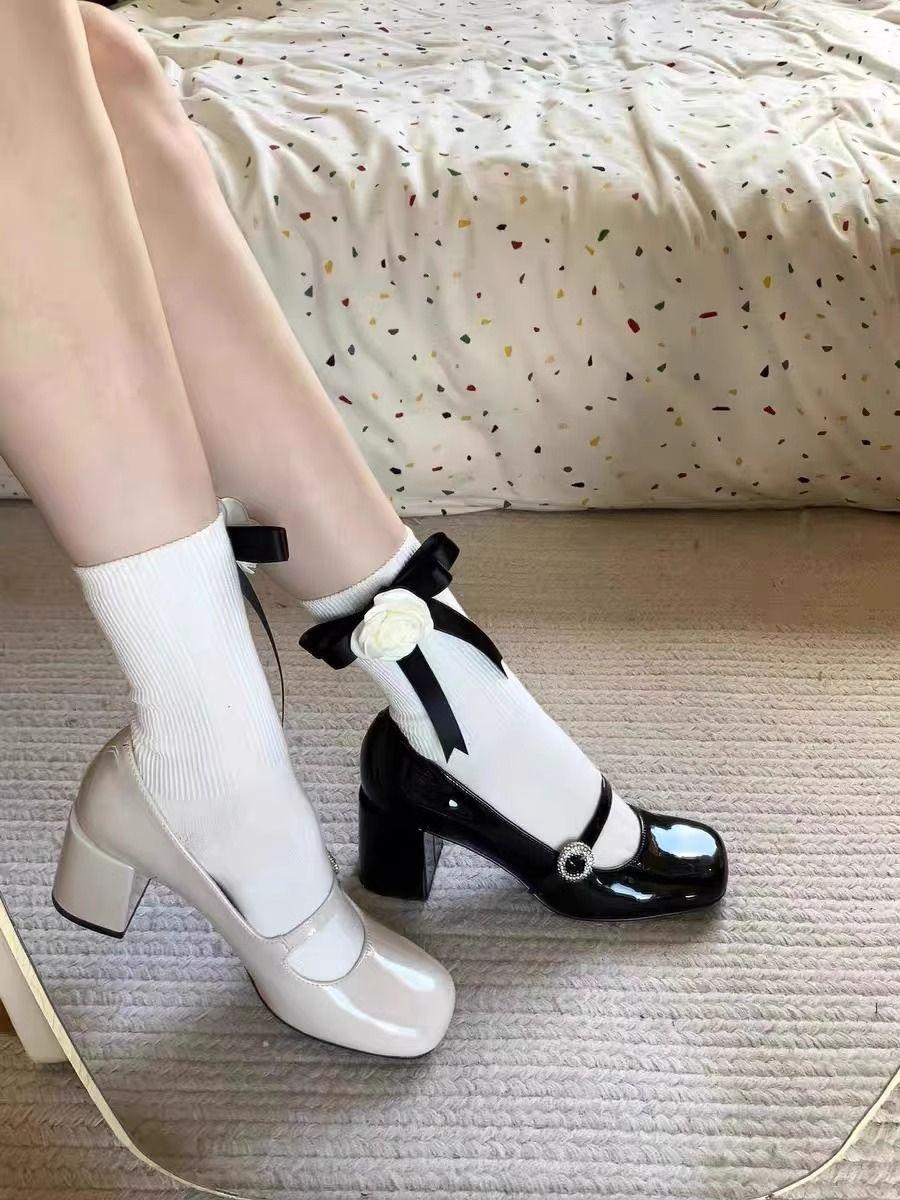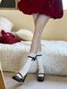 Zapatos de tacón alto Mary Jane negros de corte bajo con una sola tira y tacón grueso para mujer, nuevos de primavera/verano 2025, temperamento nicho francés, zapatos individuales