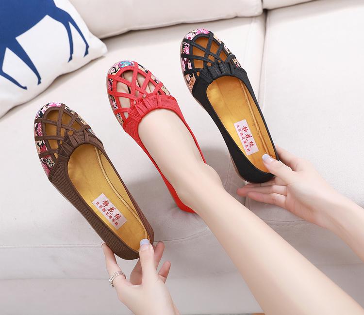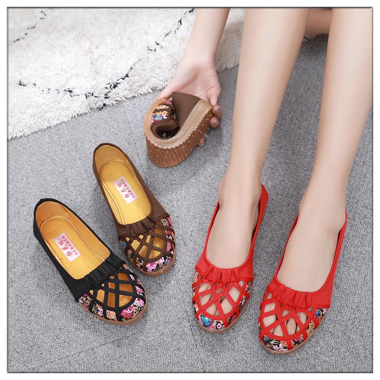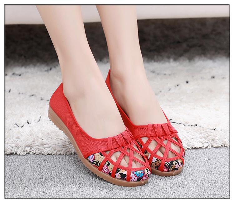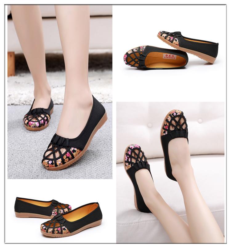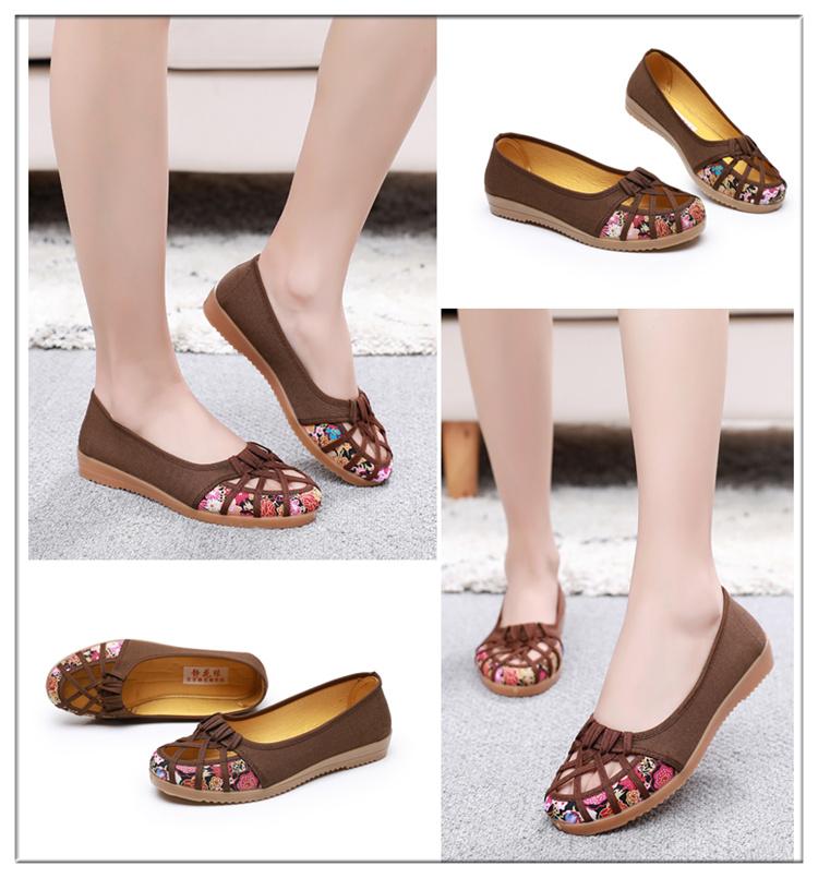 Zapatos de Tela de Pekín Antiguos Zapatos de Malla Huecos de Verano de Nuevo Estilo para Mujeres de Mediana Edad y Ancianas Zapatos de Mujer sin Cordones de Suela Blanda