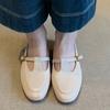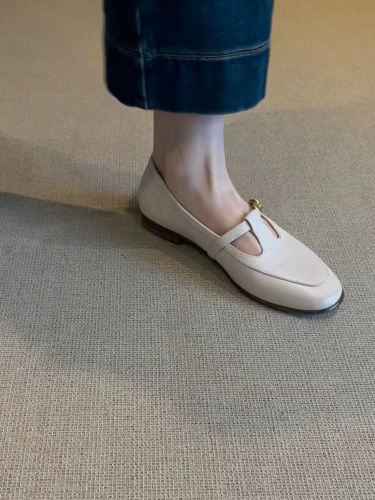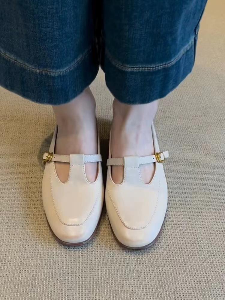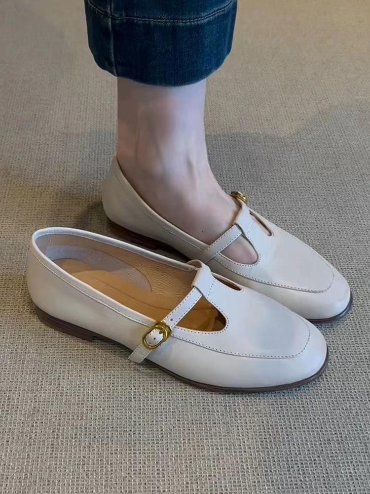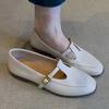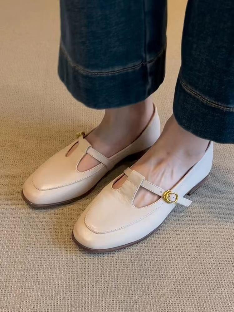 Versión Piel de Oveja 2025 Nuevas Mary Jane Estilo Británico Zapatos Pequeños de Cuero Zapatos Planos Loafers para Mujer con Hebilla en T Combinan con Todo
