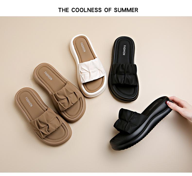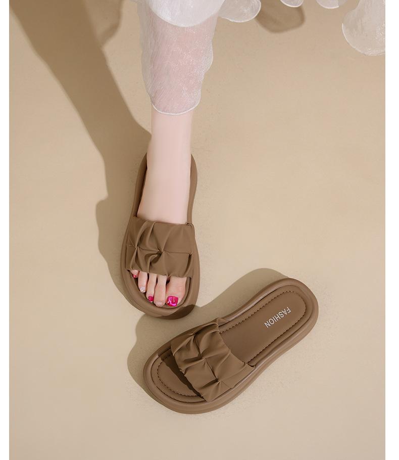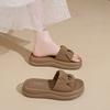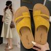 Pantuflas cómodas de suela suave estilo coreano para mujer para usar en exteriores 2025 verano nuevo estilo para combinar con vestidos pantuflas versátiles de una tira pantuflas de playa