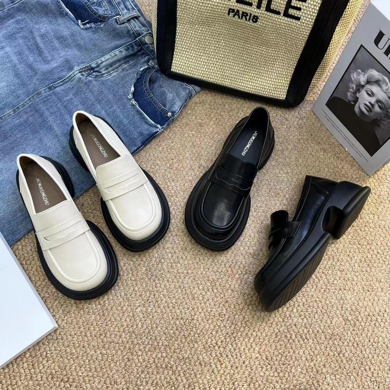 Zapatos Mary Jane franceses pequeños de cuero para mujer verano 2025 nuevos zapatos de mujer de un paso plataforma suela gruesa mocasines zapatos negros