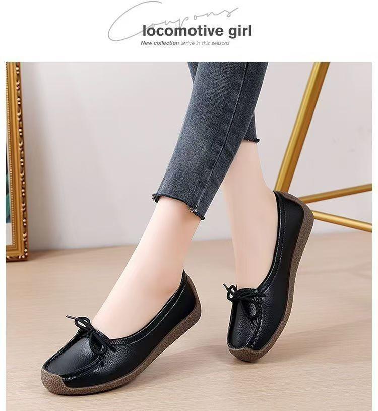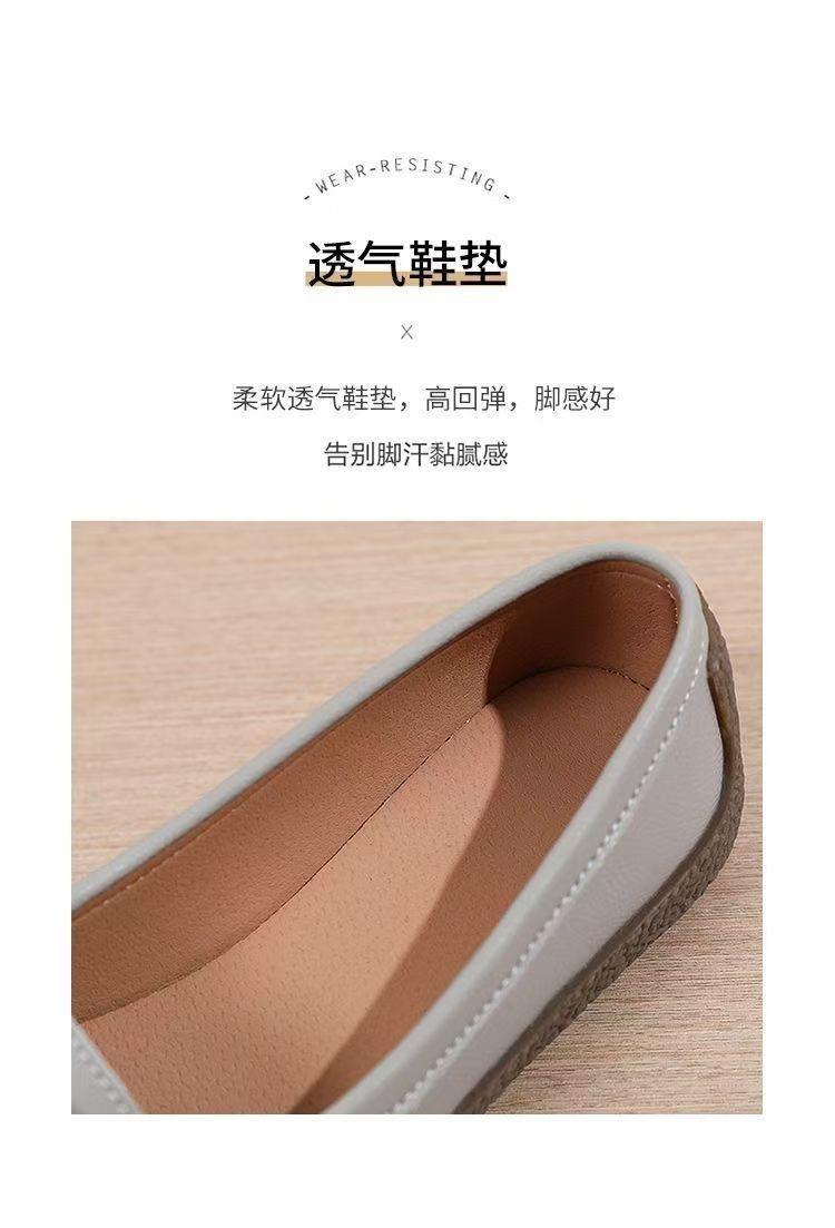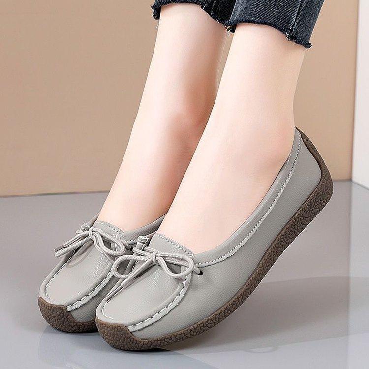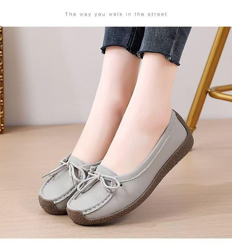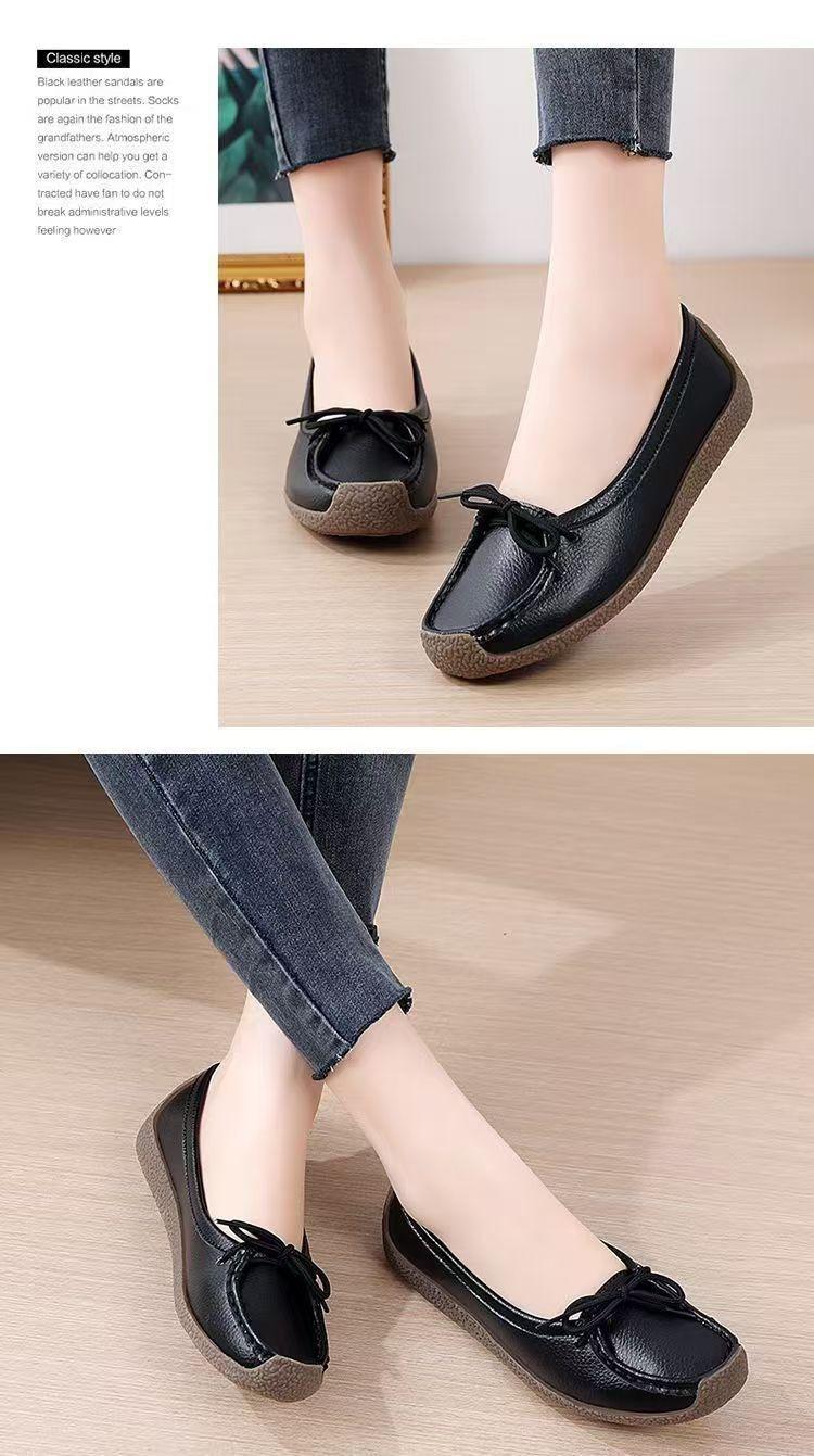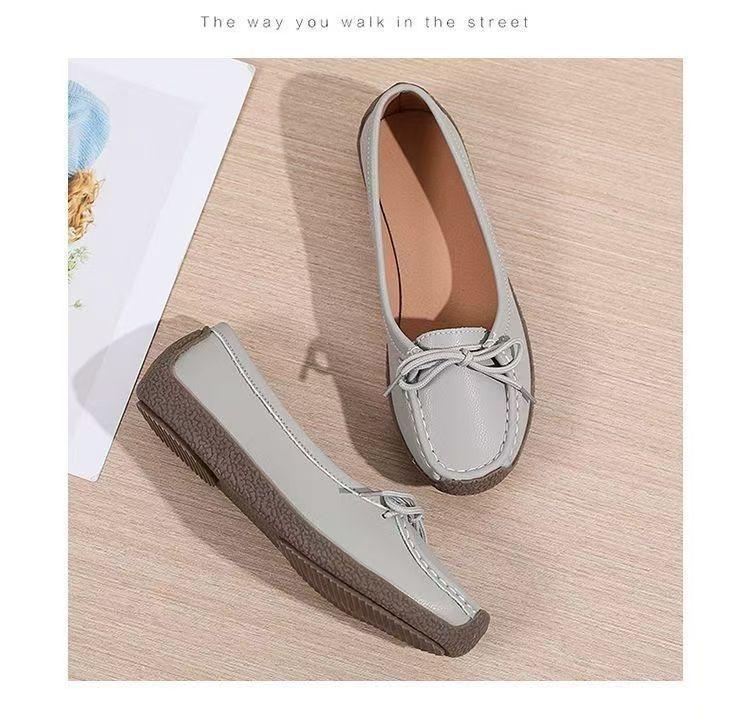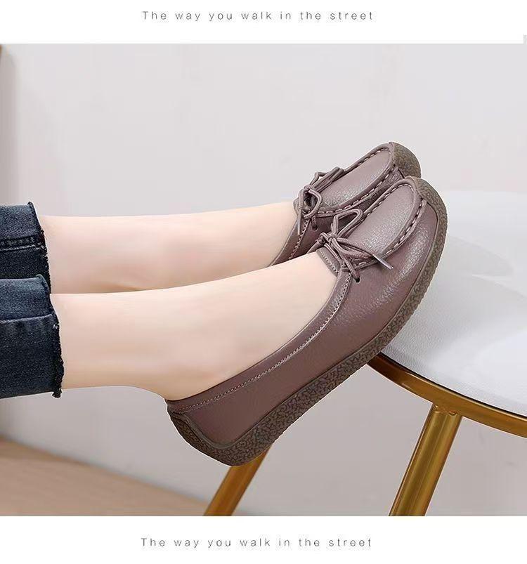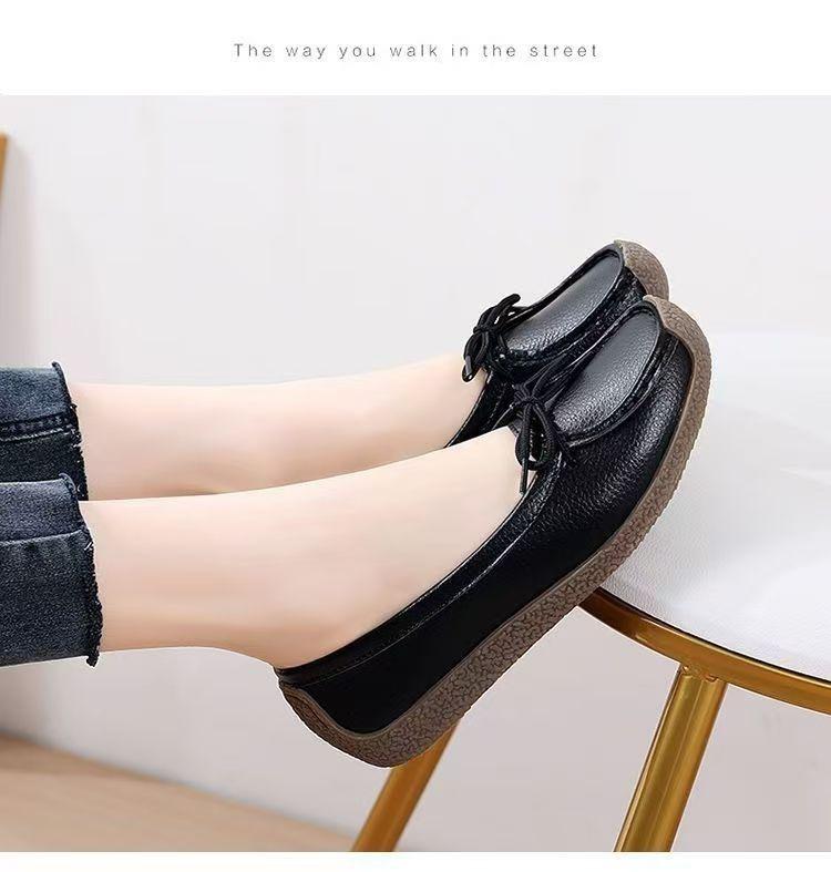Otoño Nuevo Cuero Suave Mediana Edad y Ancianos Plano Zapatos de Mamá Zapatos de Cuero Pequeños de Suela de Tendón para Mujer Cómodos de Suela Suave Zapatos de Abuela Caracol