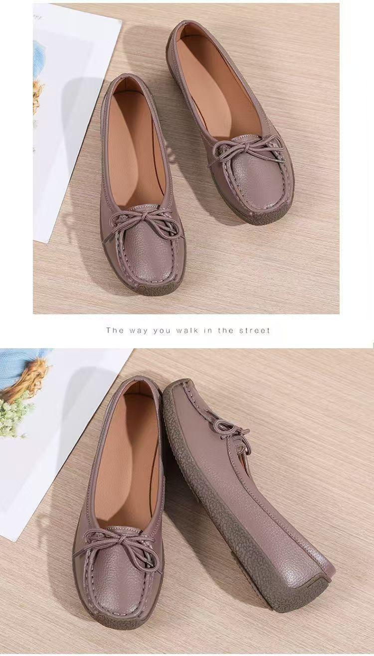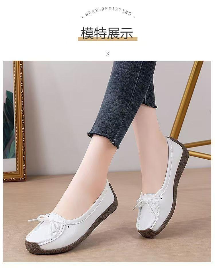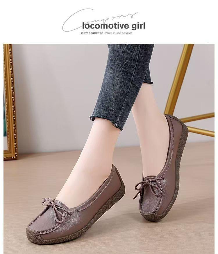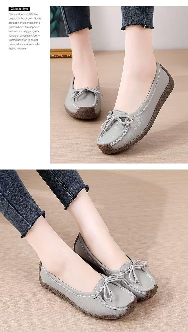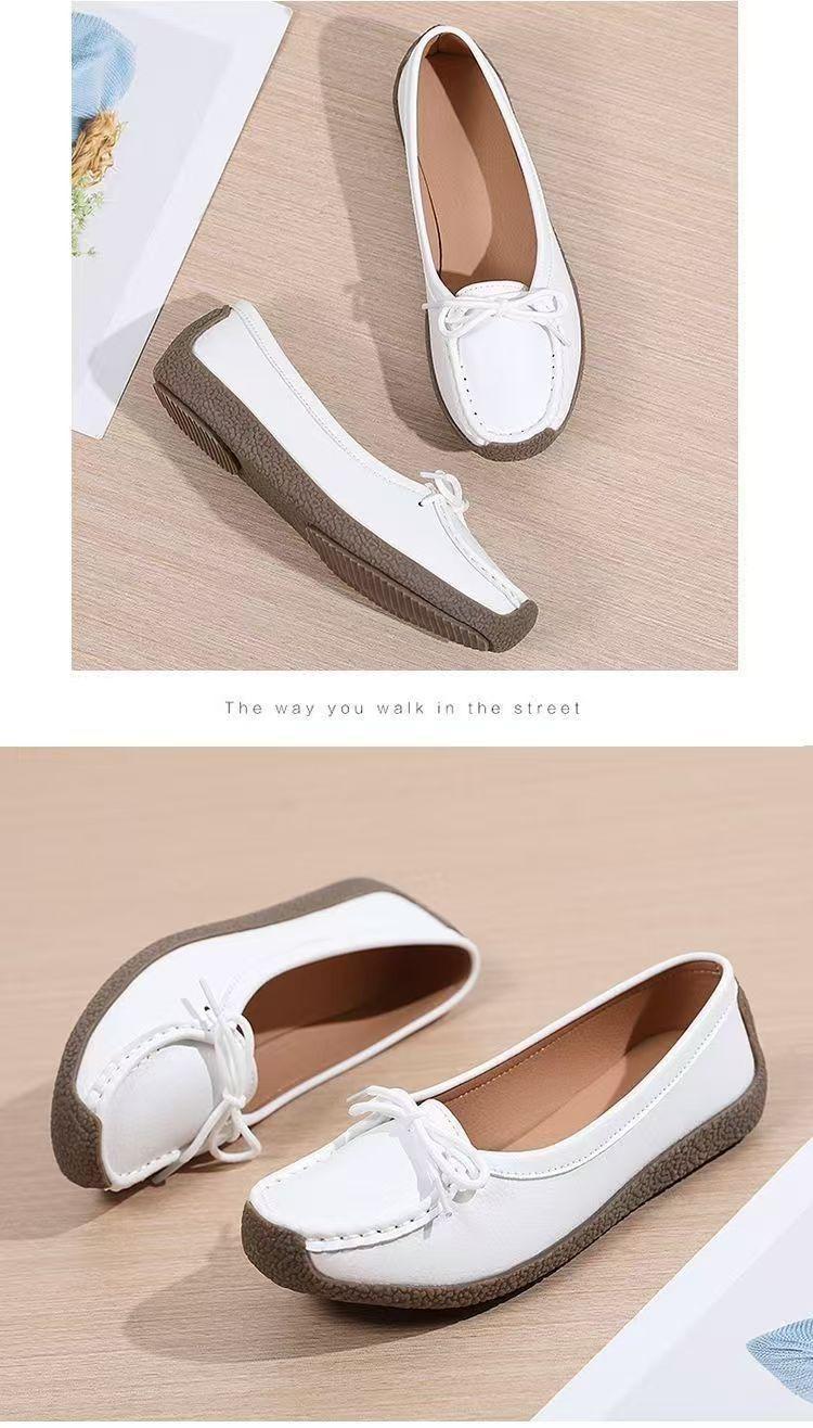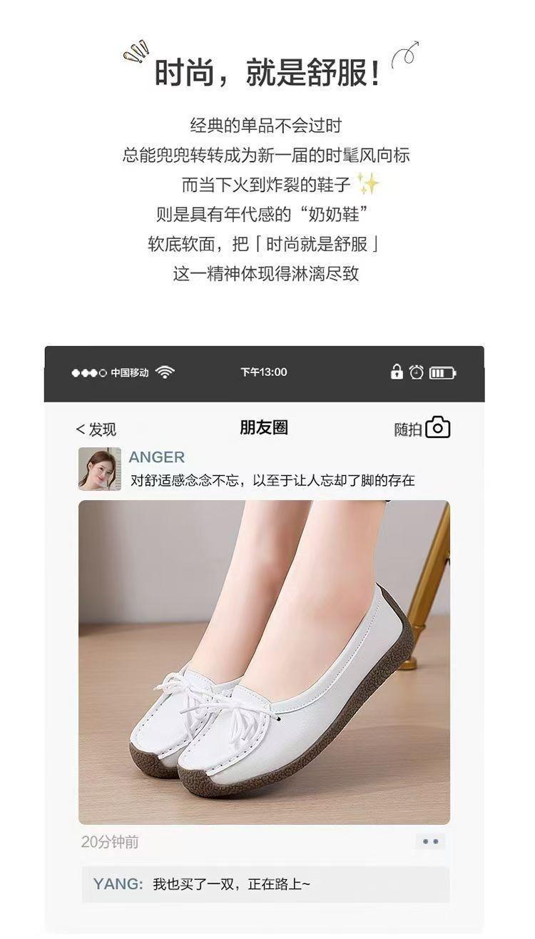 Otoño Nuevo Cuero Suave Mediana Edad y Ancianos Plano Zapatos de Mamá Zapatos de Cuero Pequeños de Suela de Tendón para Mujer Cómodos de Suela Suave Zapatos de Abuela Caracol