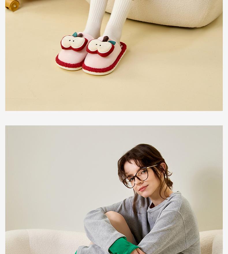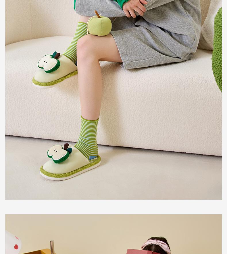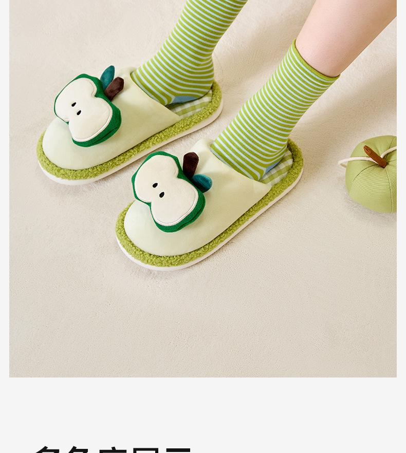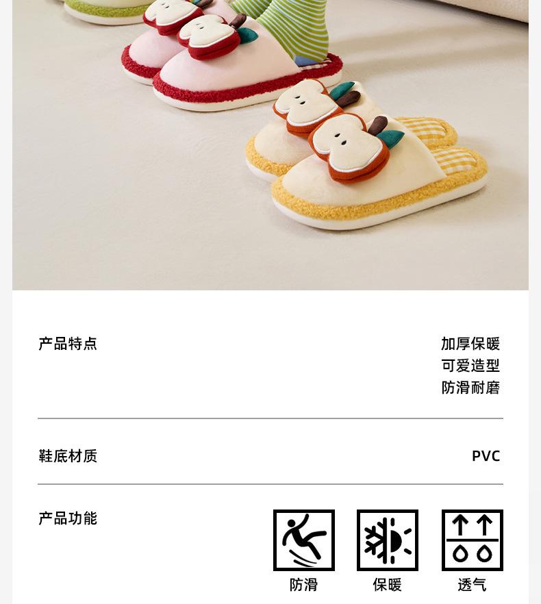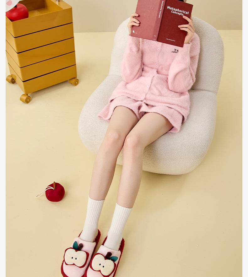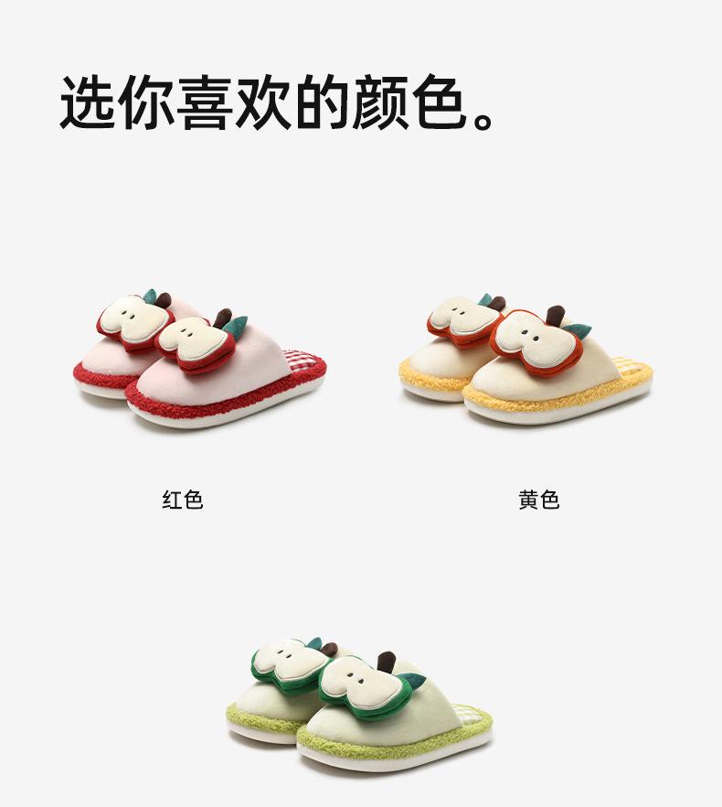Lindas Pantuflas de Algodón de Manzana para Mujer Invierno Interior Antideslizantes para Casa Pantuflas de Felpa Otoño/Invierno para Casa Cálidas de Lana