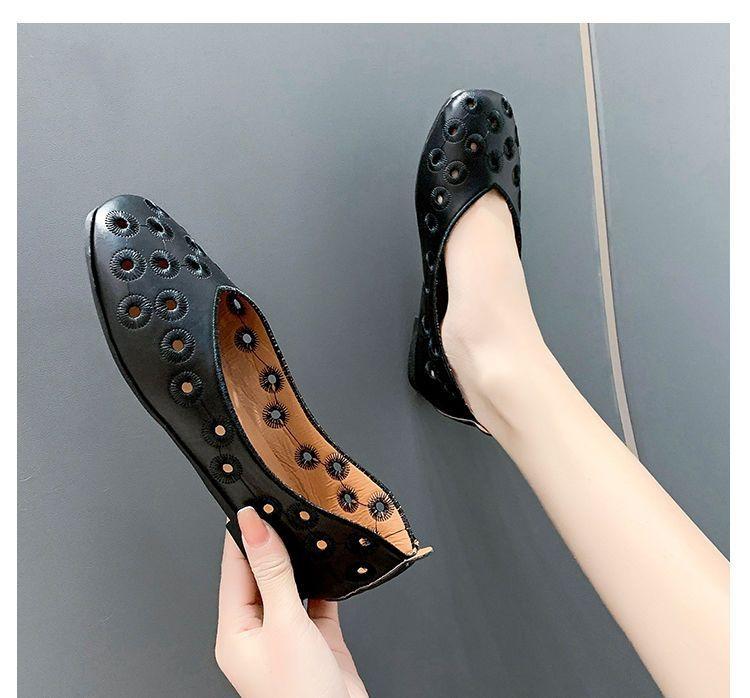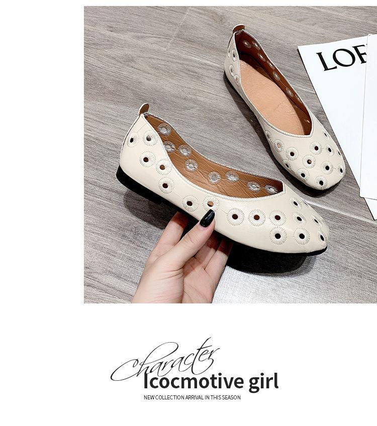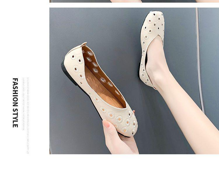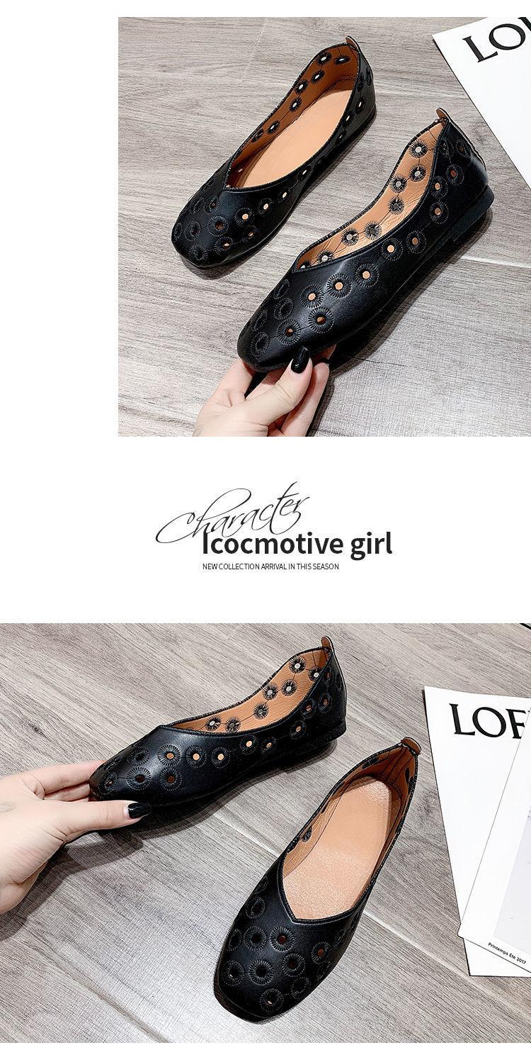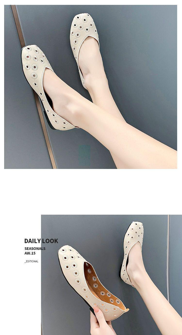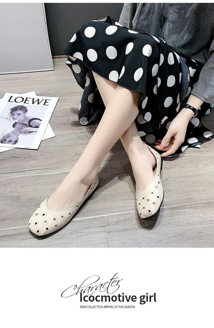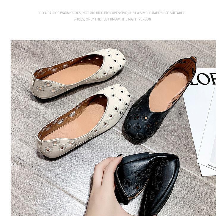 Sandalias de Cuero Genuino de Grulla Nuca Blanca para Mujer Verano Plano Hueco Transpirable Zapatos de Mamá Talla Grande Pies Anchos Mocasines Mujeres Embarazadas