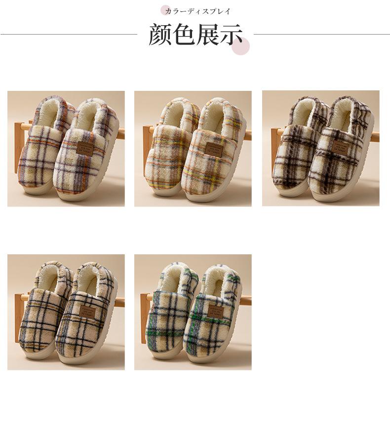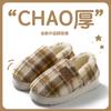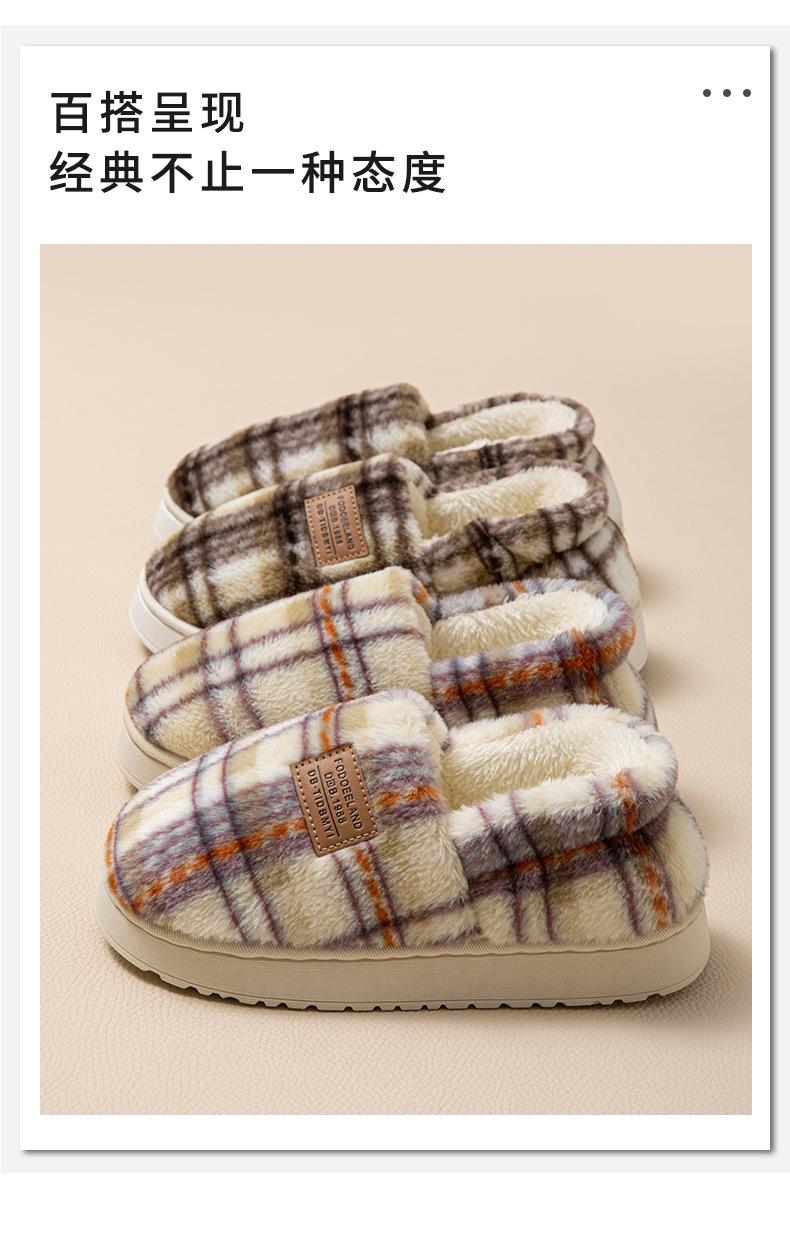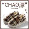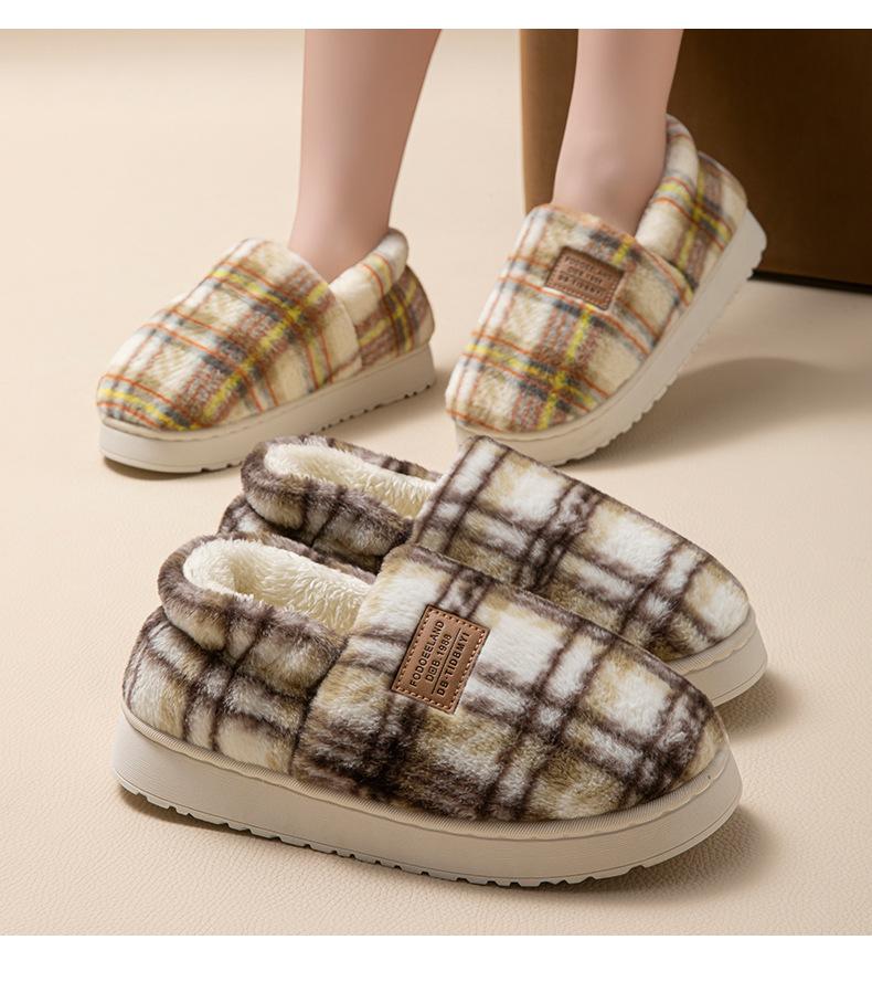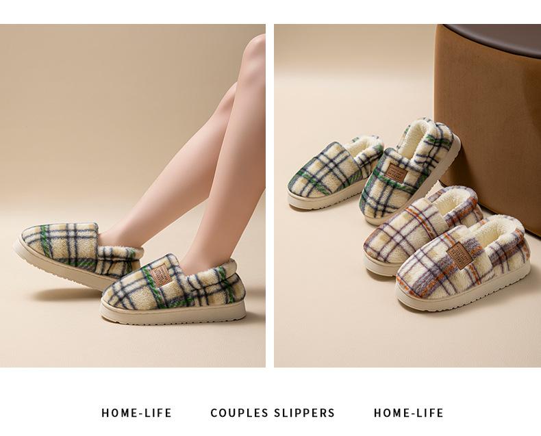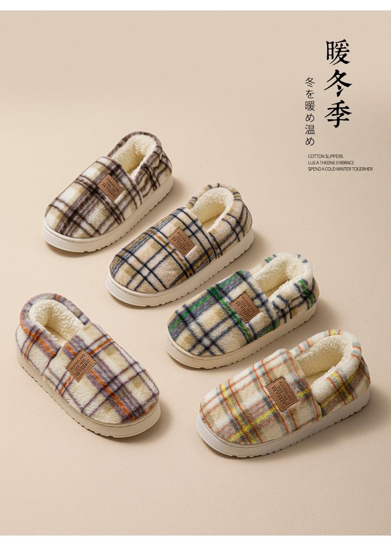 Zapatillas de invierno para casa, suaves y esponjosas, gruesas y cálidas, de algodón a cuadros retro, nuevas zapatillas de algodón para otoño e invierno para mujer