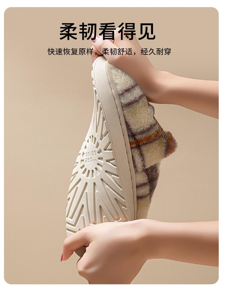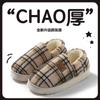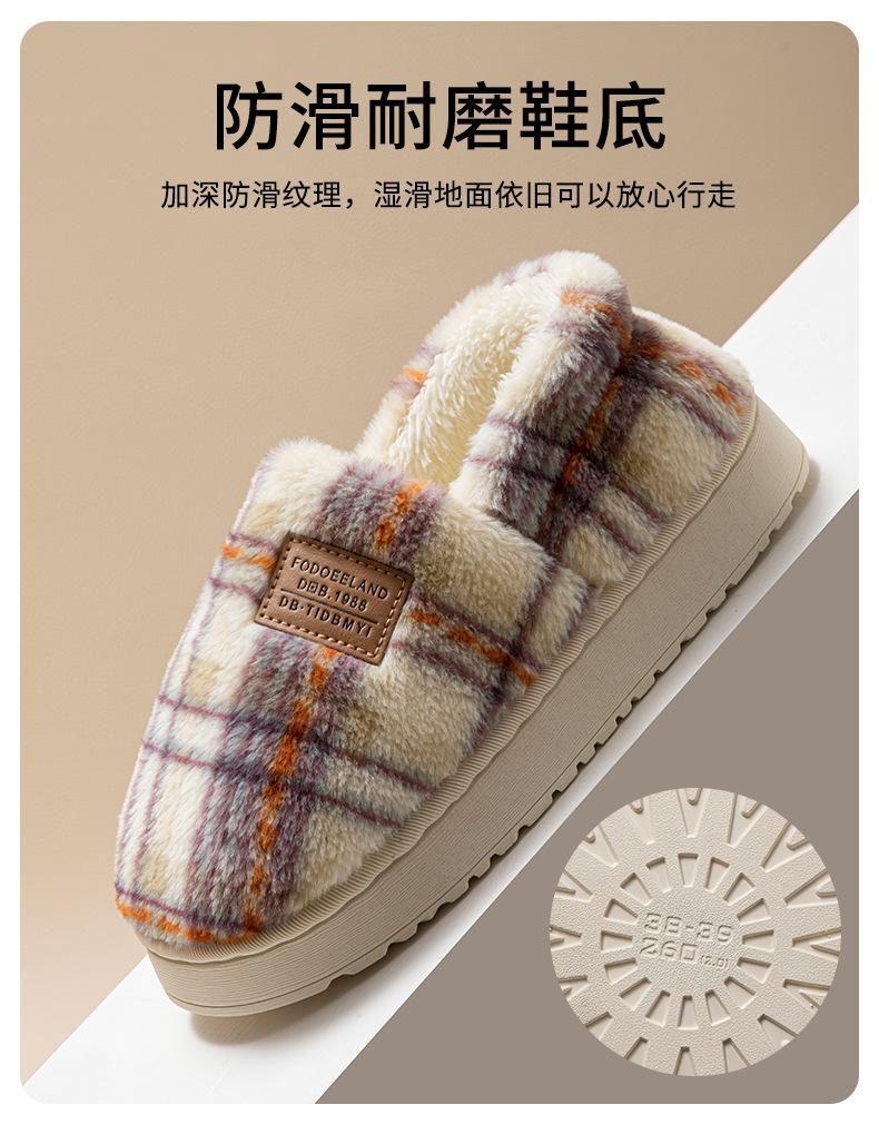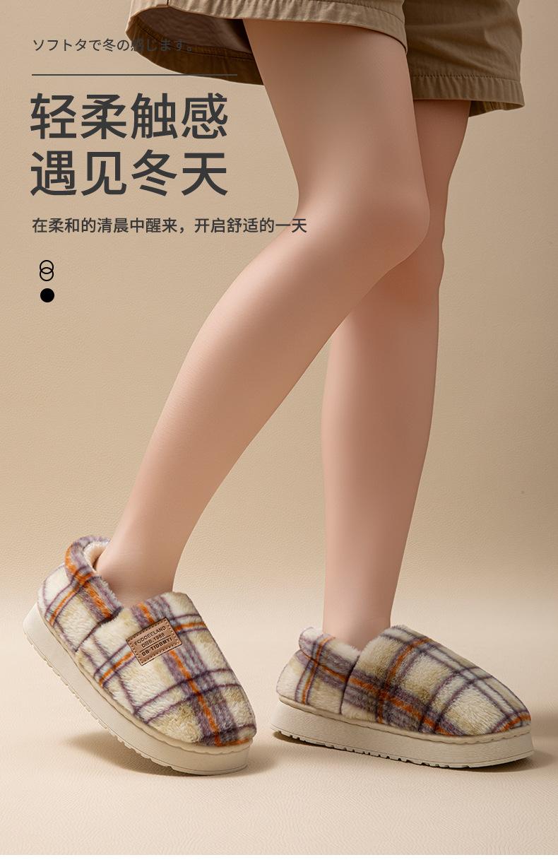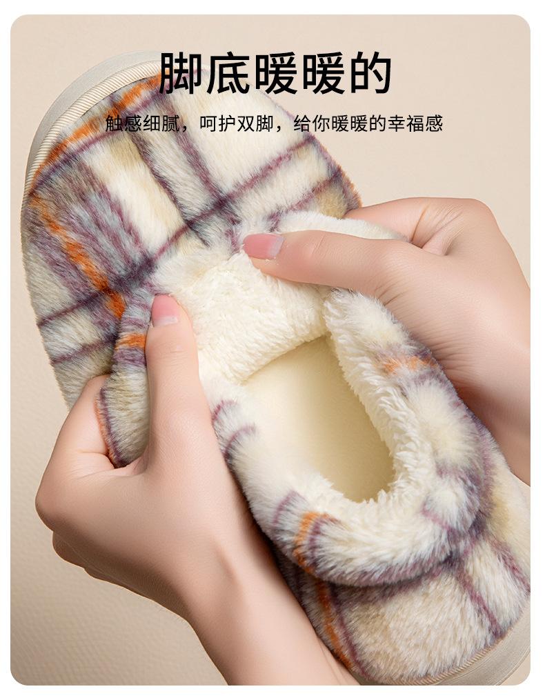 Zapatillas de invierno para casa, suaves y esponjosas, gruesas y cálidas, de algodón a cuadros retro, nuevas zapatillas de algodón para otoño e invierno para mujer