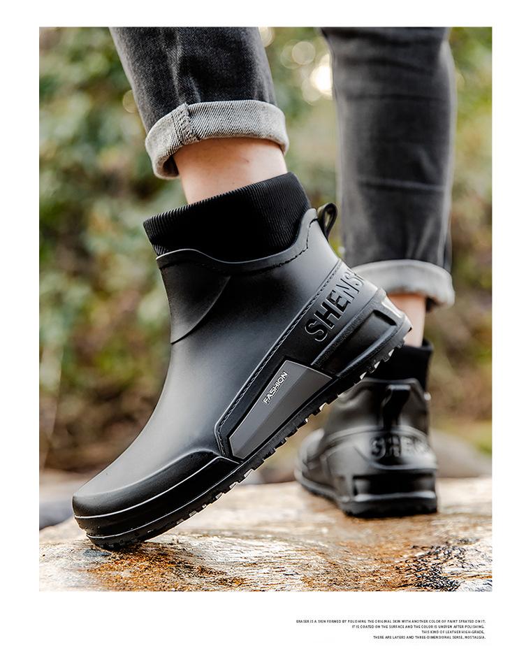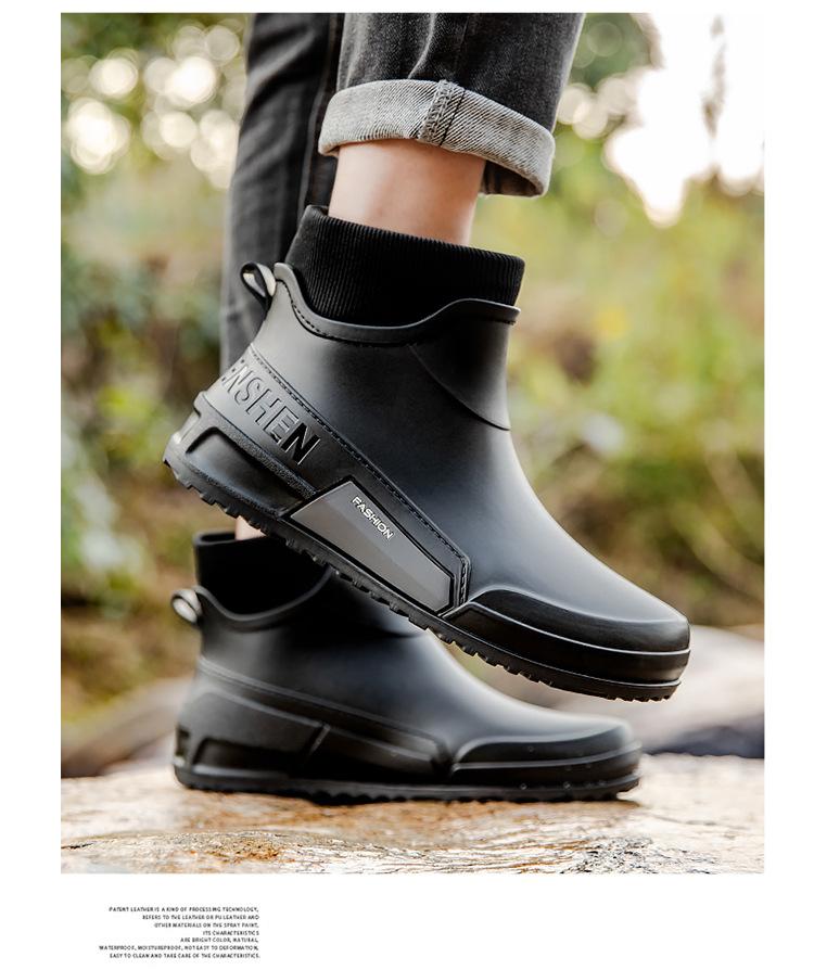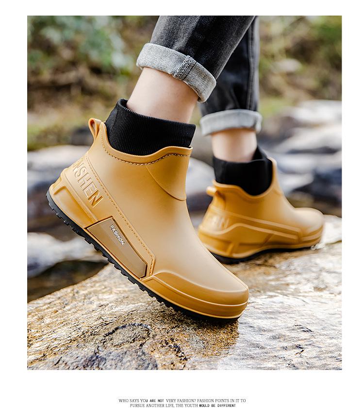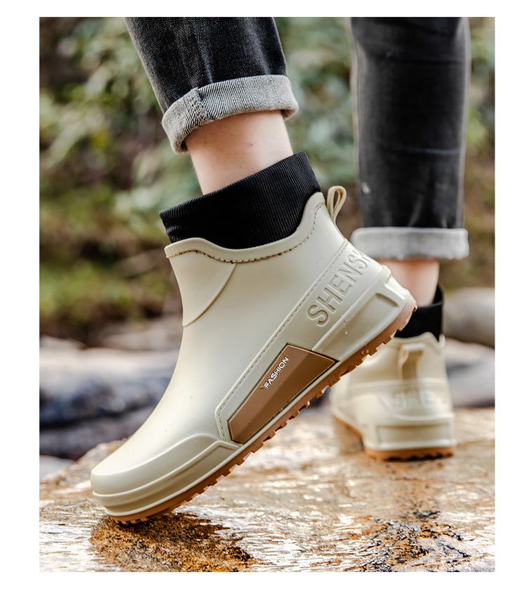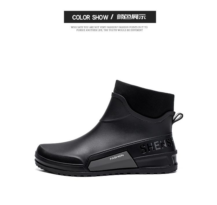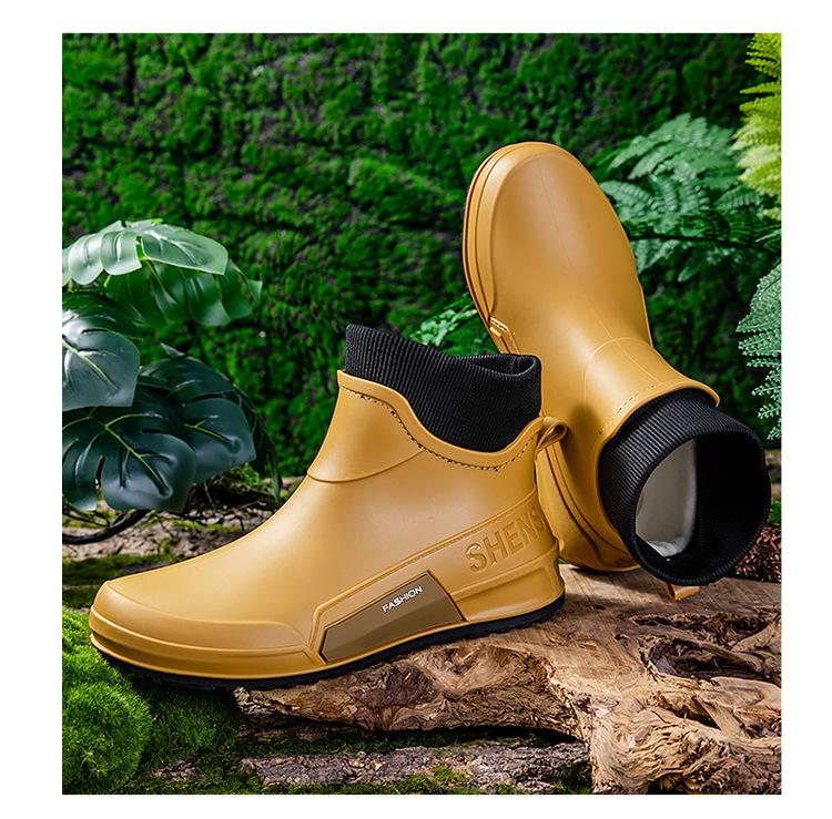 Botas cortas de lluvia de moda transfronteriza para hombre, uso versátil, para pareja, zapatos de agua, zapatos de goma para cocina, impermeables, zapatos para lavado de autos, botas de lluvia para mujer