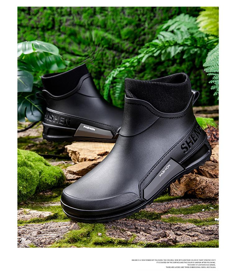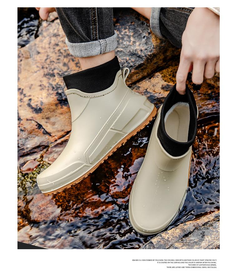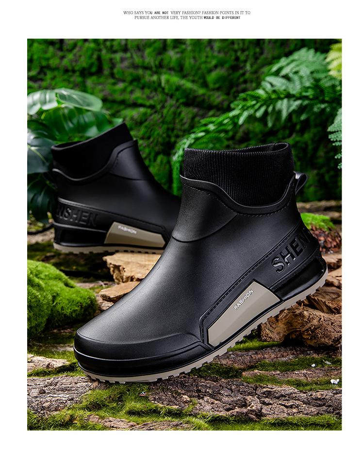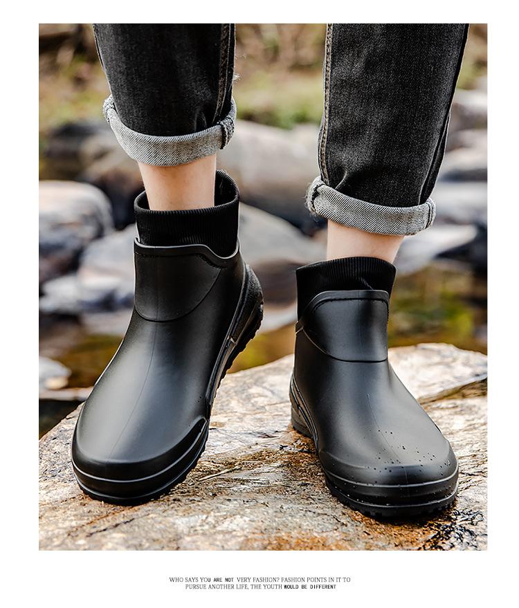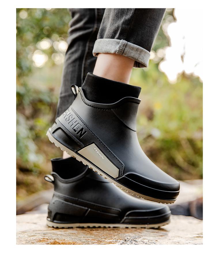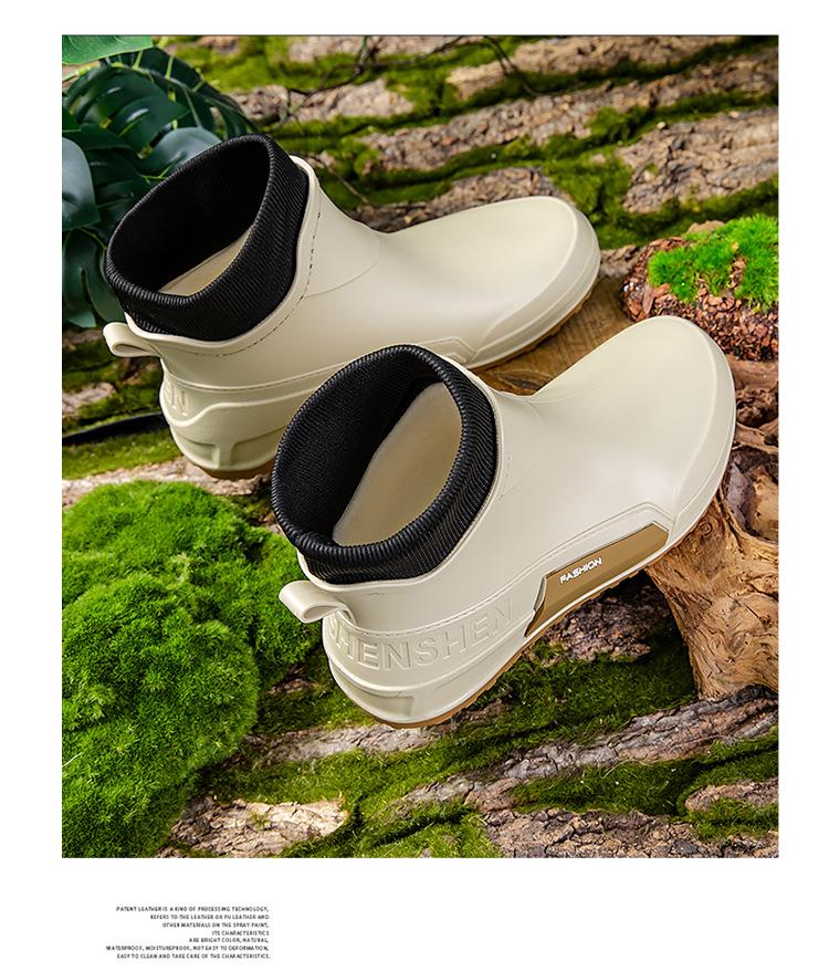 Botas cortas de lluvia de moda transfronteriza para hombre, uso versátil, para pareja, zapatos de agua, zapatos de goma para cocina, impermeables, zapatos para lavado de autos, botas de lluvia para mujer