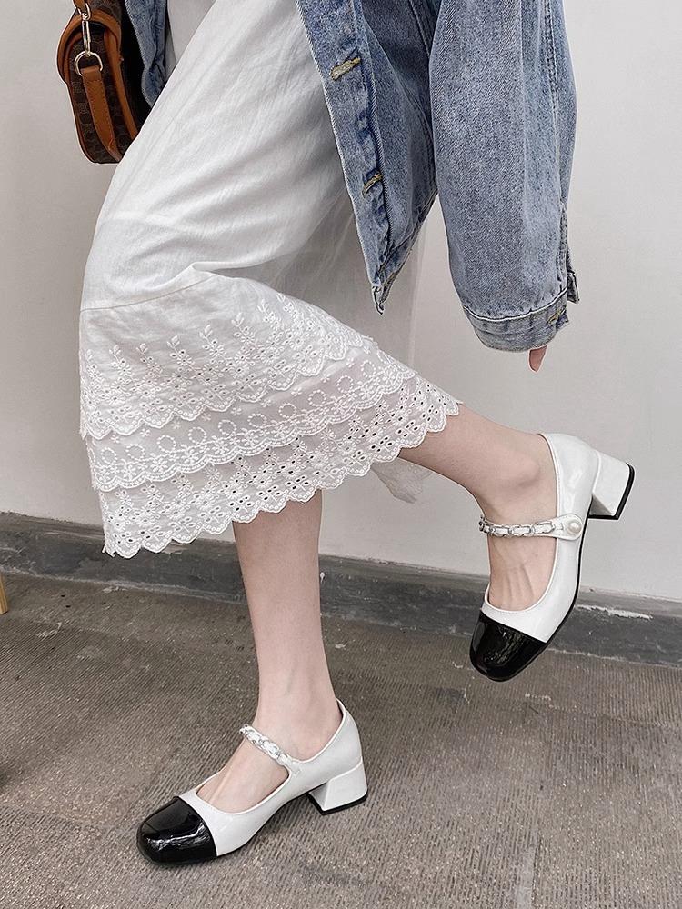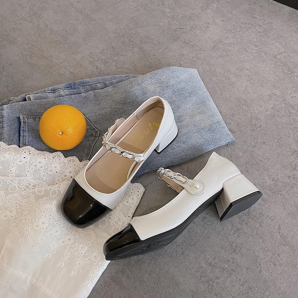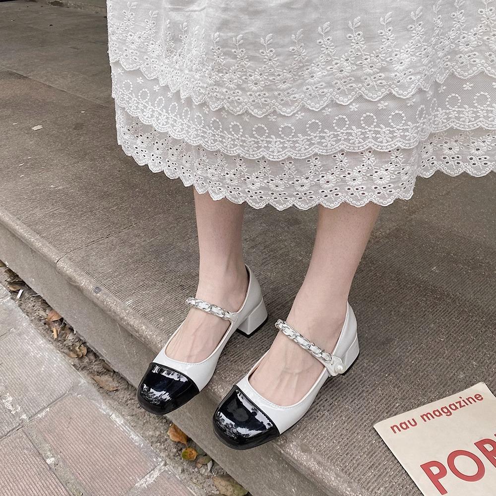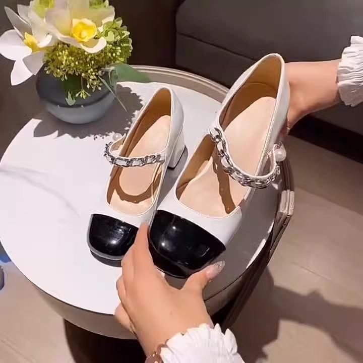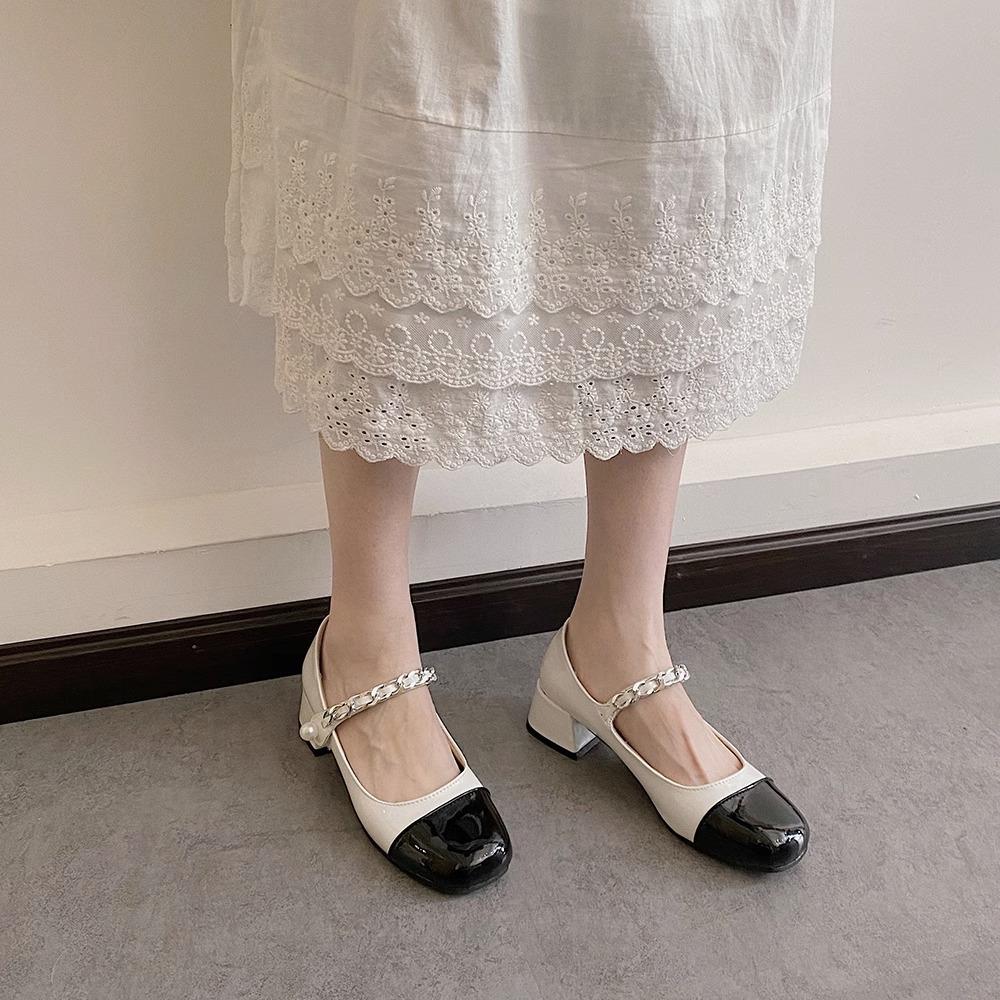 Zapatos Retro Mary Jane 2025 Primavera Nuevo Estilo Pequeño Fragante Zapatos Pequeños de Cuero Francés Zapatos de Tacón Grueso para Mujer Zapatos de Salón para Mujer