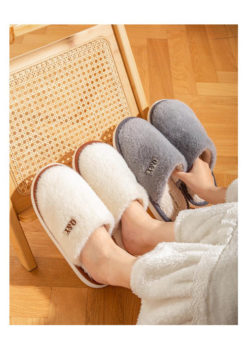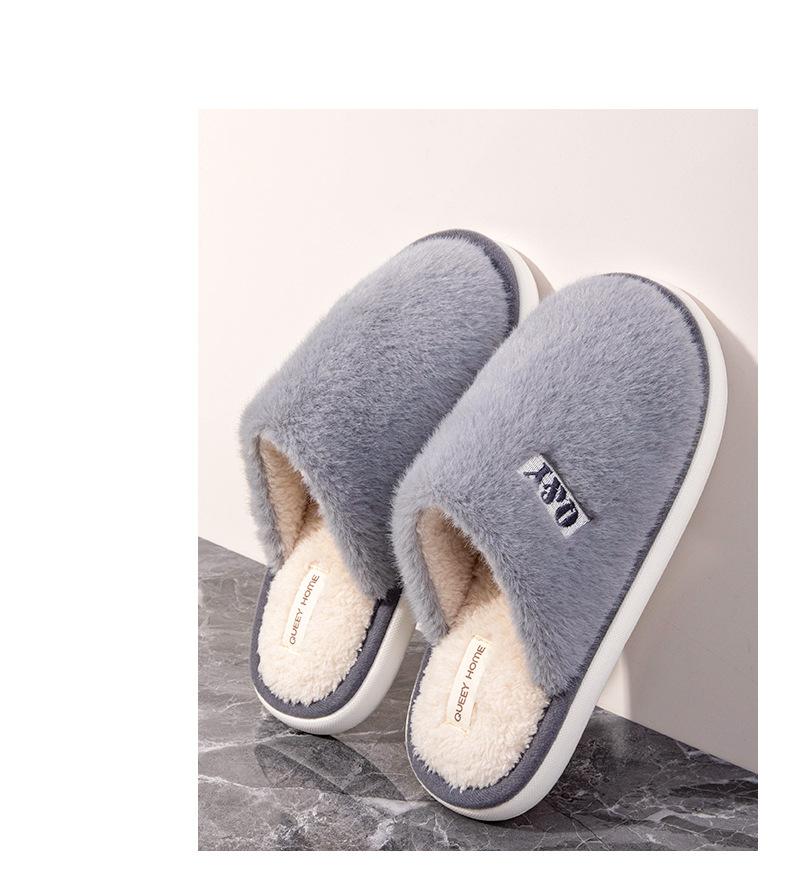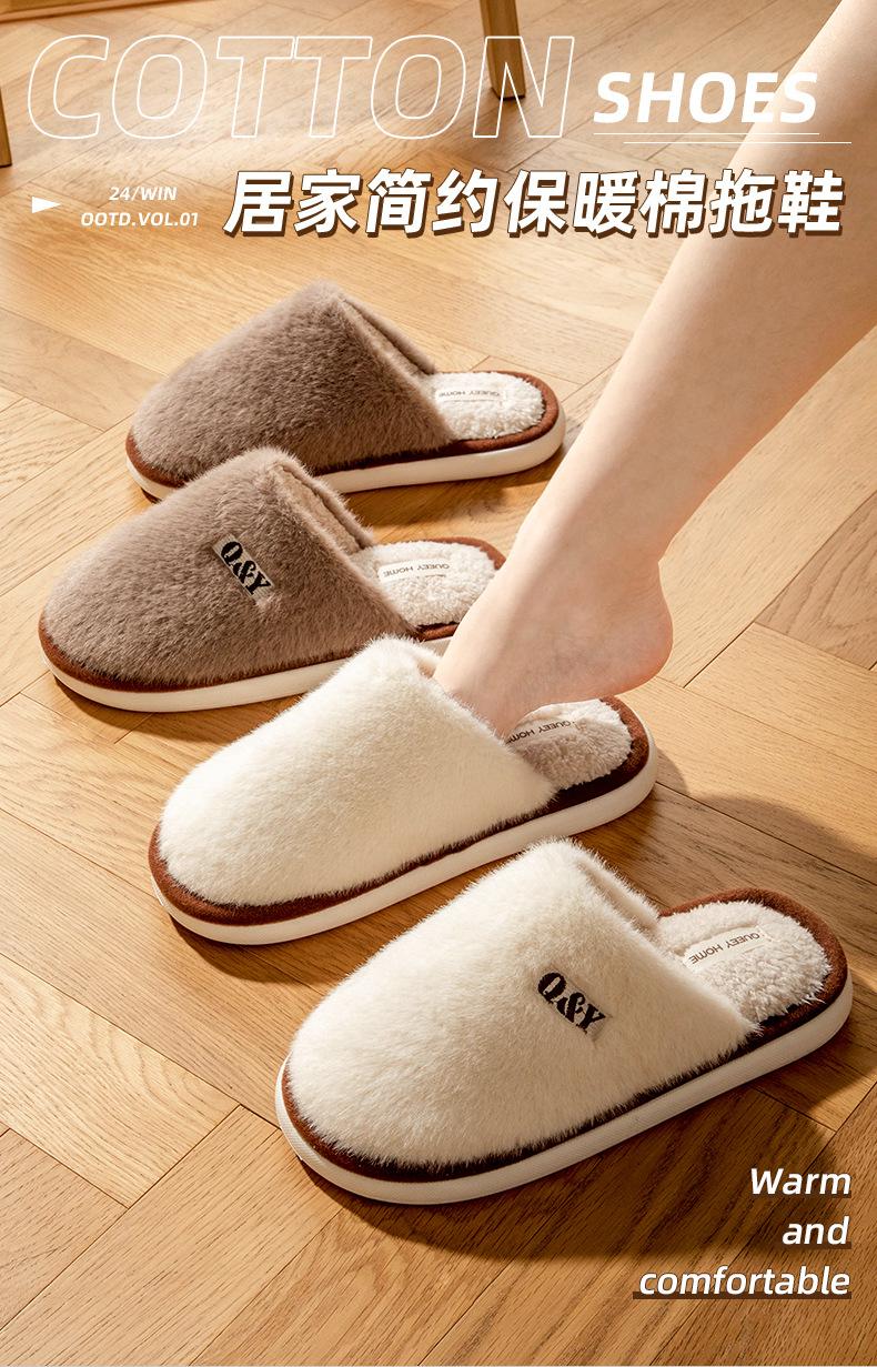 Pantuflas de Algodón Cálido de Felpa para Mujer Invierno 2025 Nuevo Estilo Interior Hogar Sensación de Pisar Mierda Suela Gruesa Antideslizante Pantuflas de Algodón de Punta Cerrada para Hombre