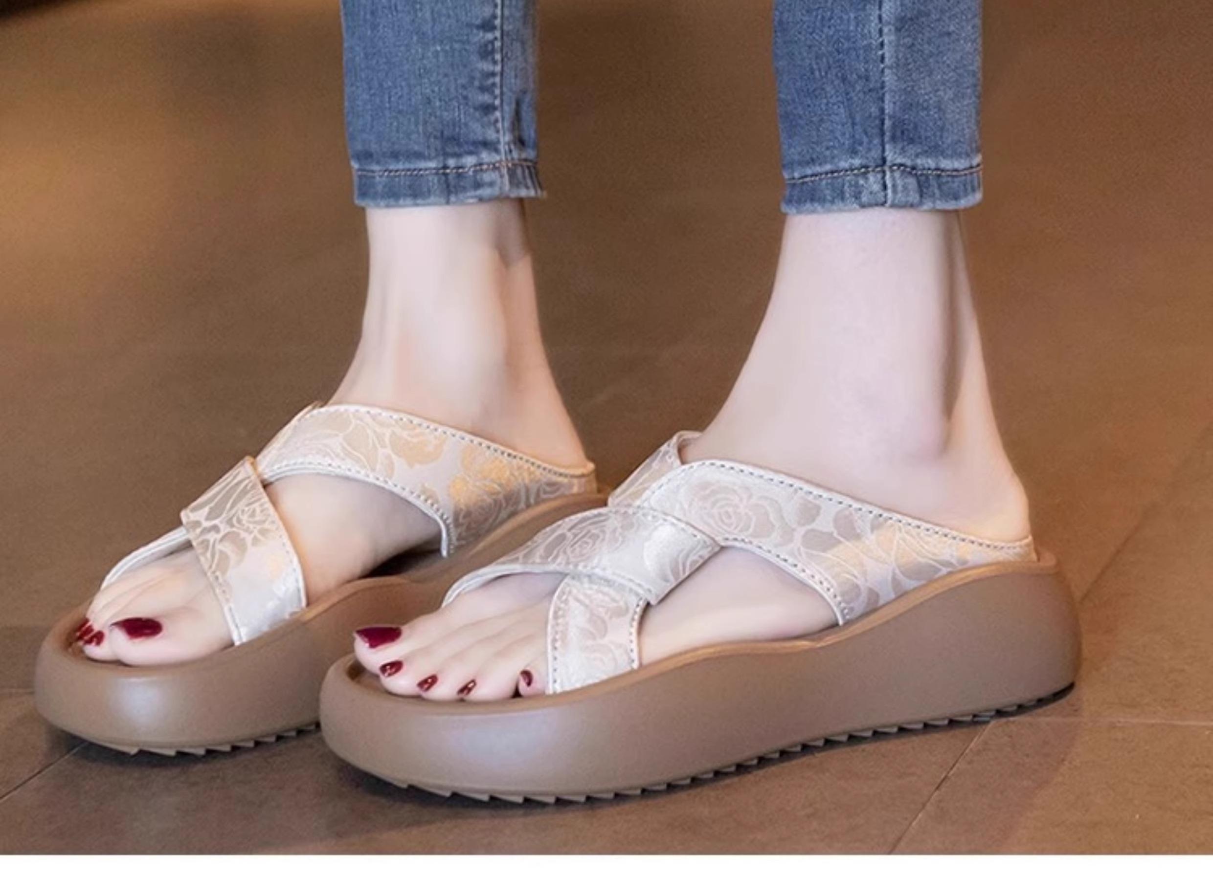 Sandalias para Verano para Mujer para Exterior 2025 Nuevo Estilo de Suela Gruesa Casual Playa para Gente Perezosa Zapatillas de Moda para Mujeres Embarazadas
