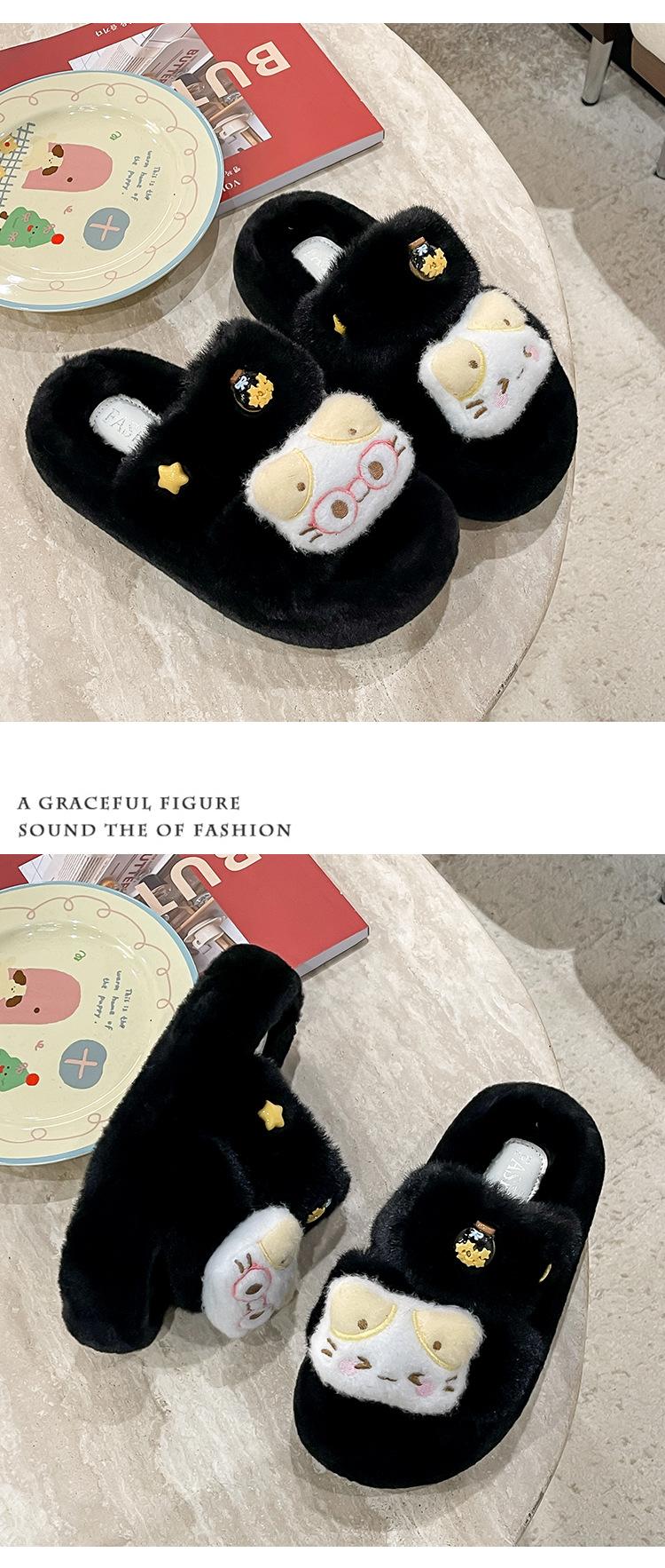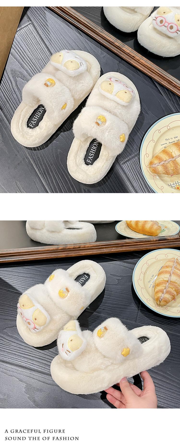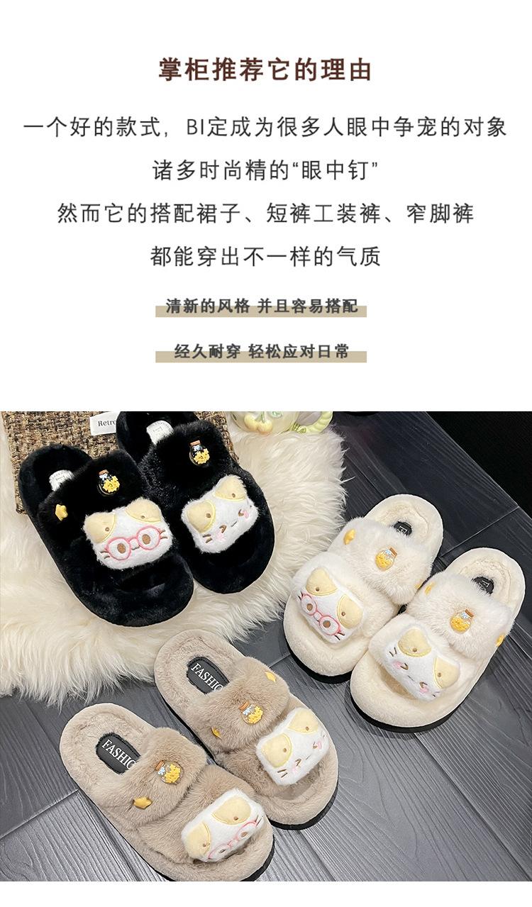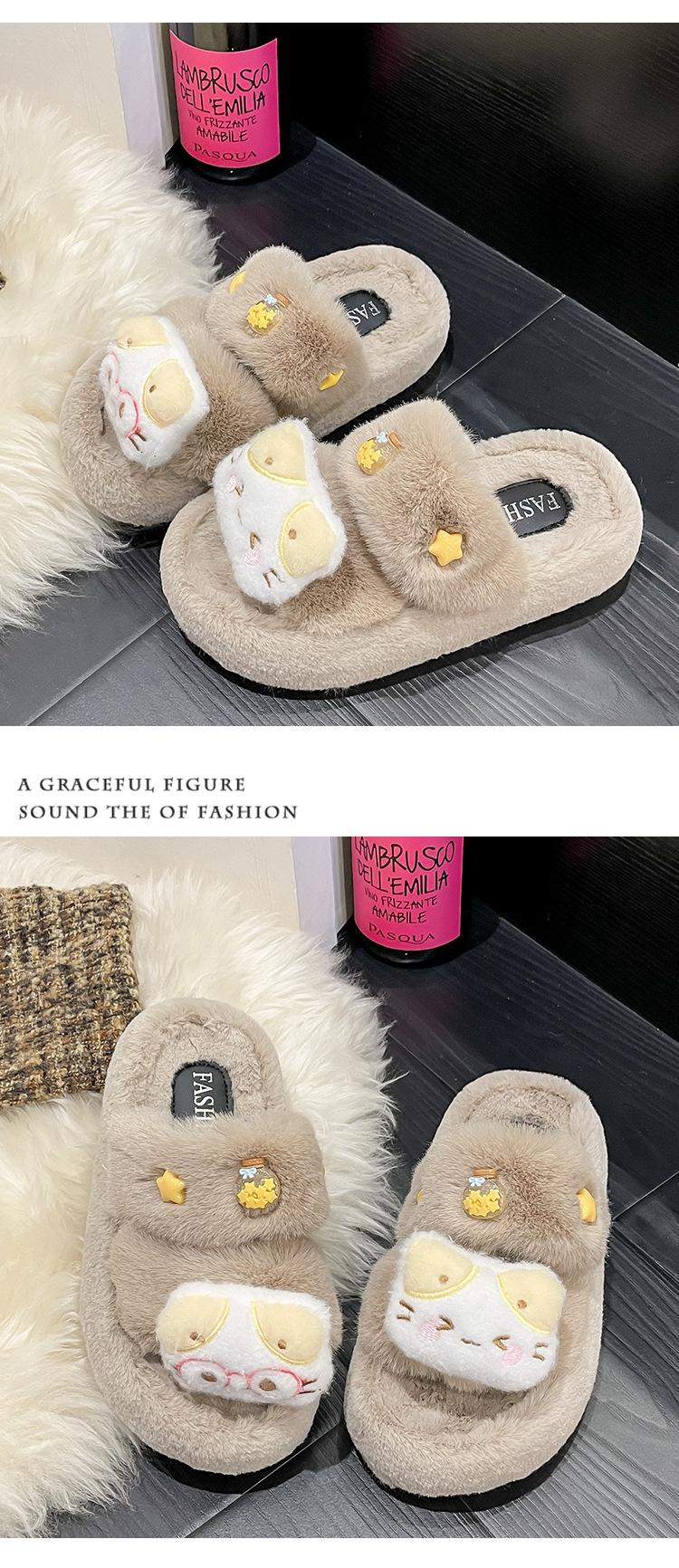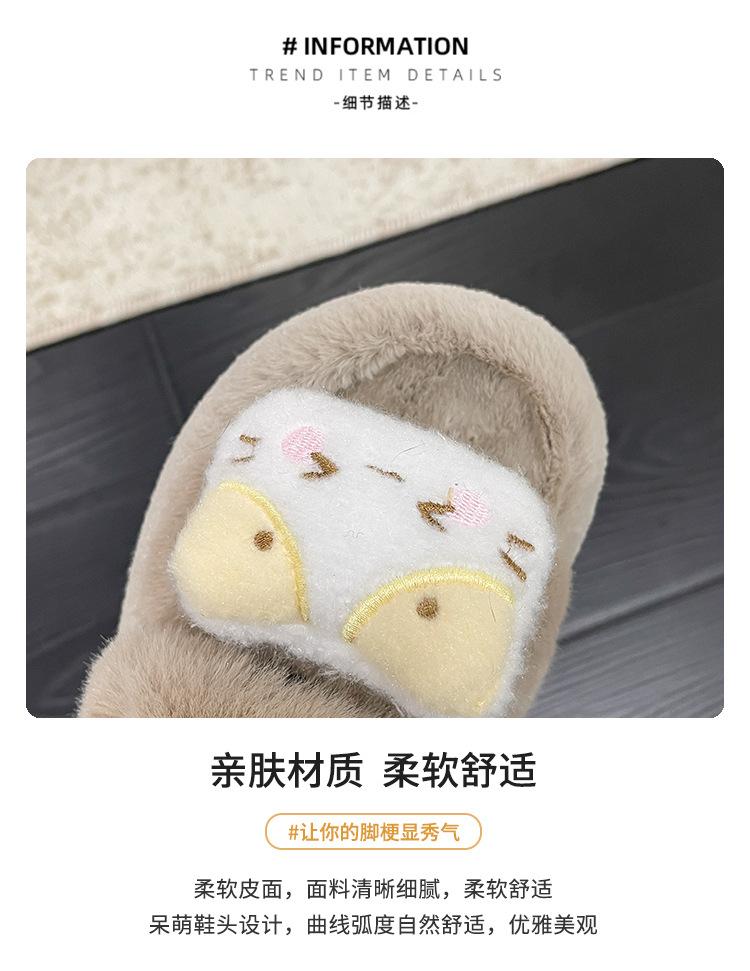 Pantuflas Peludas de Gato de Dibujos Animados Lindas para Mujer para Uso Exterior 2025 Otoño Nuevas Pantuflas de Felpa Perezosas Cómodas de Piel para Mujer