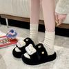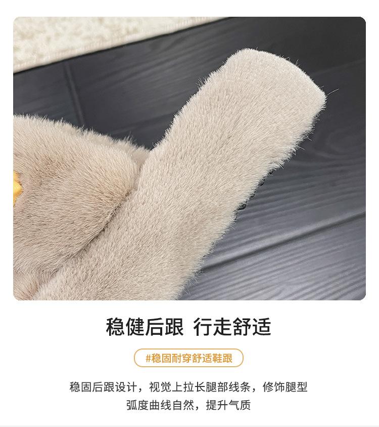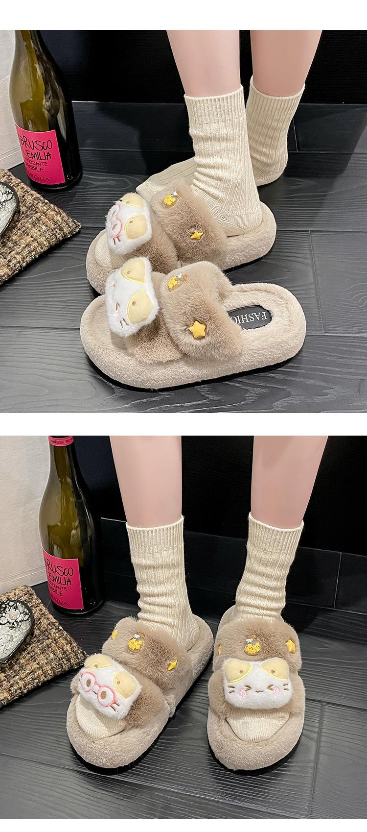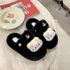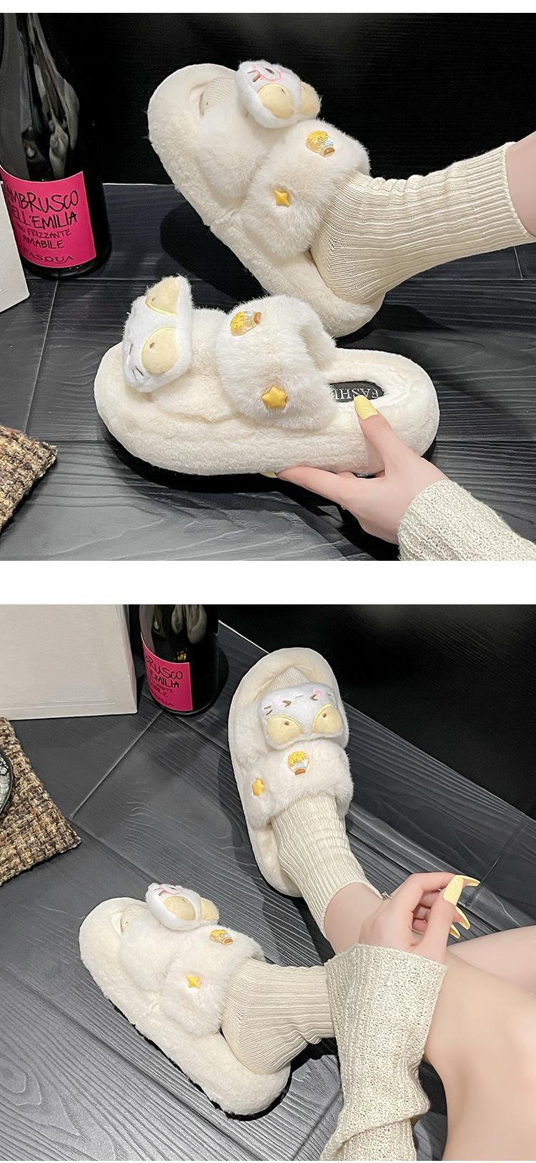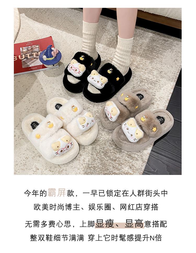 Pantuflas Peludas de Gato de Dibujos Animados Lindas para Mujer para Uso Exterior 2025 Otoño Nuevas Pantuflas de Felpa Perezosas Cómodas de Piel para Mujer