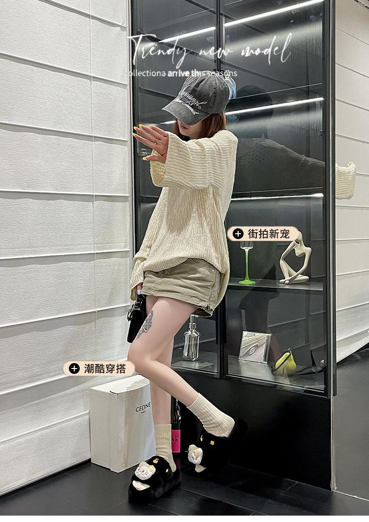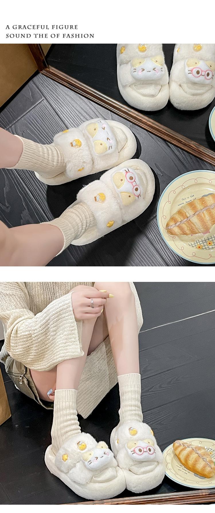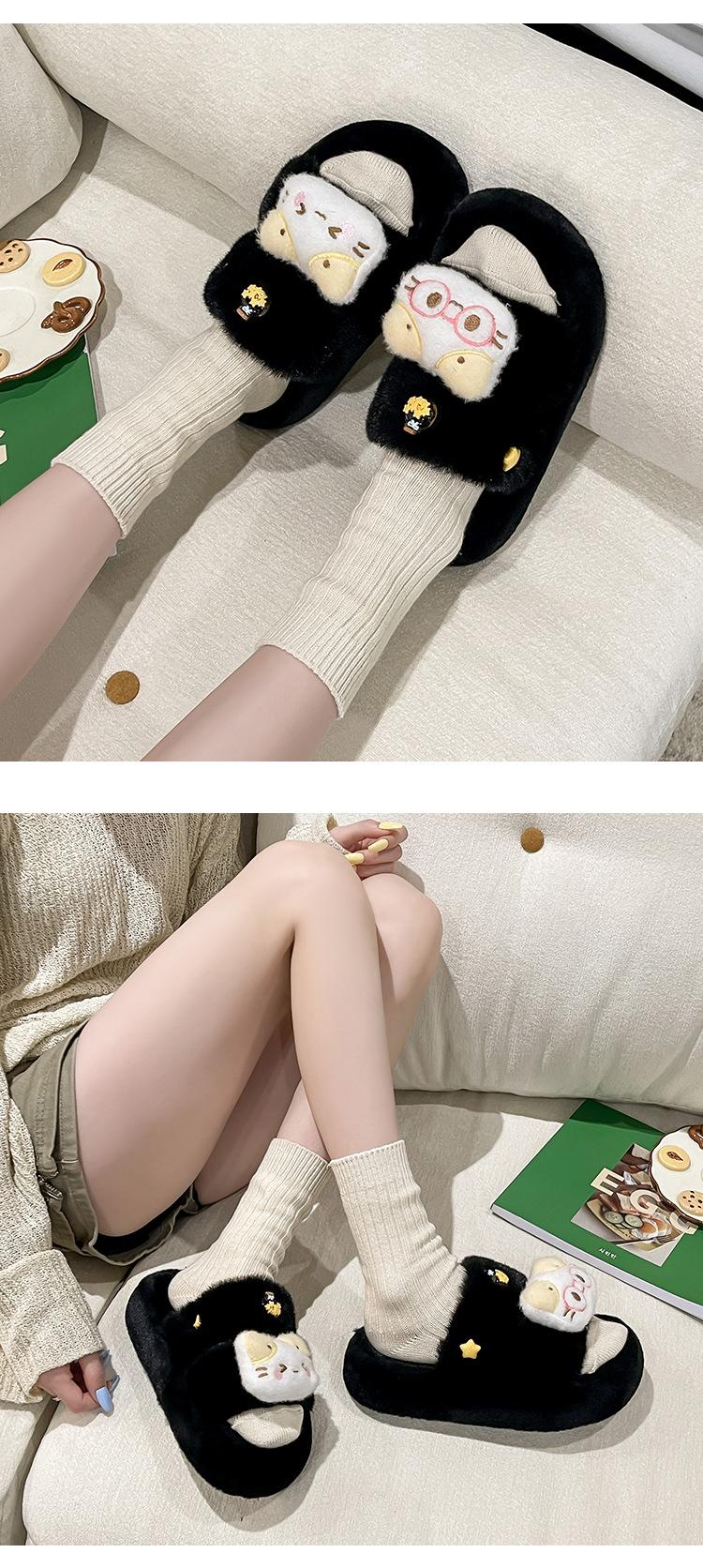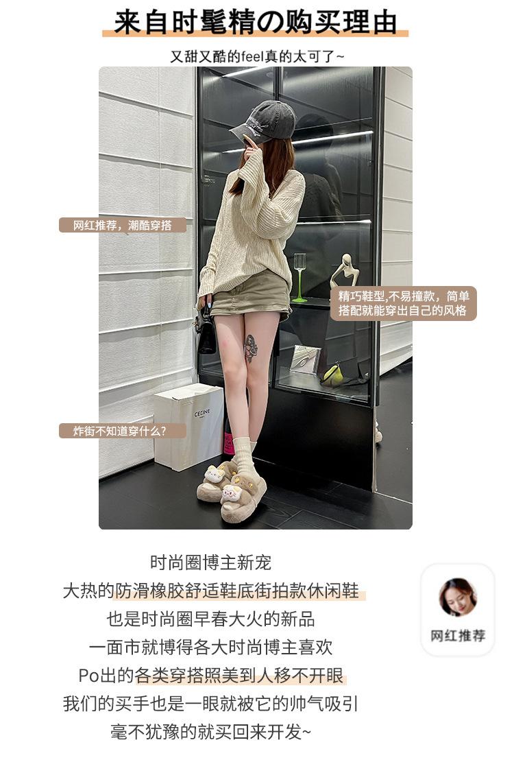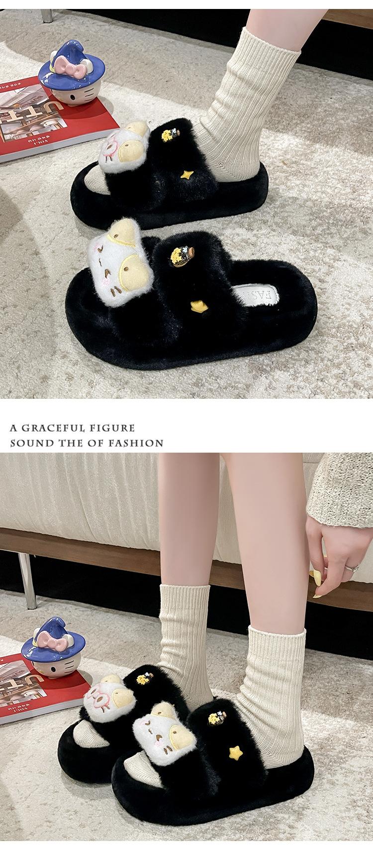Pantuflas Peludas de Gato de Dibujos Animados Lindas para Mujer para Uso Exterior 2025 Otoño Nuevas Pantuflas de Felpa Perezosas Cómodas de Piel para Mujer