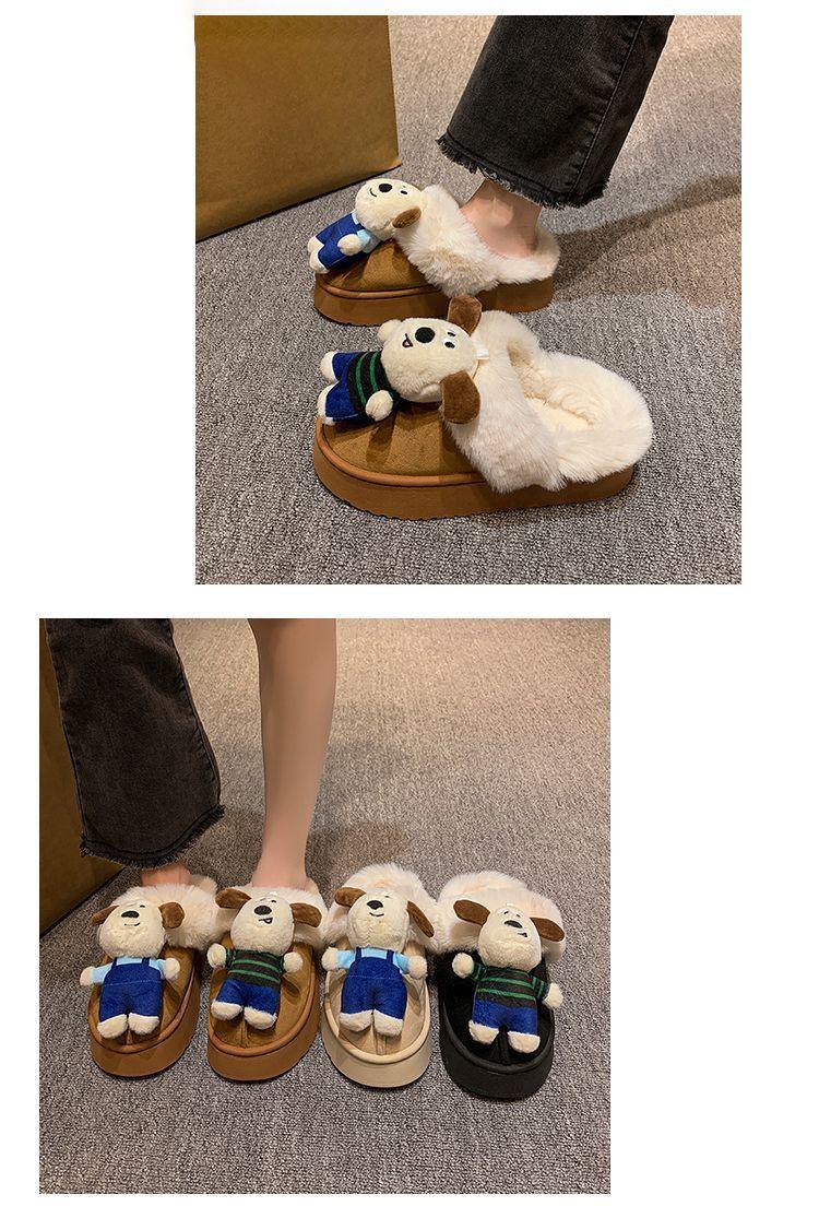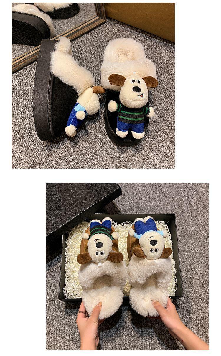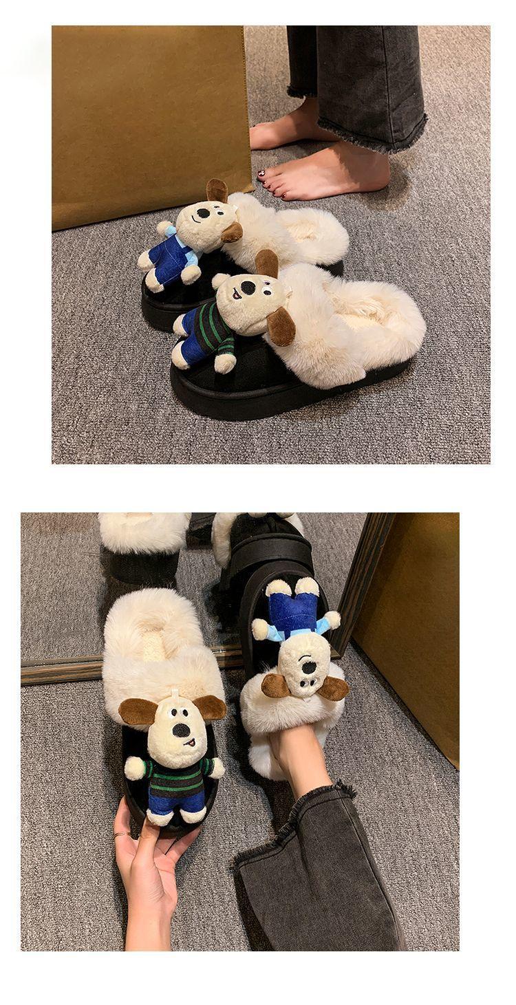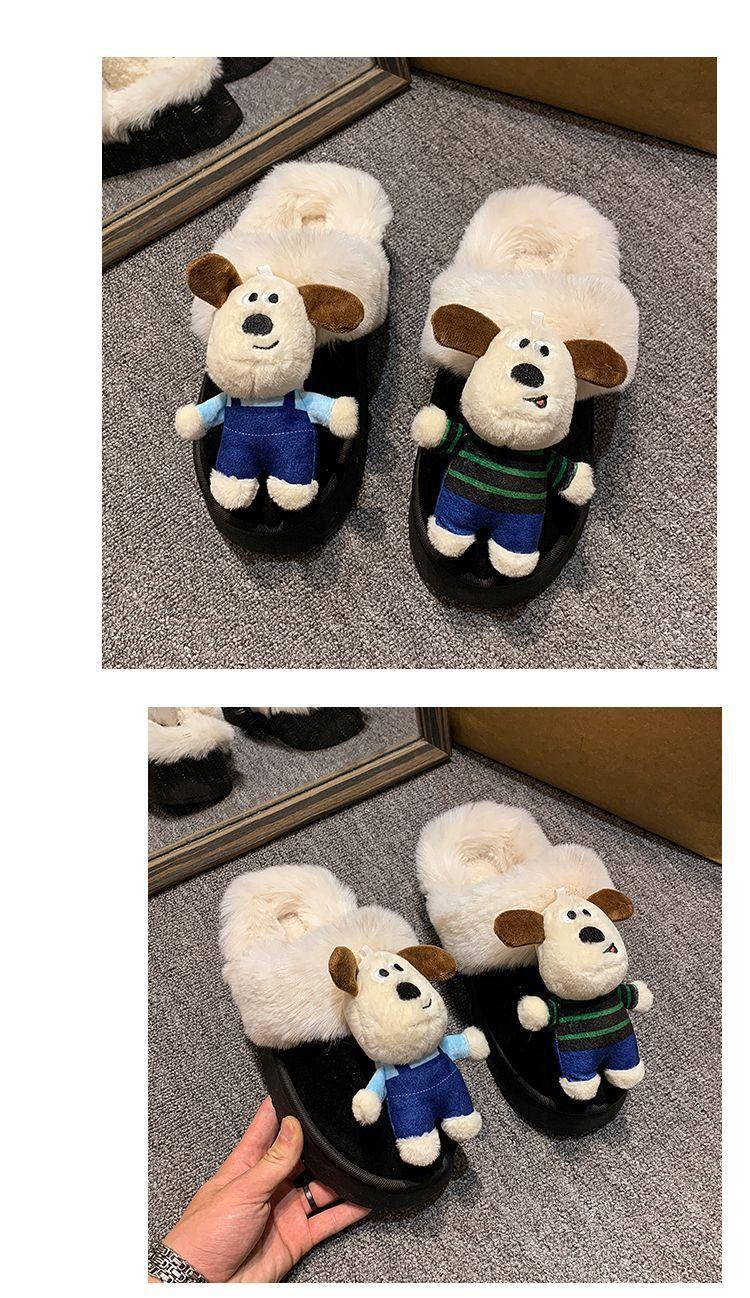 Pantuflas de Felpa Suave de Fondo Suave de Cachorro Lindo de Dibujos Animados para Mujer 2025 Otoño/Invierno Nuevo Estilo Usables Antideslizantes Forradas de Lana Pantuflas de Algodón para Mujer